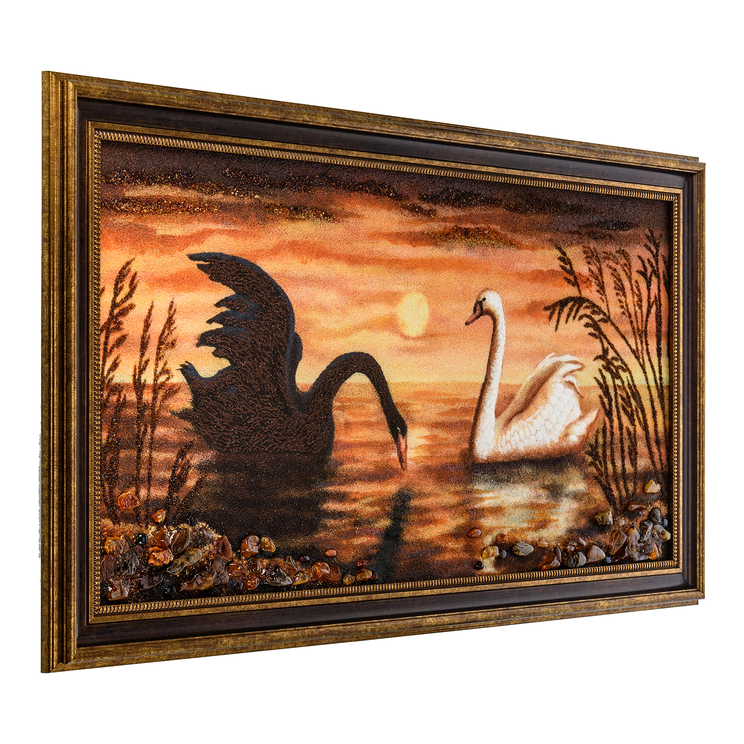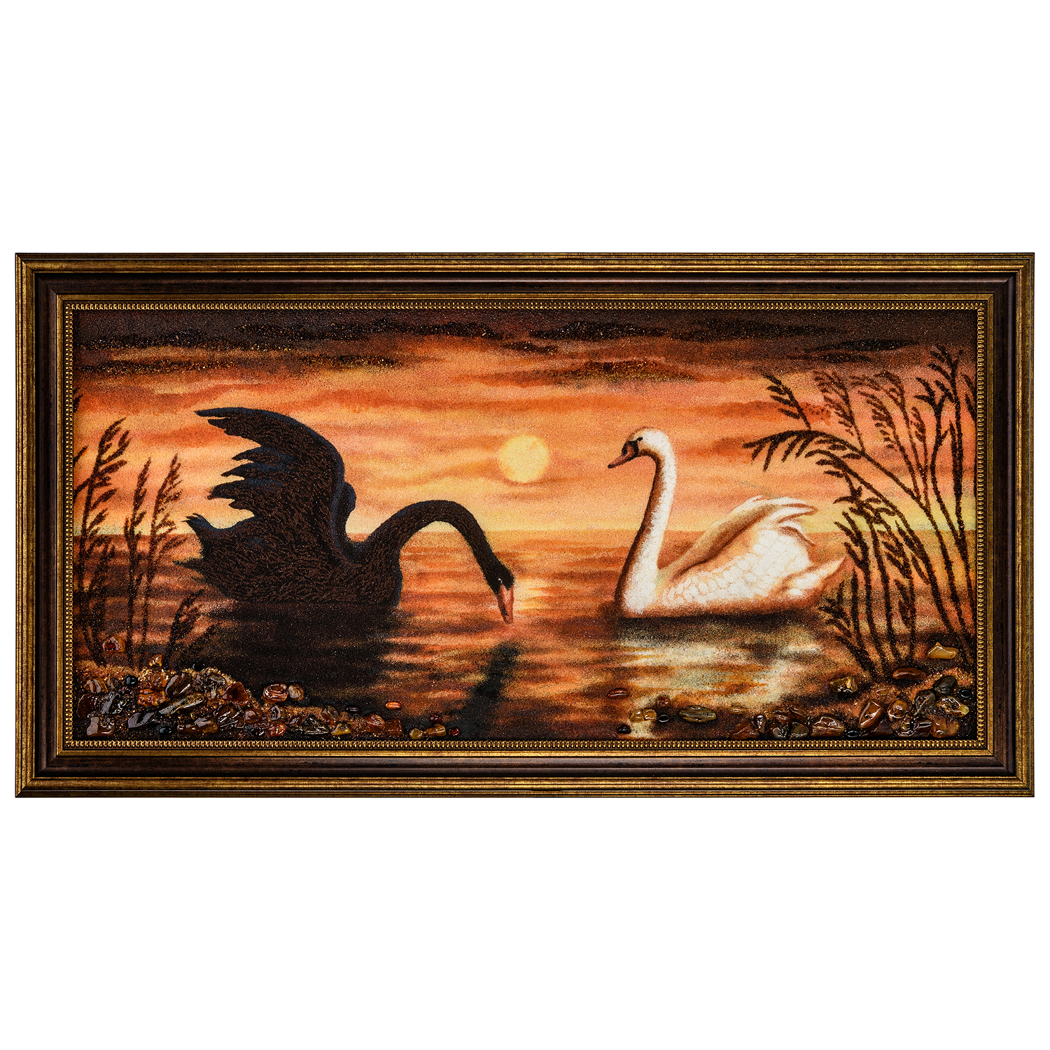 Картина янтарная "Лебеди" 40х80 см