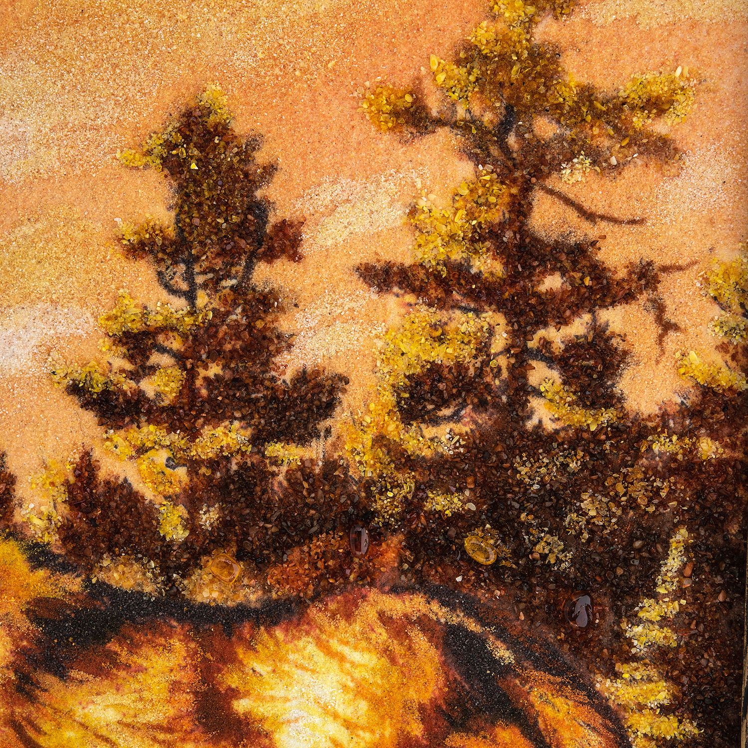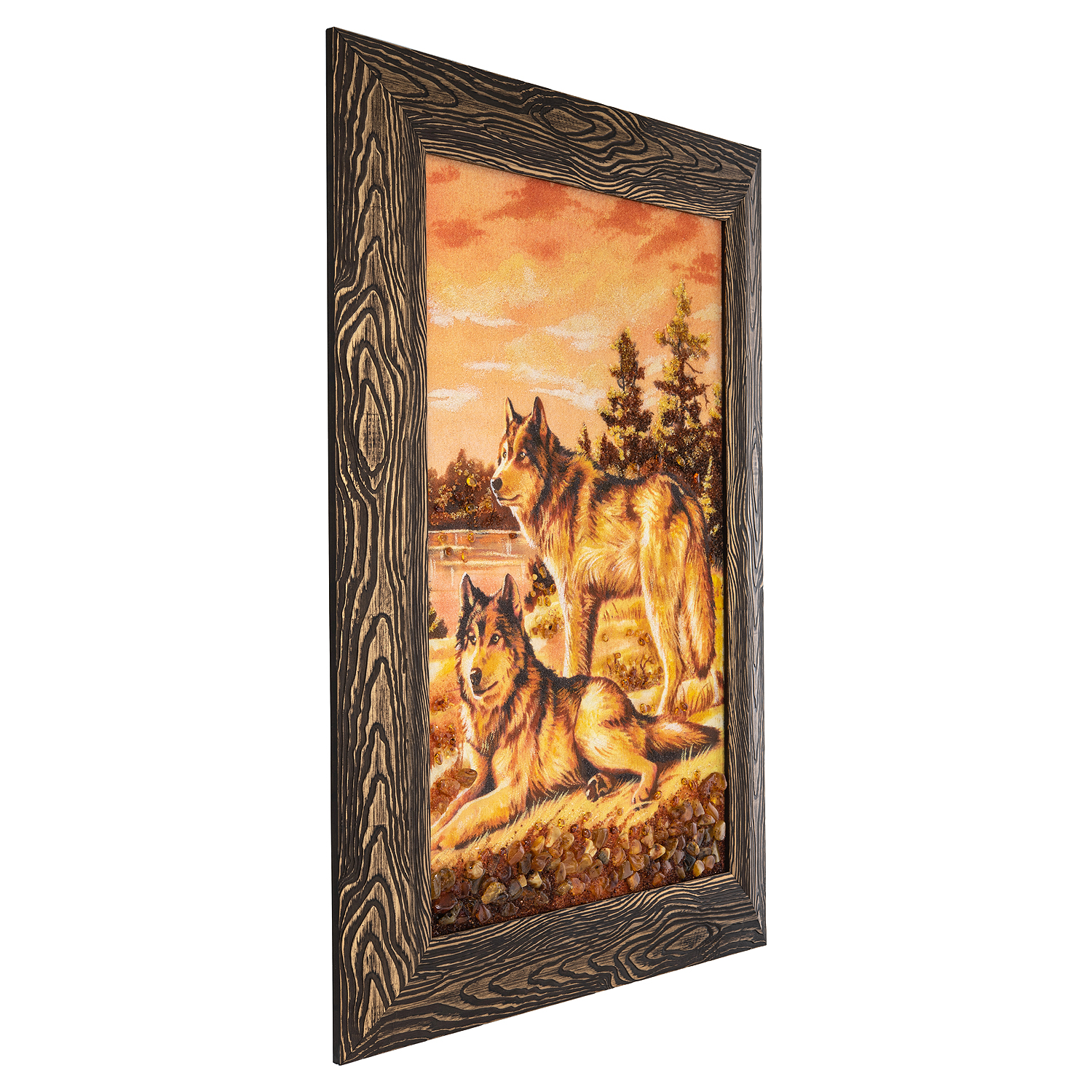 Русские подарки и сувениры → Интерьерные изделия → Картины → Картина янтарная "Волки у берега" 60x40 см