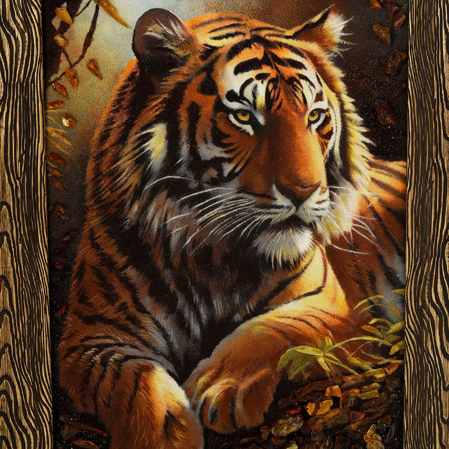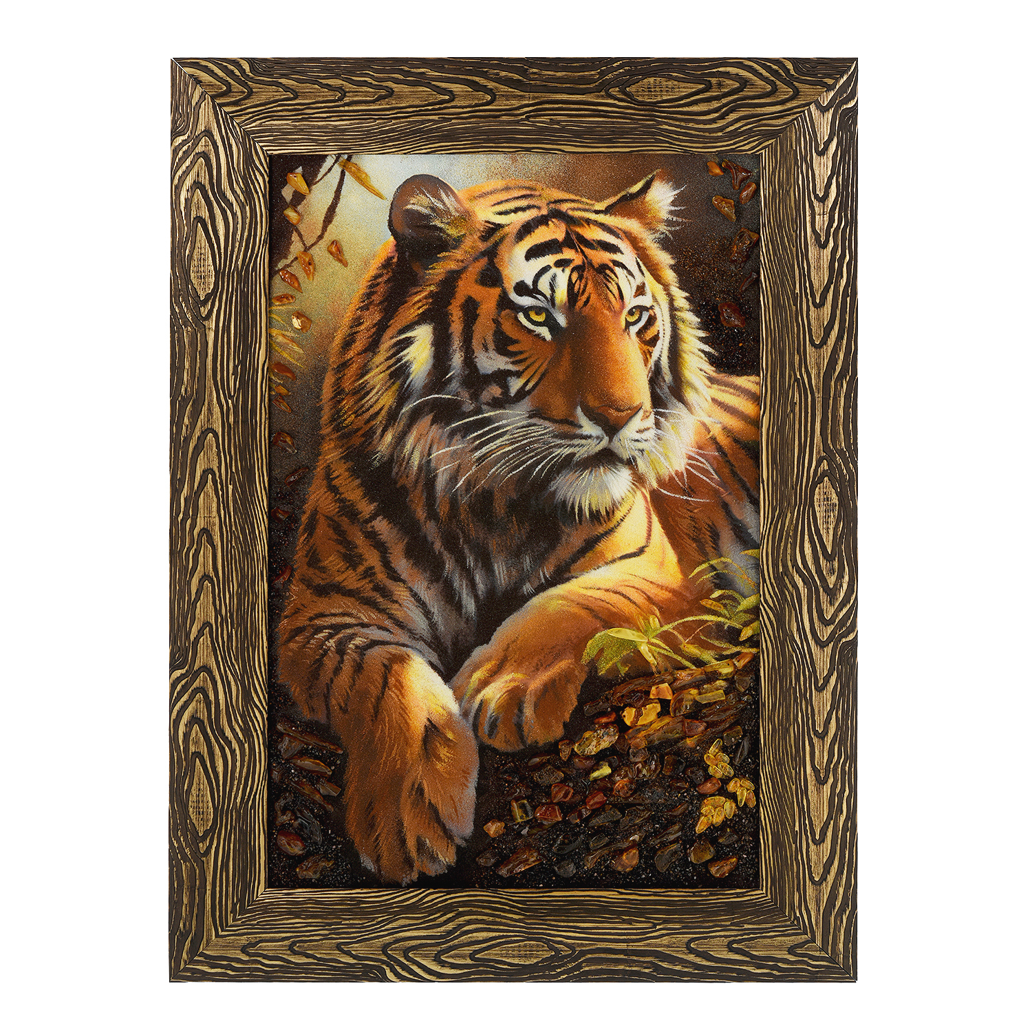 Русские подарки и сувениры → Интерьерные изделия → Картины → Картина янтарная "Отдыхающий тигр" 60х40 см