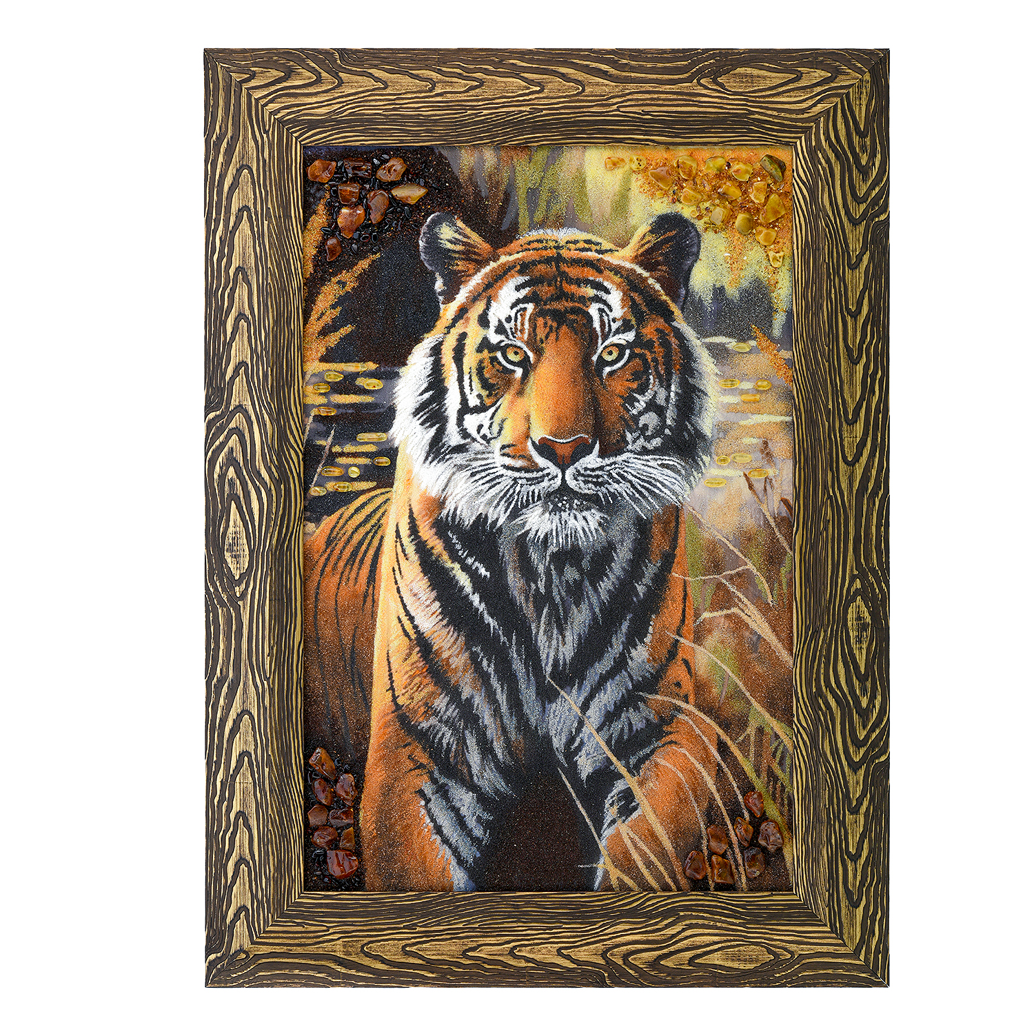 Русские подарки и сувениры → Интерьерные изделия → Картины → Картина янтарная "Тигр - хозяин тайги" 60х40 см