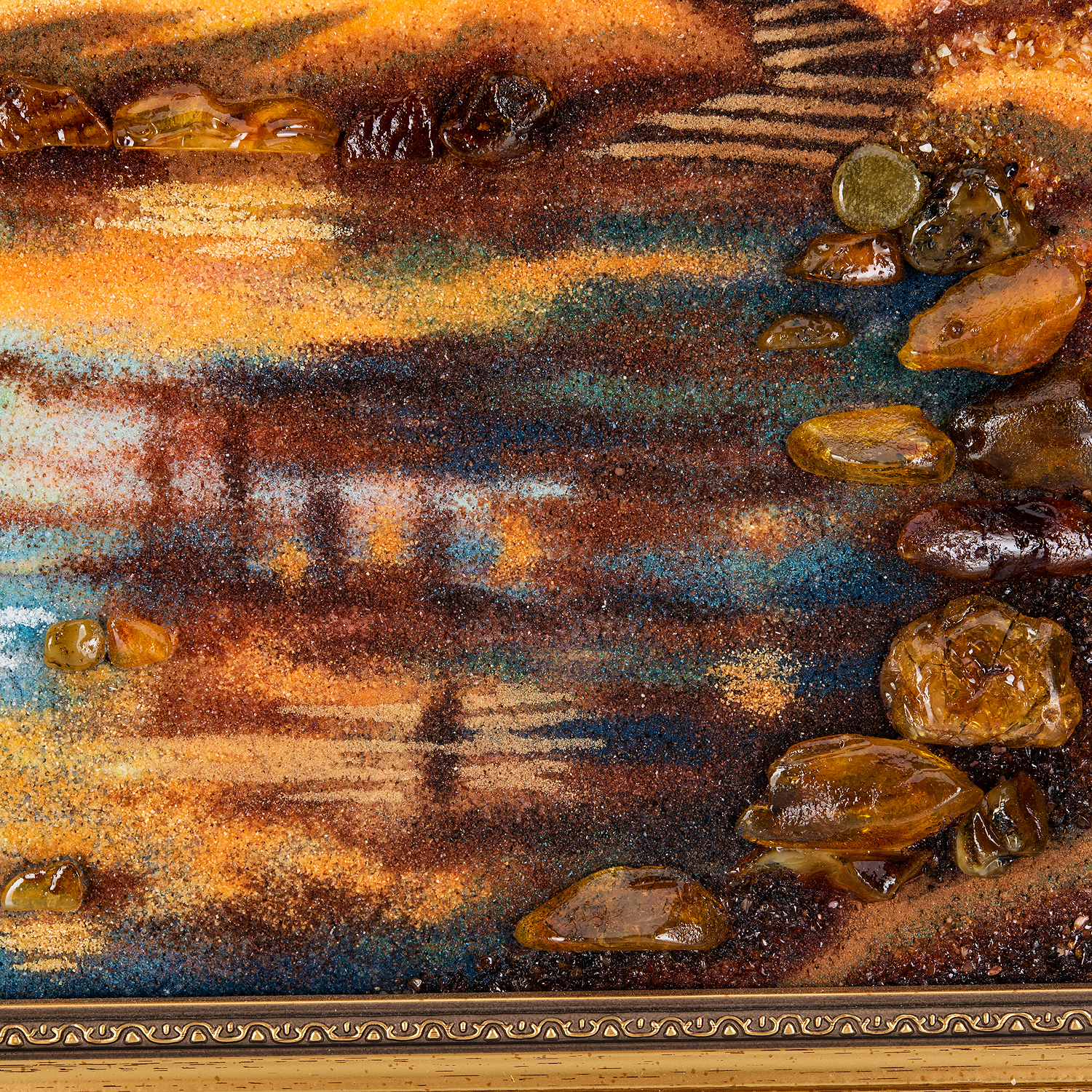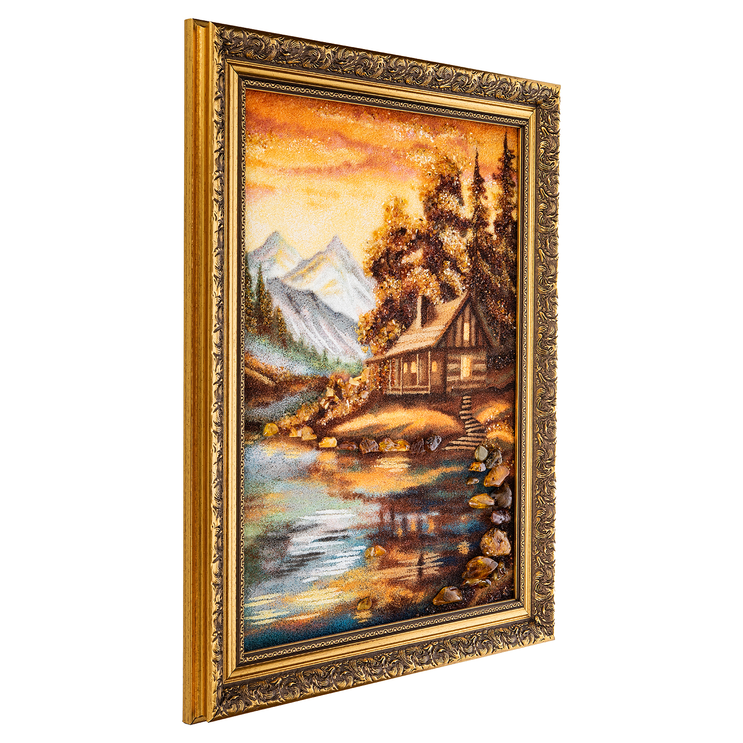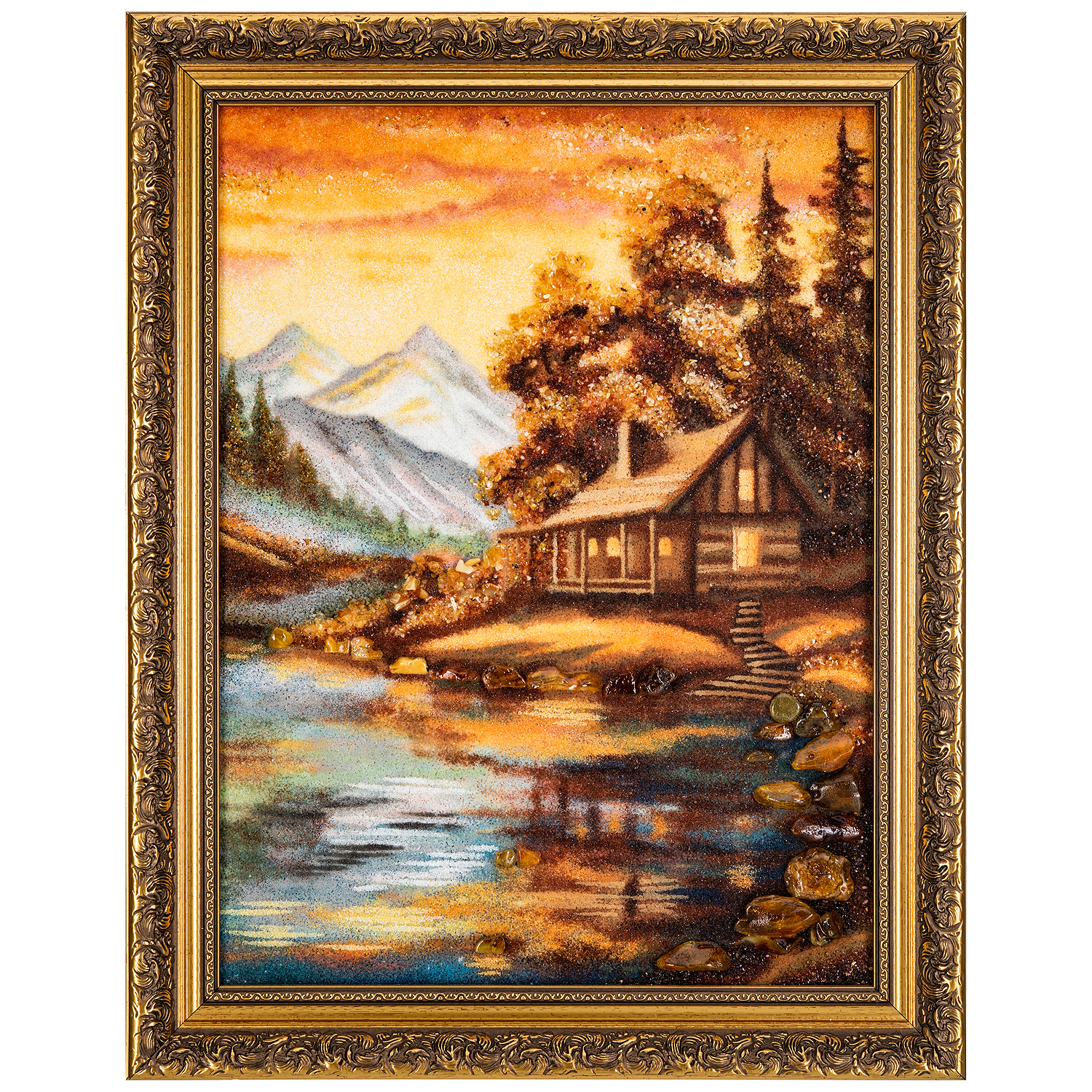 Русские подарки и сувениры → Интерьерные изделия → Картины → Картина янтарная "Домик у озера" 30х40 см