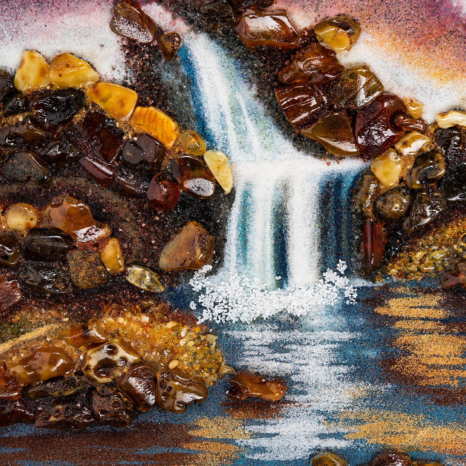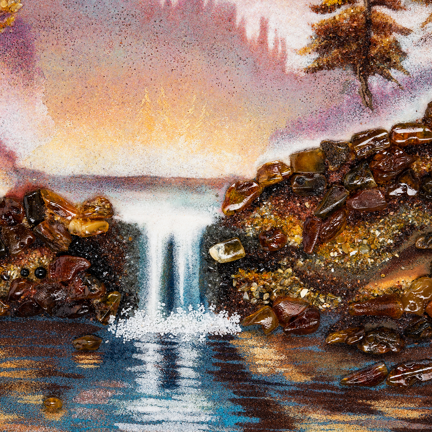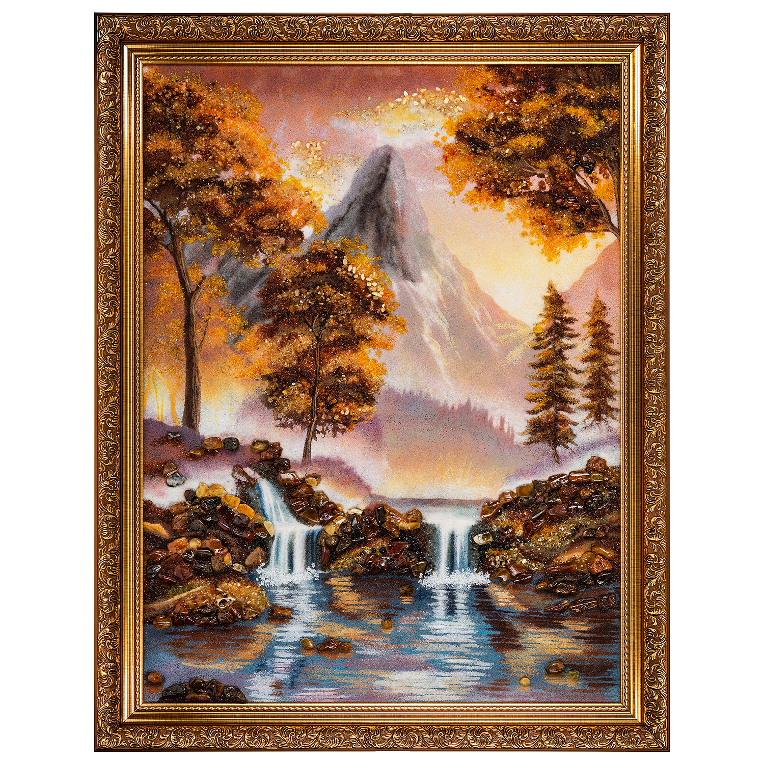 Русские подарки и сувениры → Интерьерные изделия → Картины → Картина янтарная "Рассвет в горах" 60х80 см