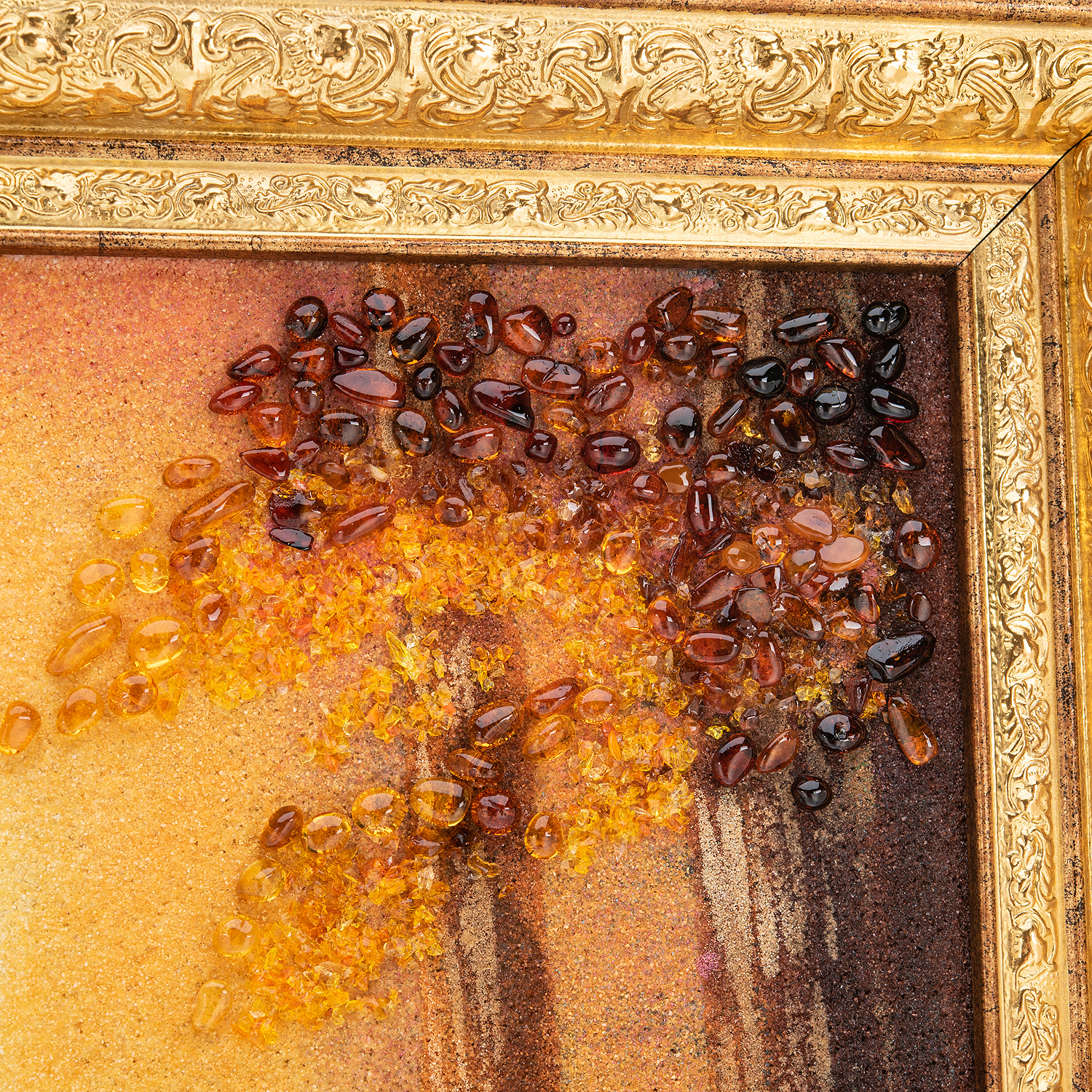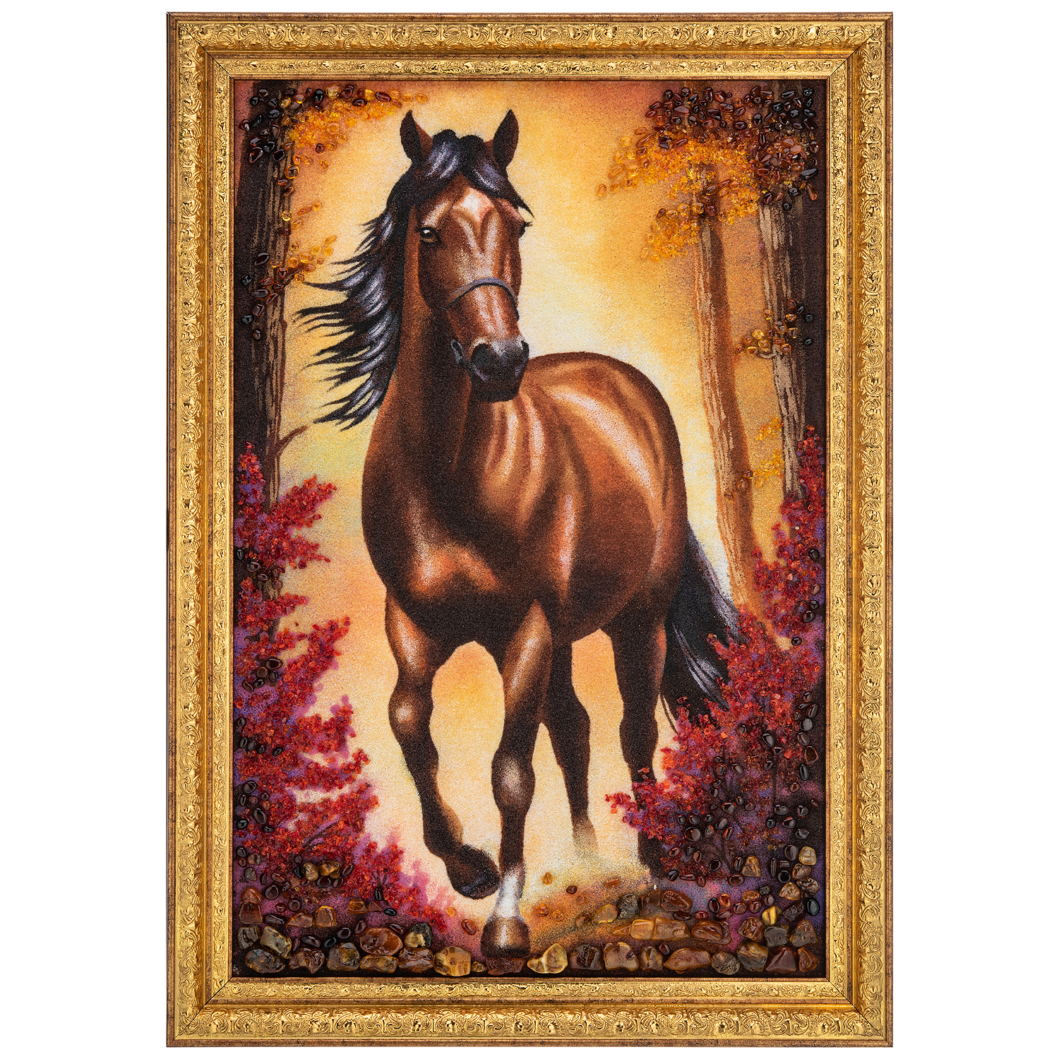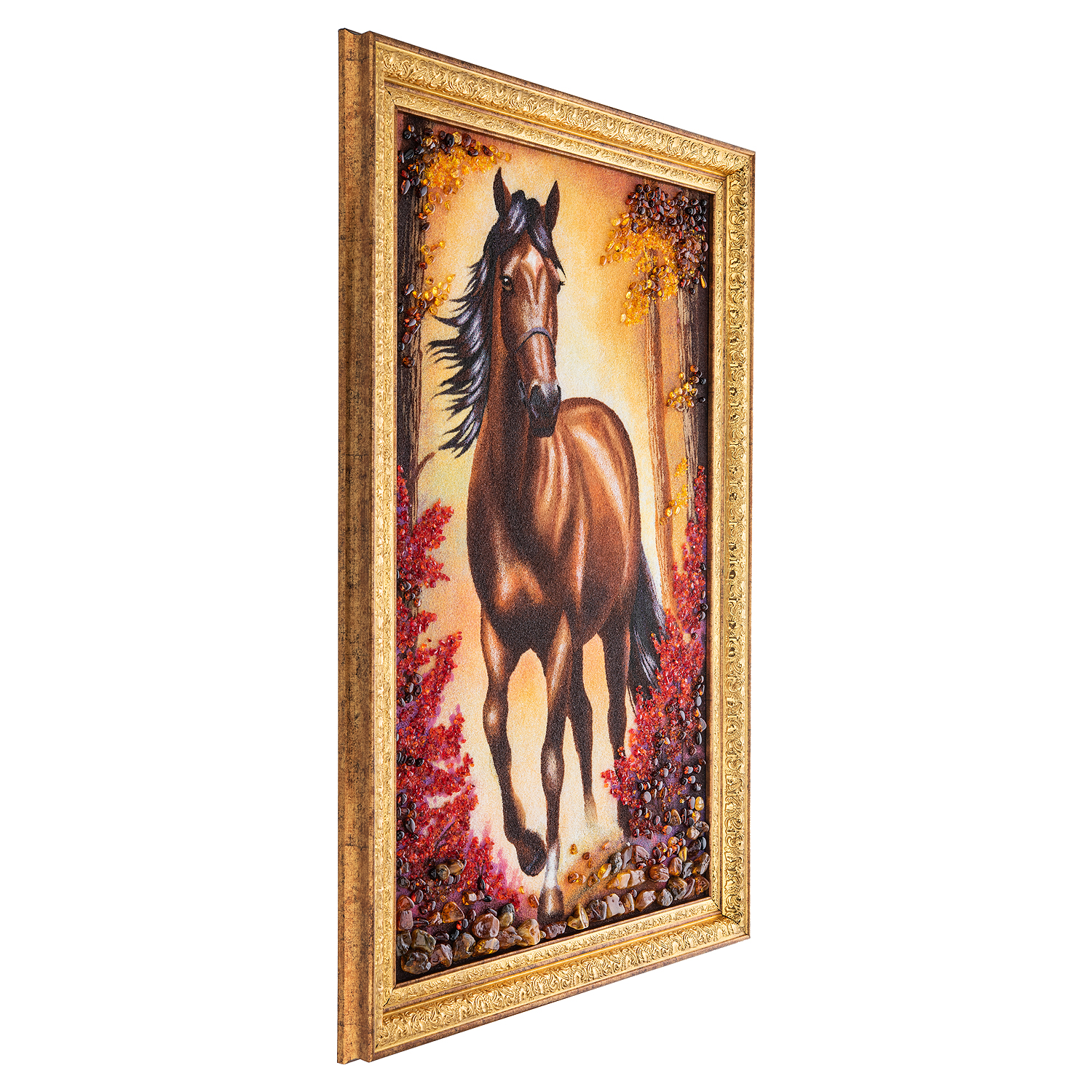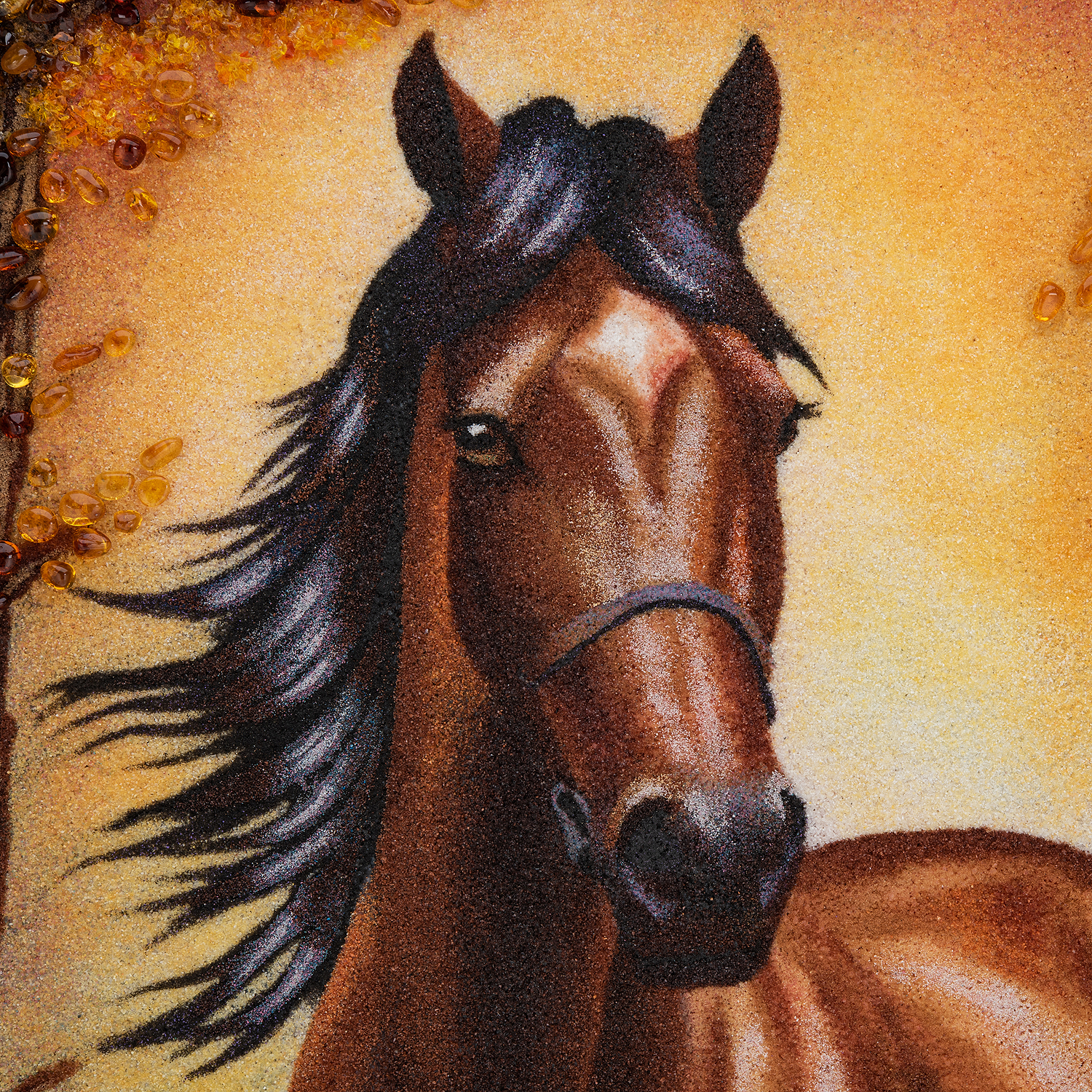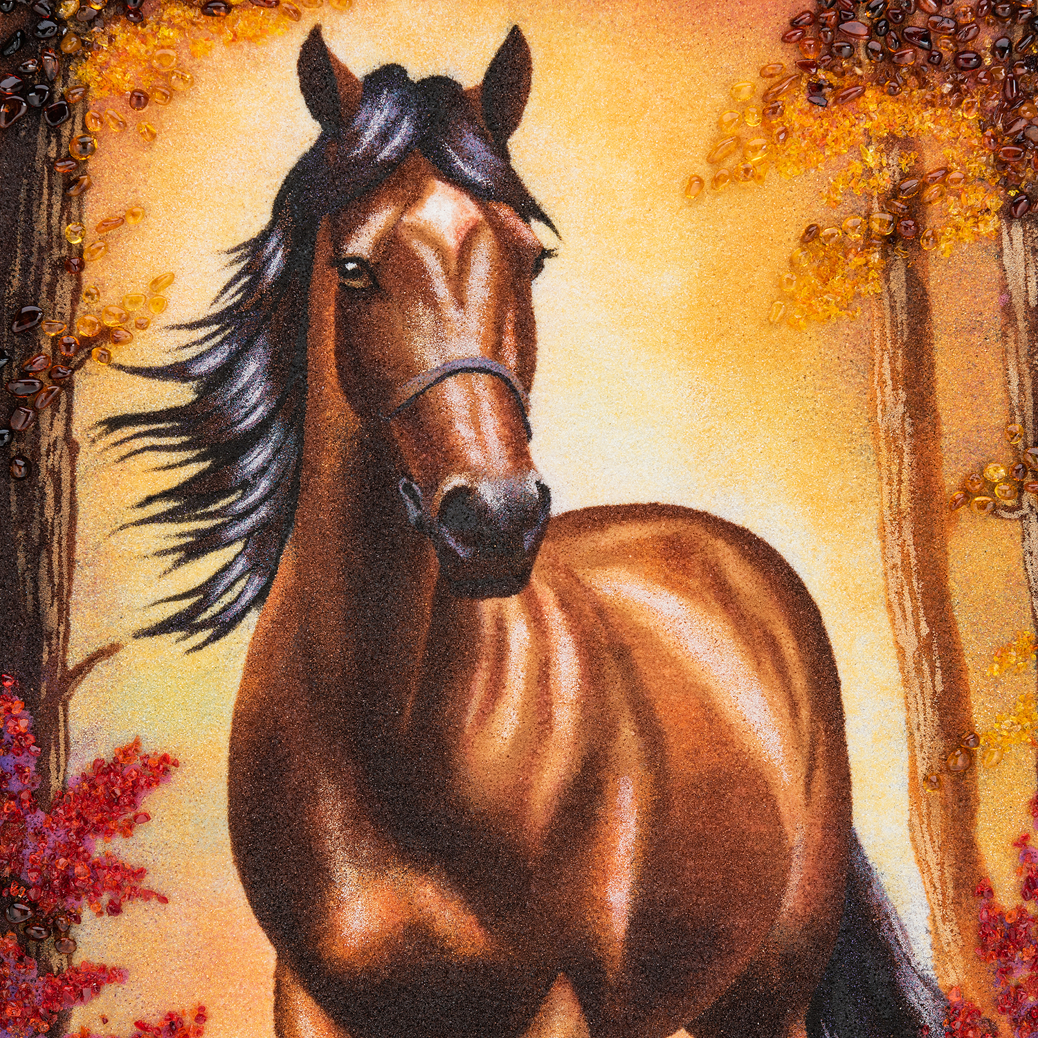Картина янтарная "Конь в рассветном лесу" 60x40 см