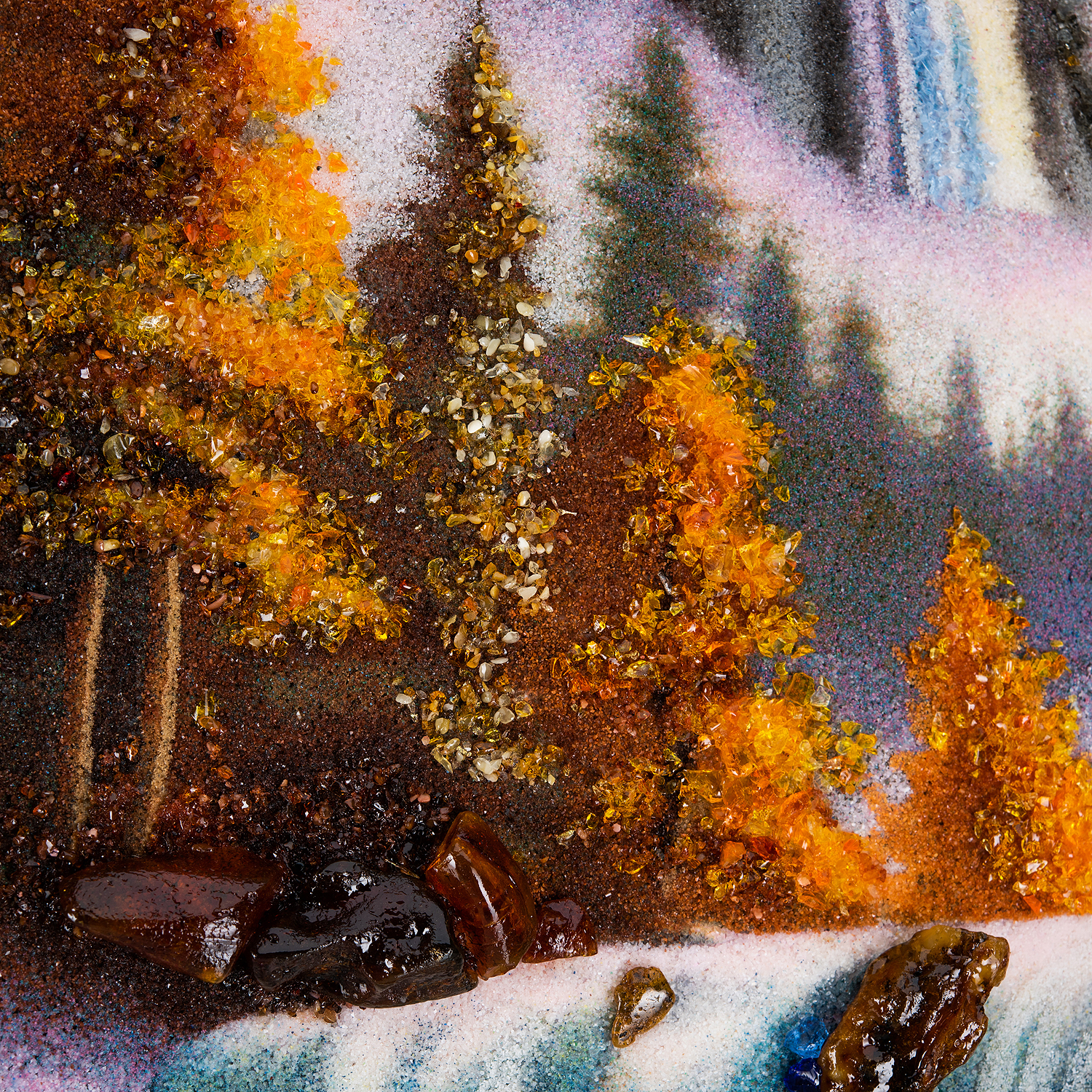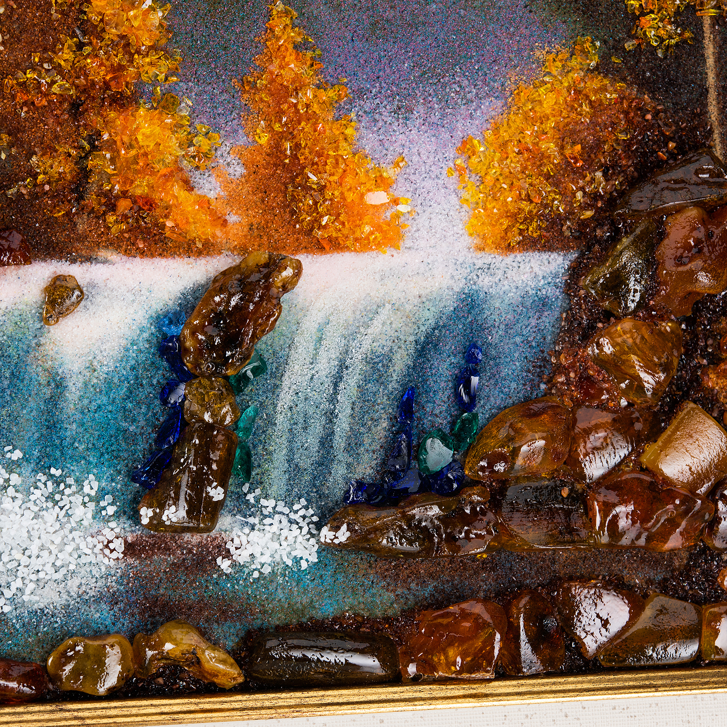 Русские подарки и сувениры → Интерьерные изделия → Картины → Картина янтарная "Горная река" 30х40 см