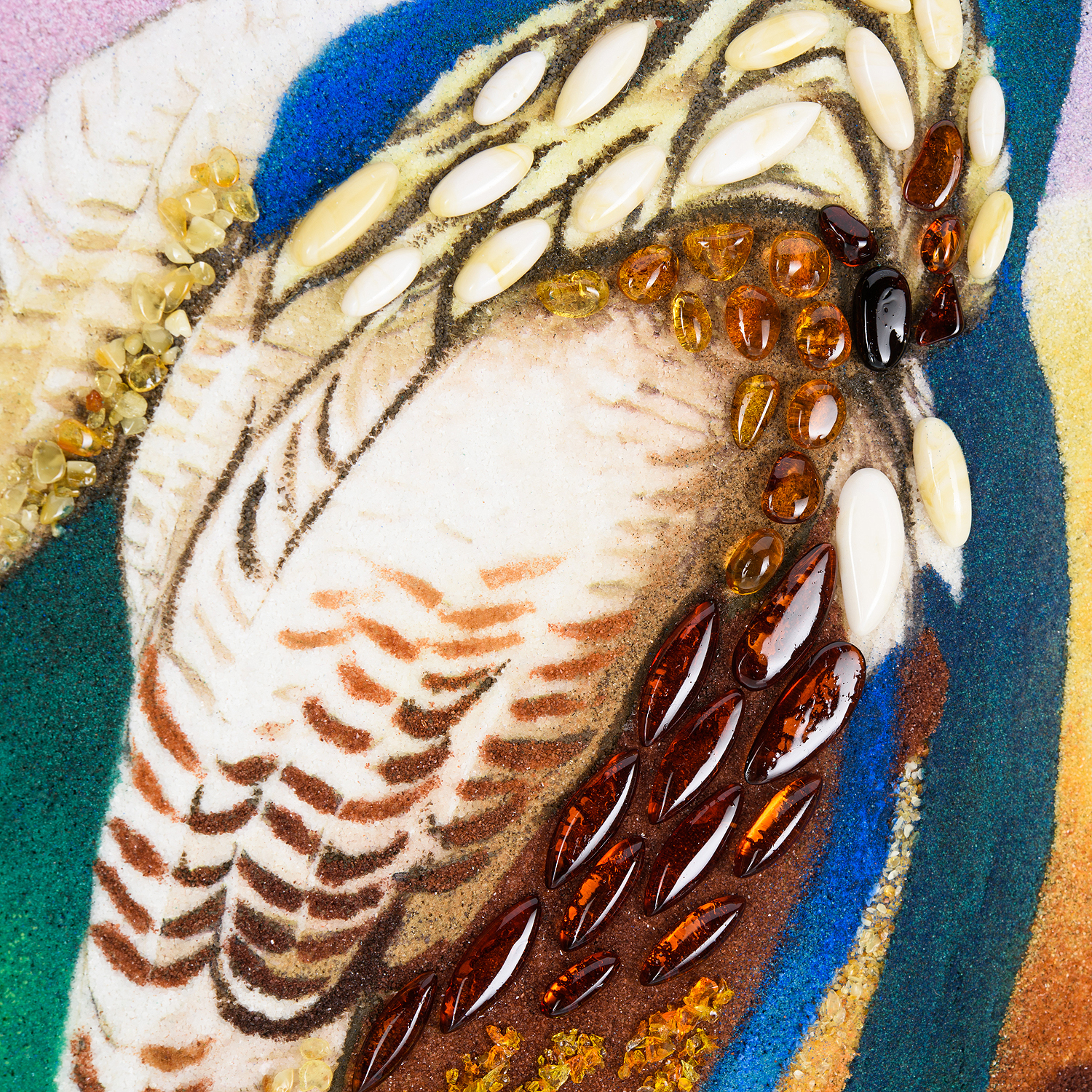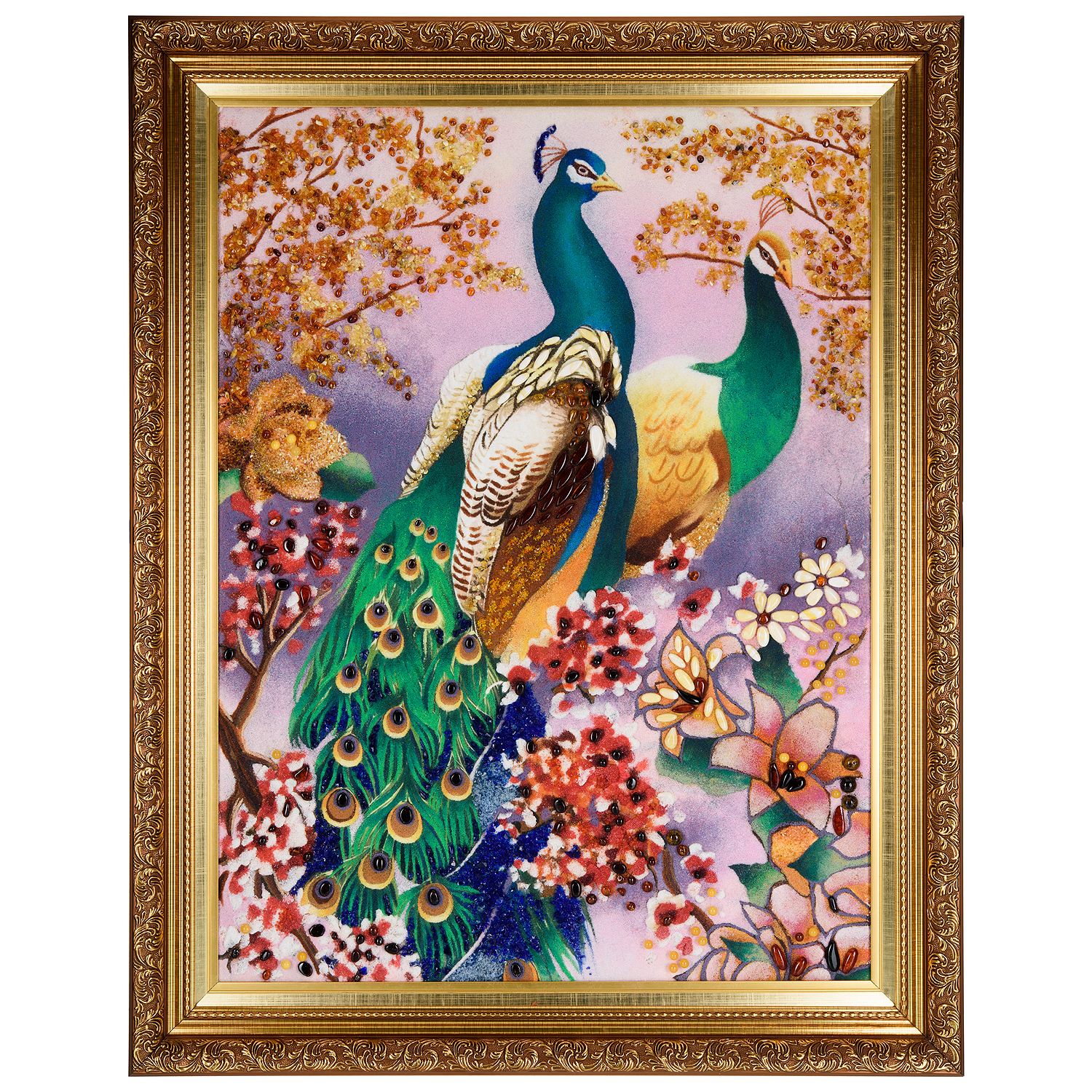 Русские подарки и сувениры → Интерьерные изделия → Картины → Янтарная картина "Павлины в саду" 60х80 см