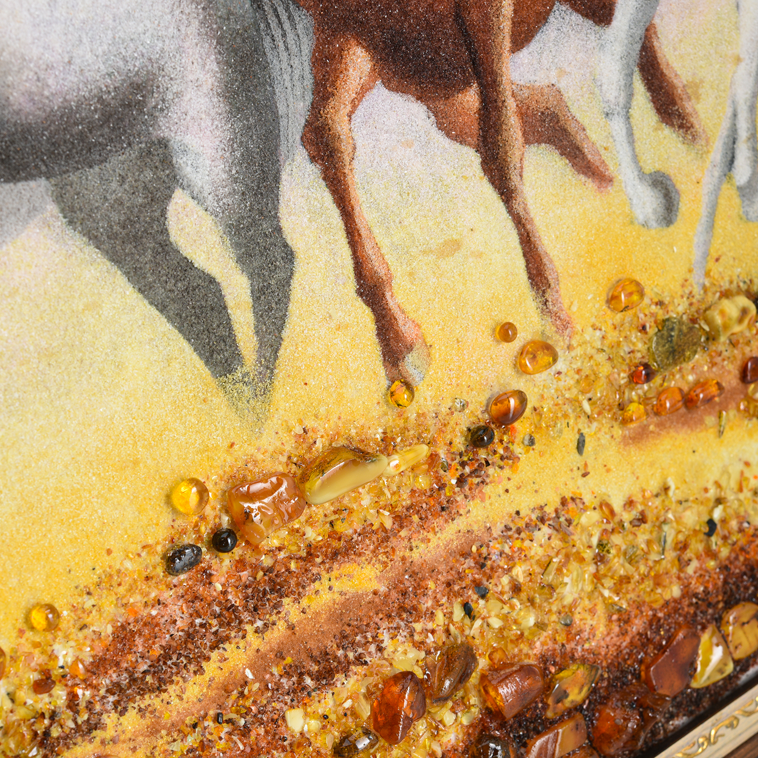 Картина янтарная "Табун лошадей в степи" 60x80 см