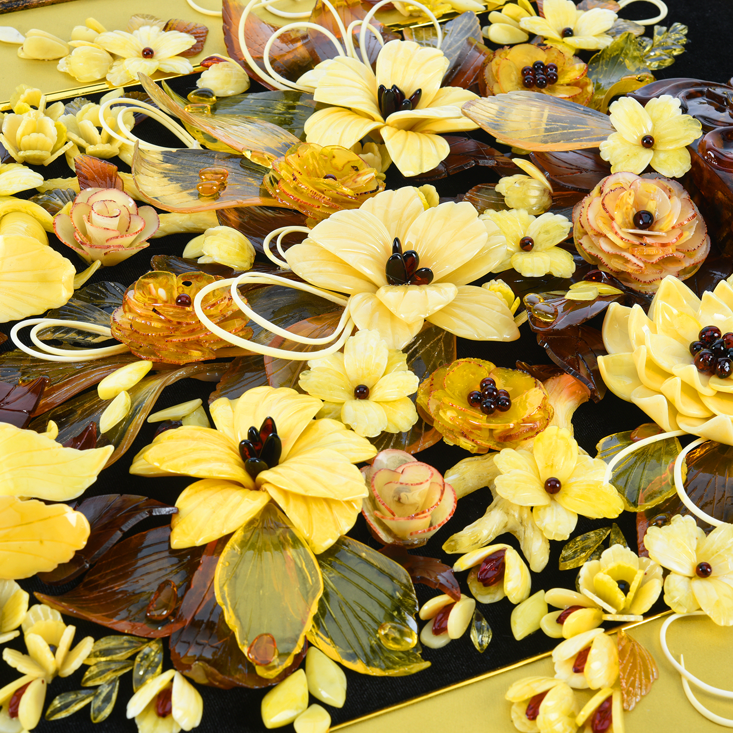 Русские подарки и сувениры → Интерьерные изделия → Картины → Картина янтарная "Букет цветов" 50х70 см