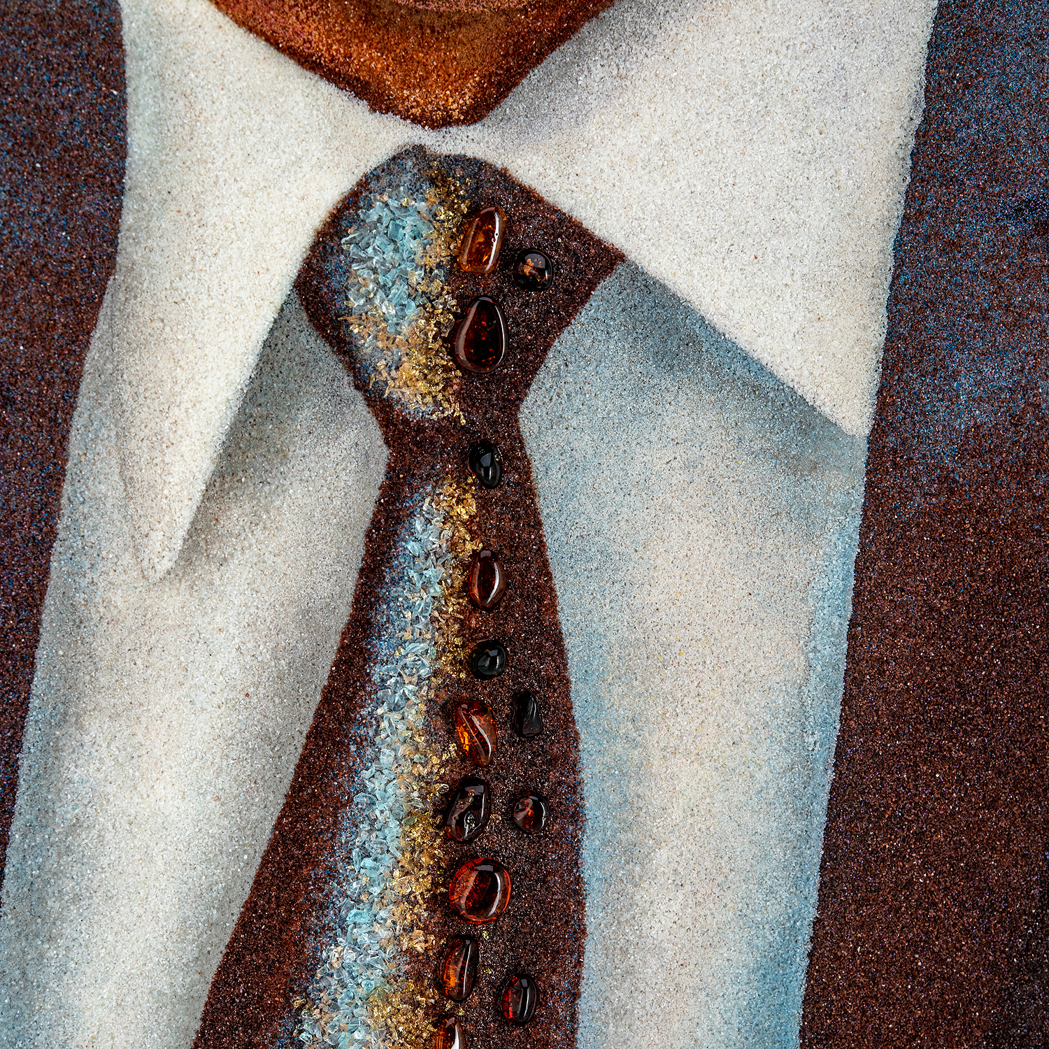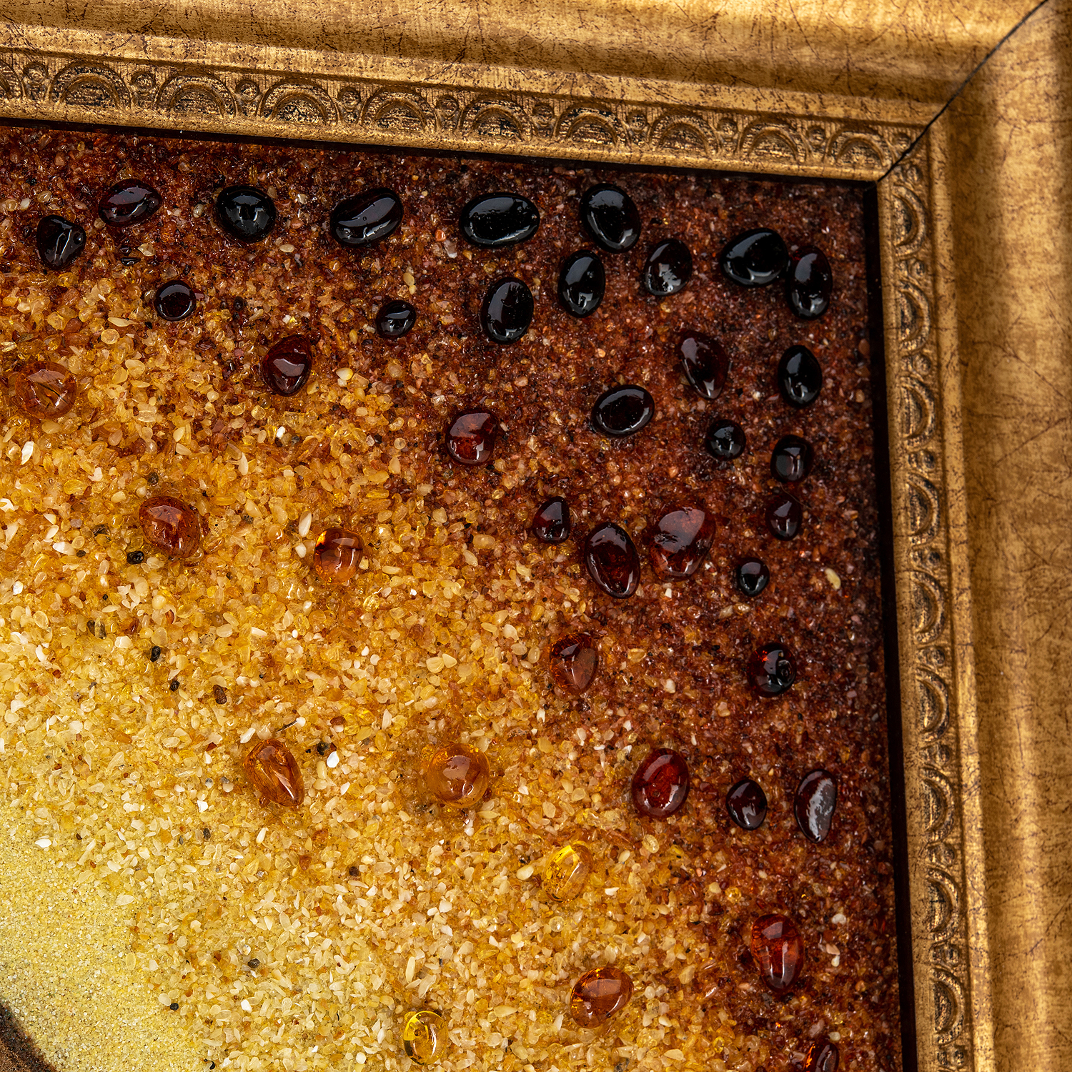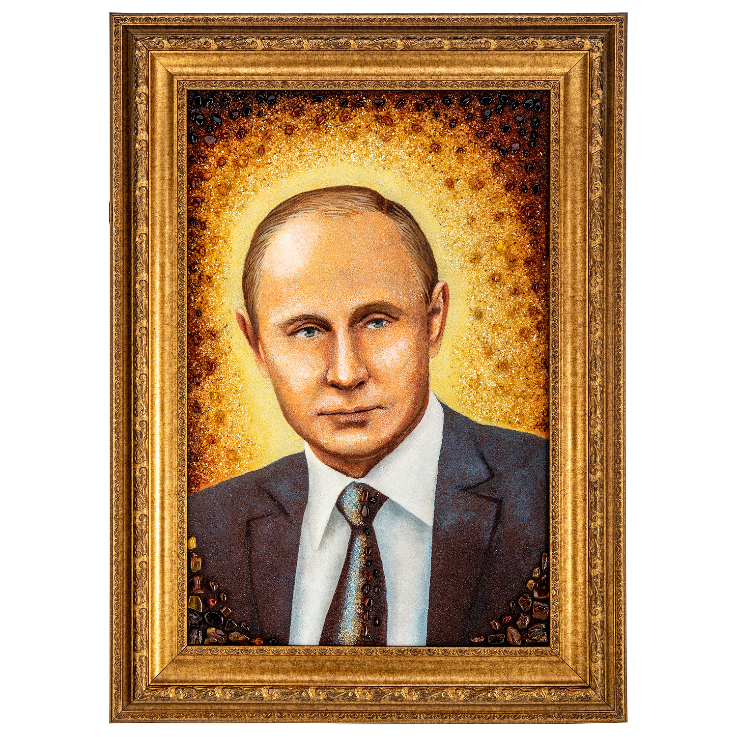 Картина янтарная "В.В.Путин".Материалы: фанера, краски, янтарь, багетная рама.