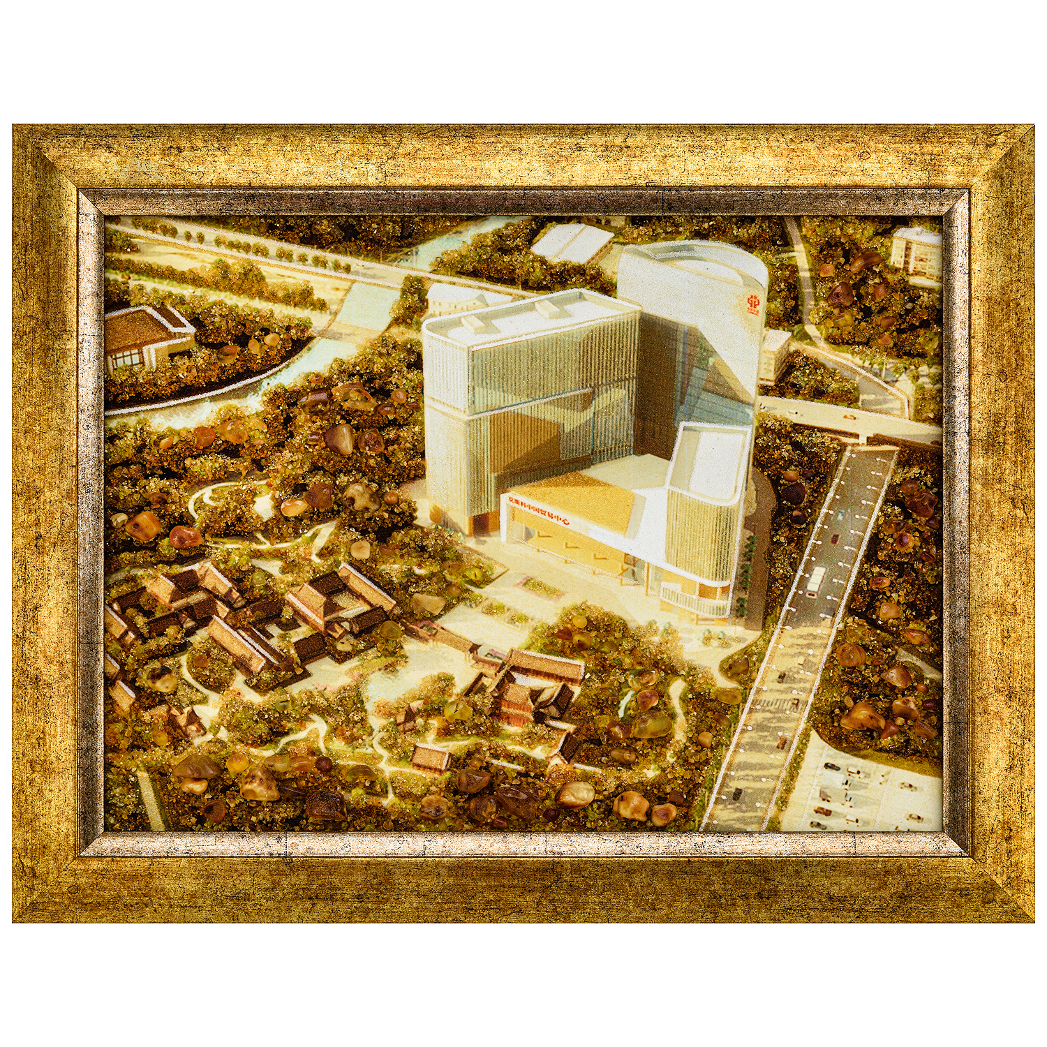 Русские подарки и сувениры → Интерьерные изделия → Картины → Картина янтарная "Торговое представительство Китая в Москве" 30х40 см