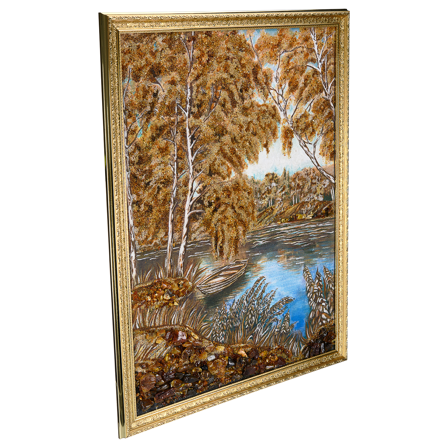 Картина янтарная "Лодка у берега" 60 х 80 см