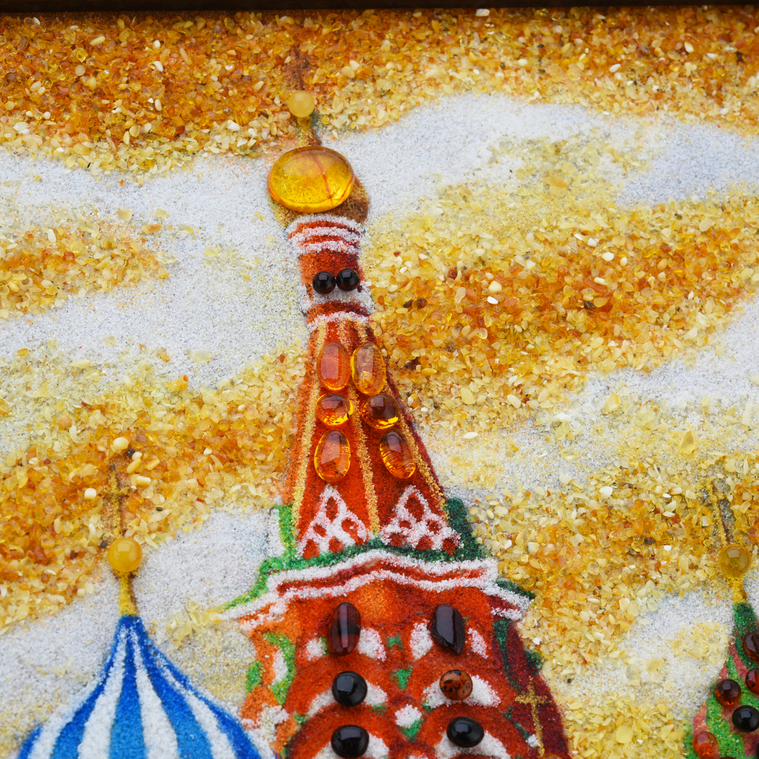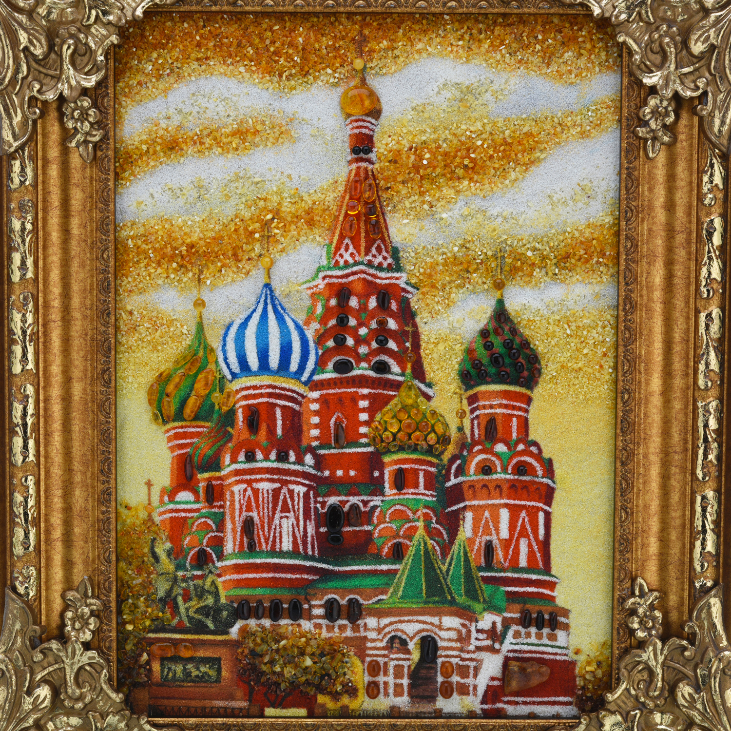 Русские подарки и сувениры → Интерьерные изделия → Картины → Картина янтарная "Храм Василия Блаженного" 30х40 см