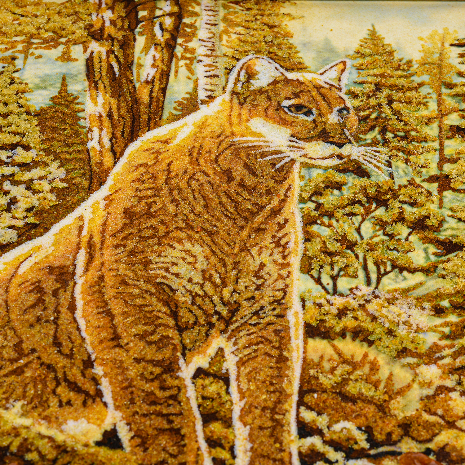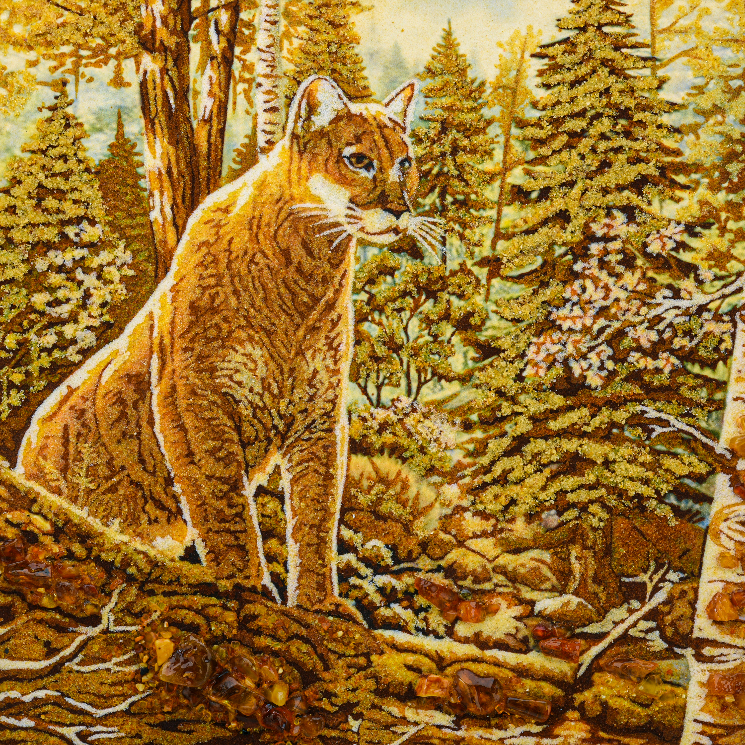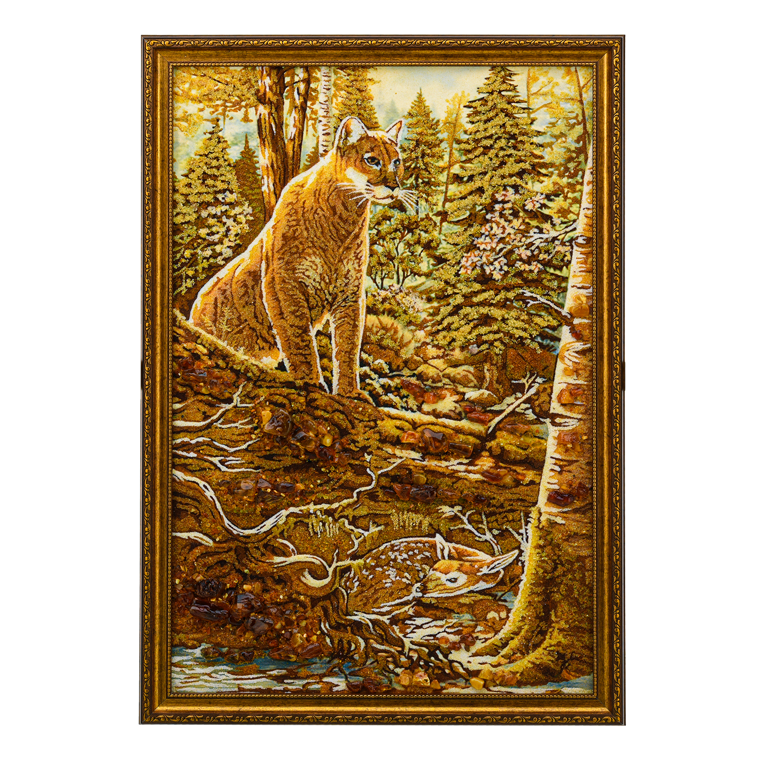Картина янтарная "Пума. Охота".Размер холста: 60х40 см