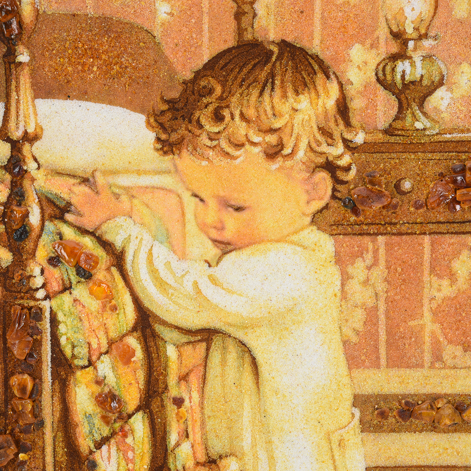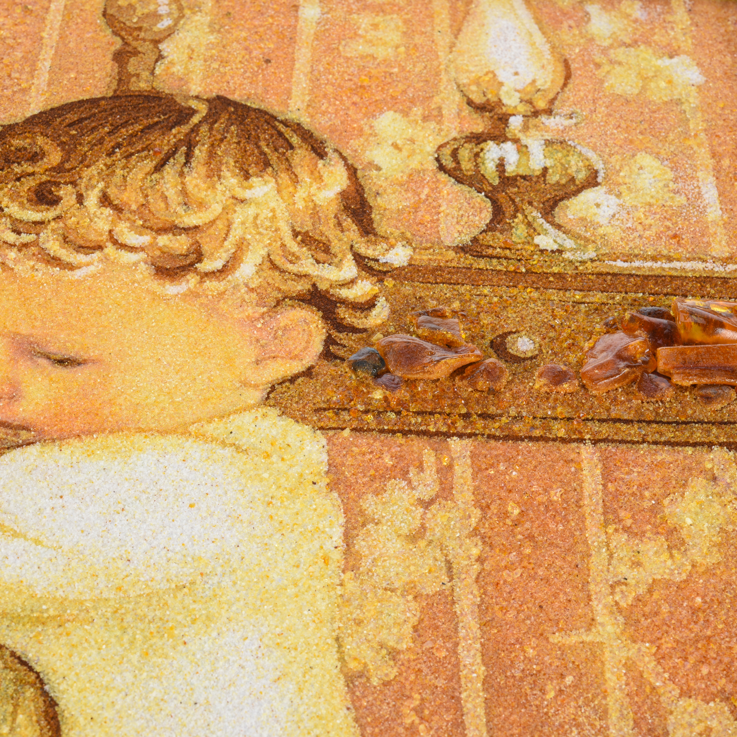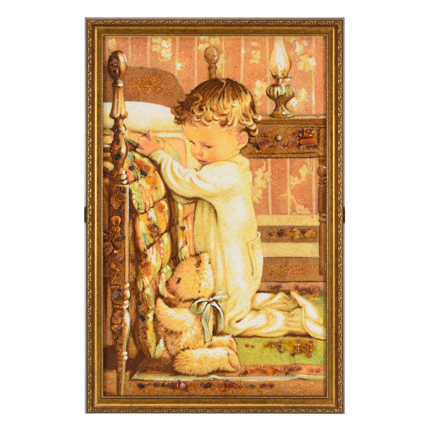 Русские подарки и сувениры → Интерьерные изделия → Картины → Картина янтарная "Малыш с медвежонком" 60х40 см