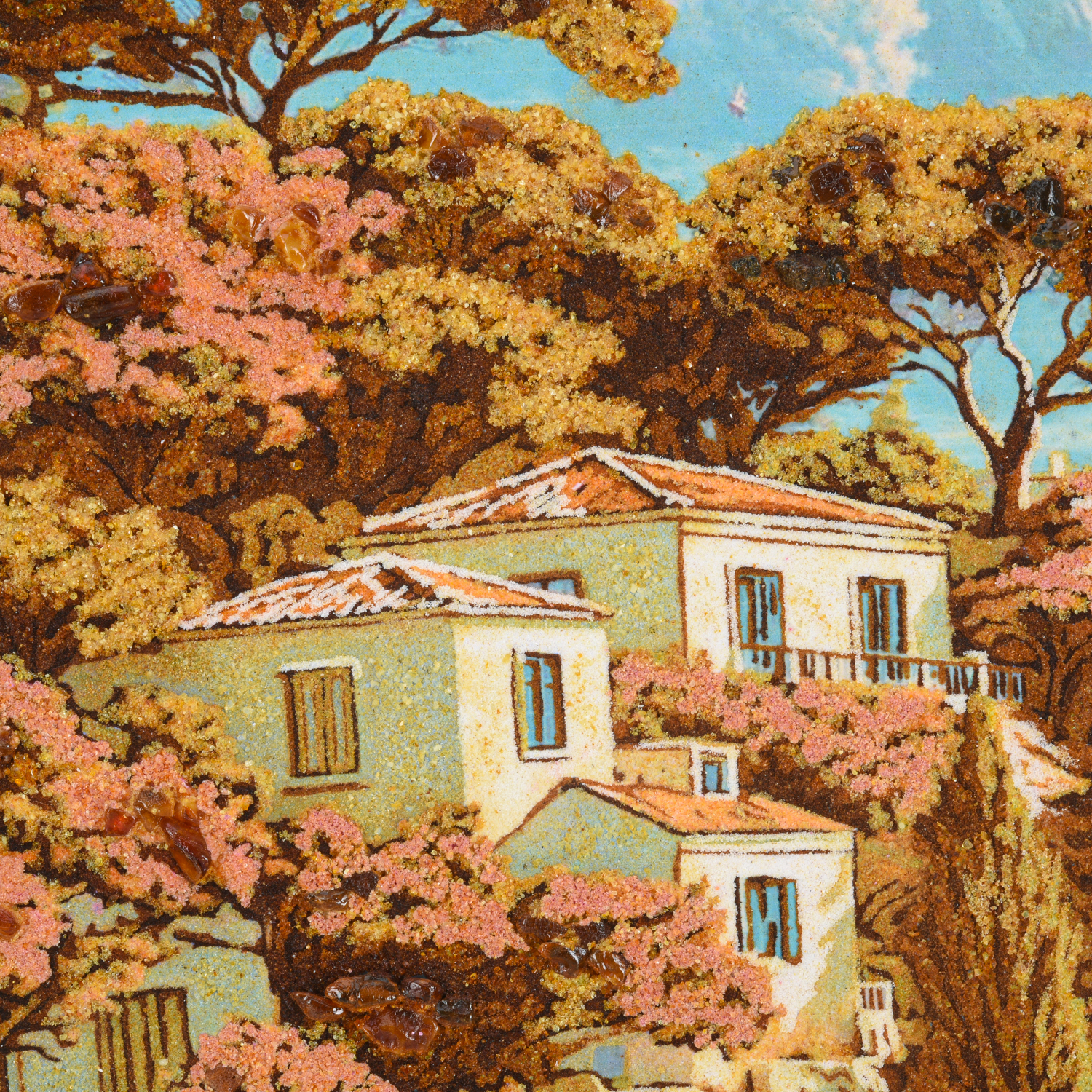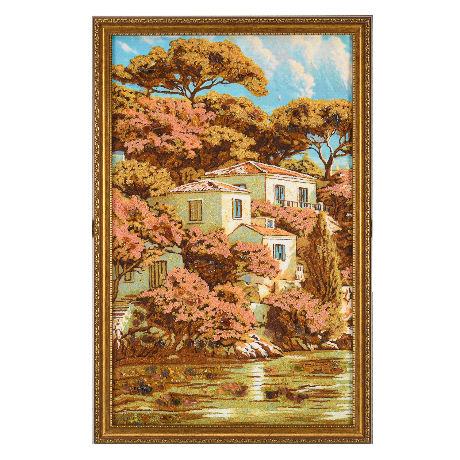 Картина янтарная "Дом у реки" 60х40 см