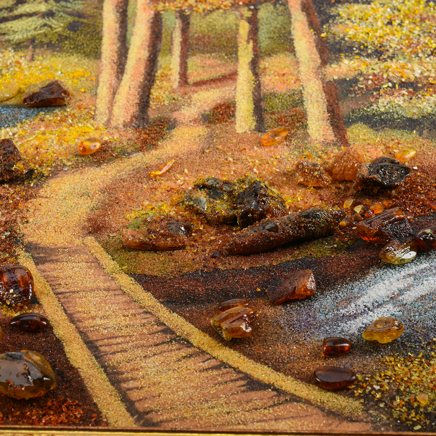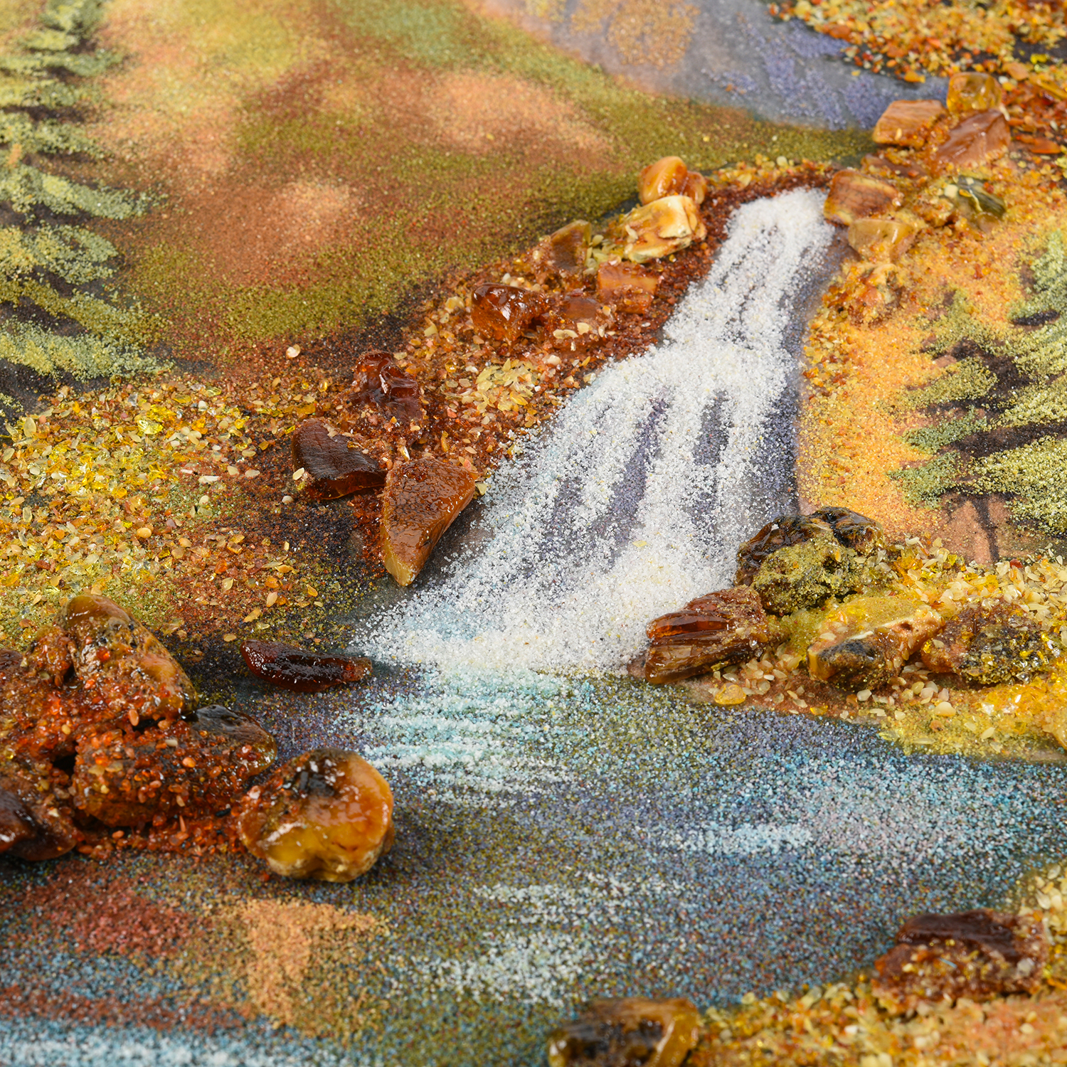 Картина янтарная "У лесного водопада".Размер холста: 60х80 см