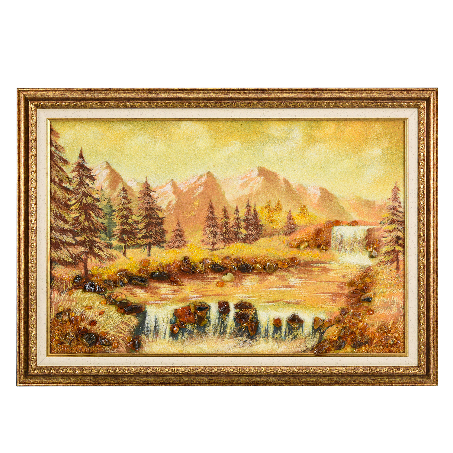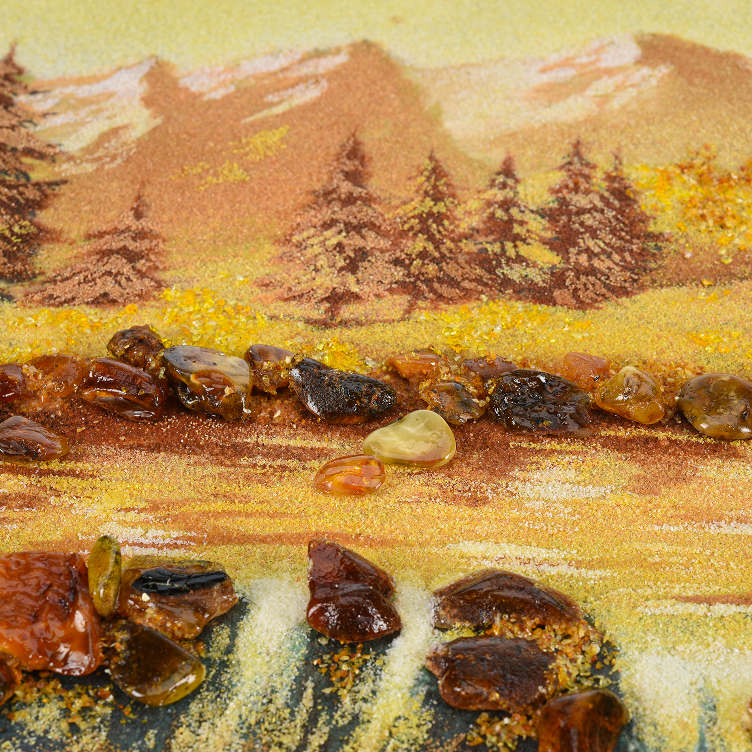 Русские подарки и сувениры → Интерьерные изделия → Картины → Картина янтарная "У золотых гор" 60х40 см