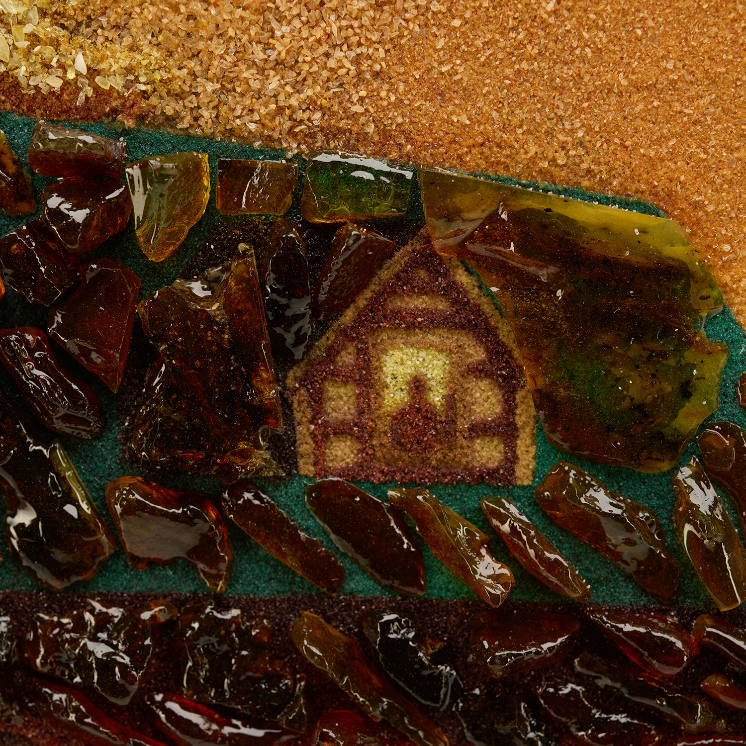 Русские подарки и сувениры → Интерьерные изделия → Картины → Картина янтарная "Домик лесника" 60х40 см