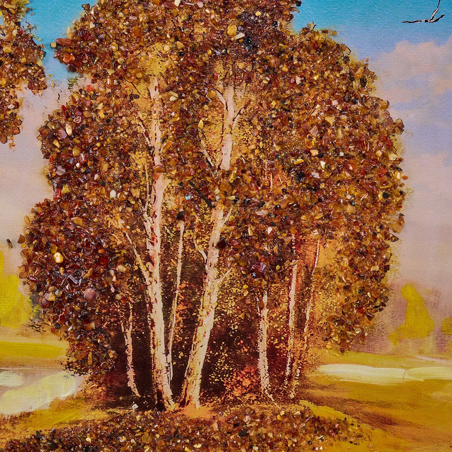 Картина янтарная "Березка".Размер холста: 54х90 см