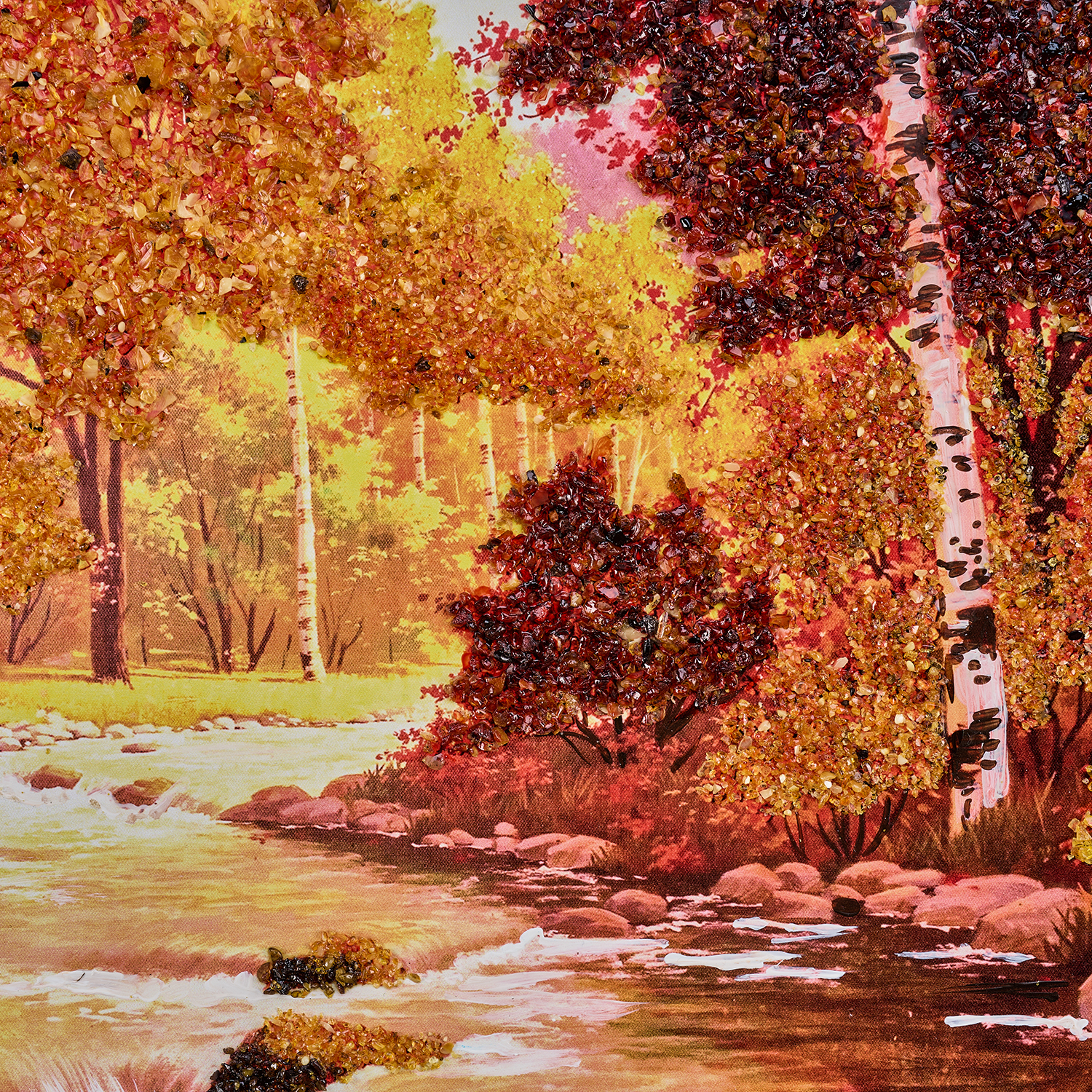 Картина янтарная "Березки".Размер холста: 470х280 мм