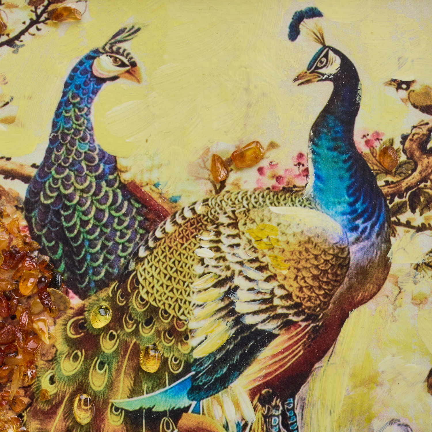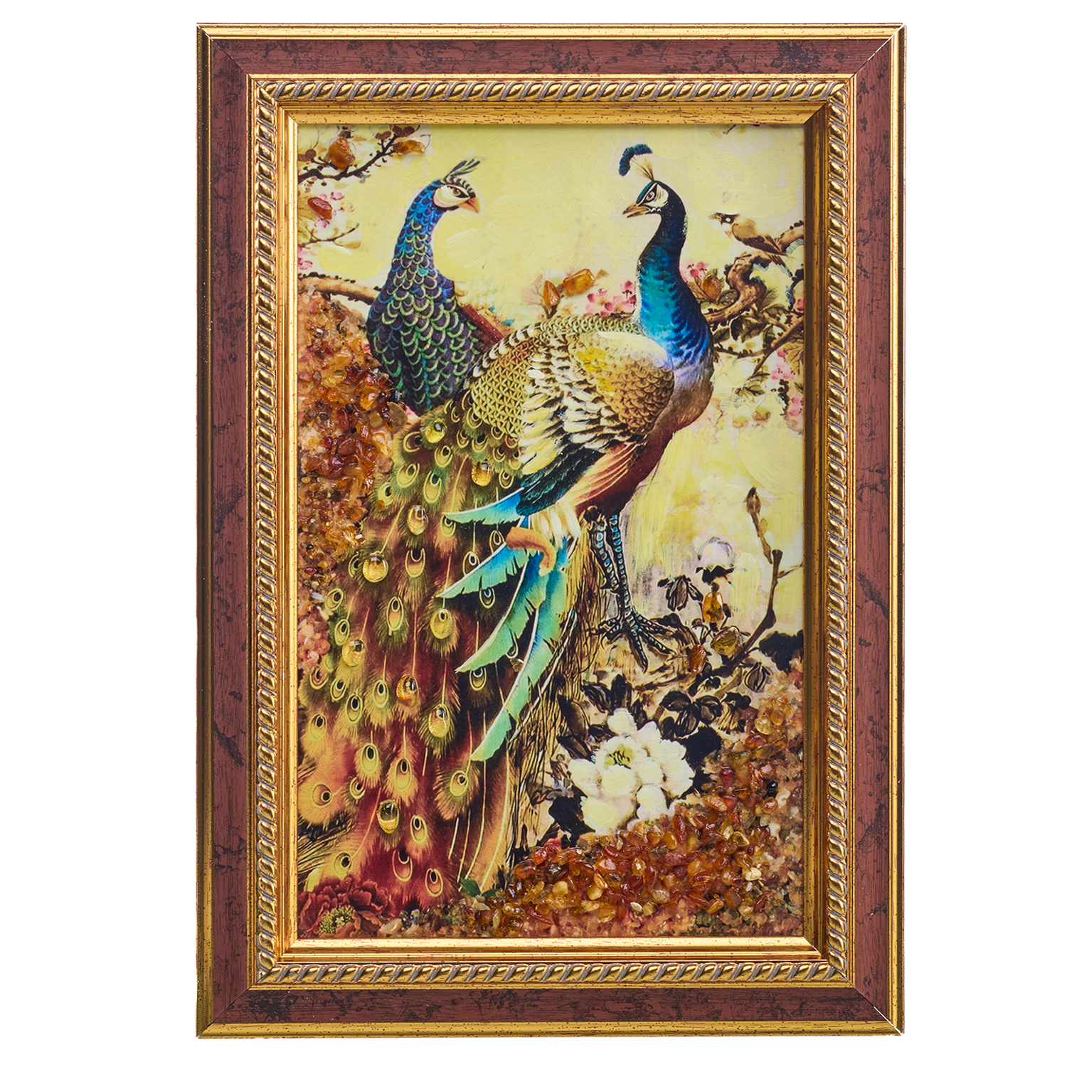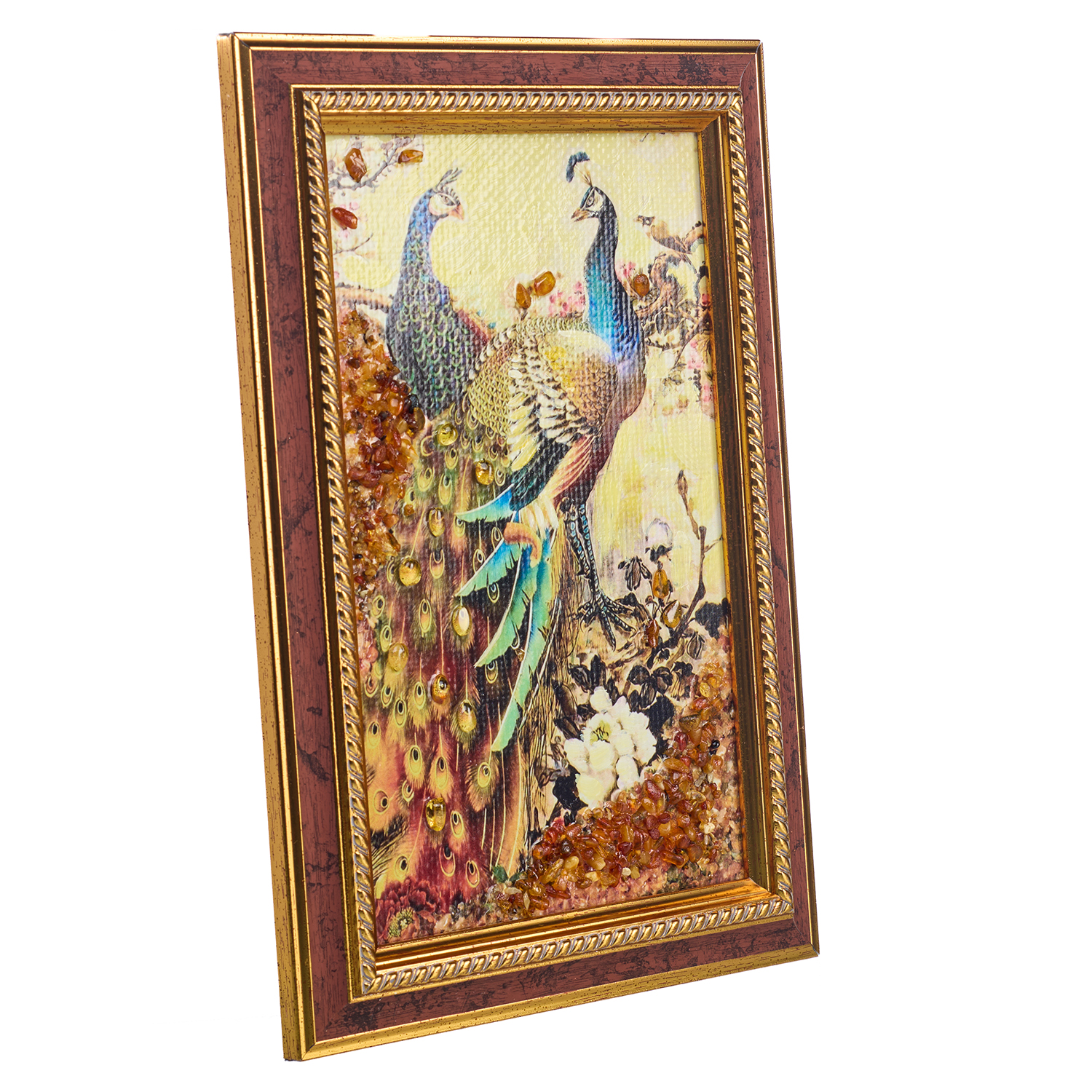 Картина янтарная "Павлины" 15х24 см