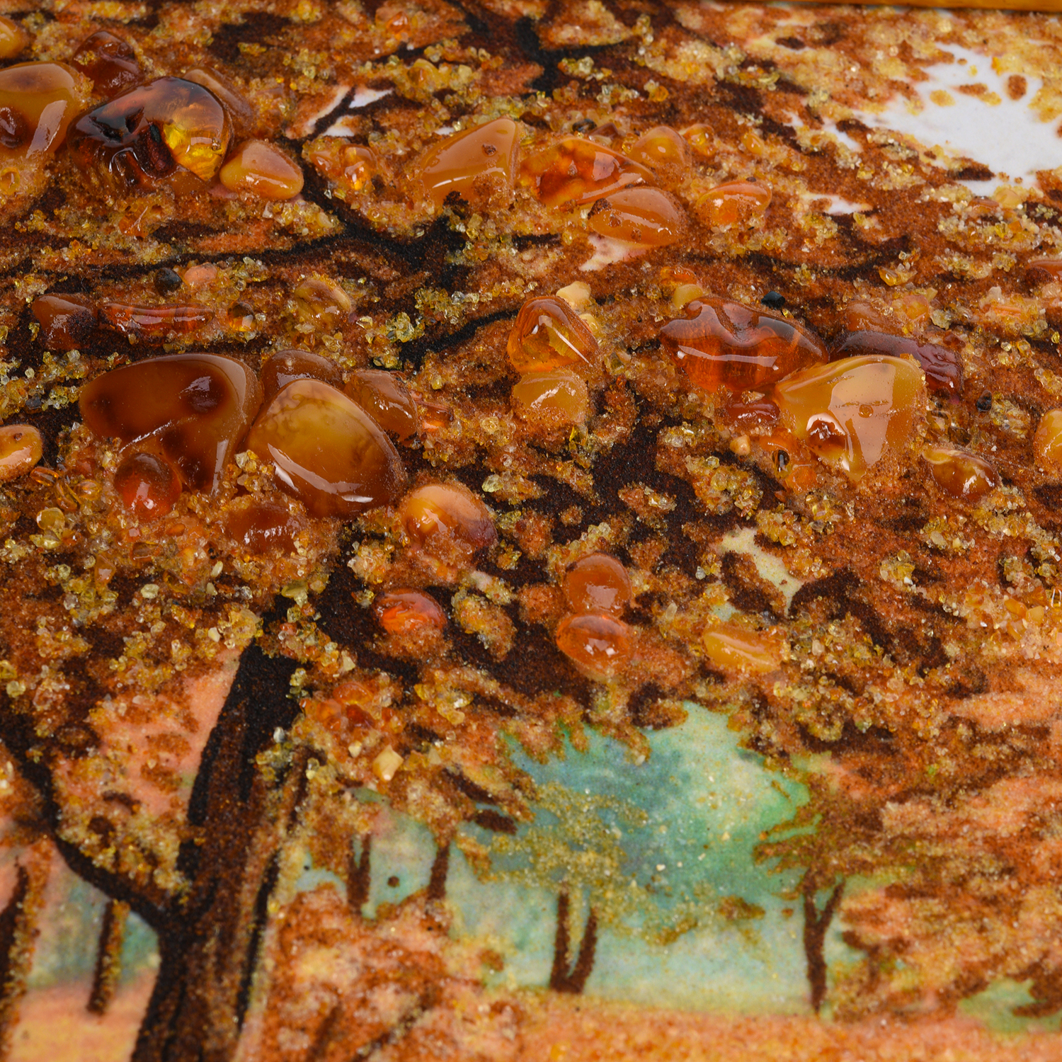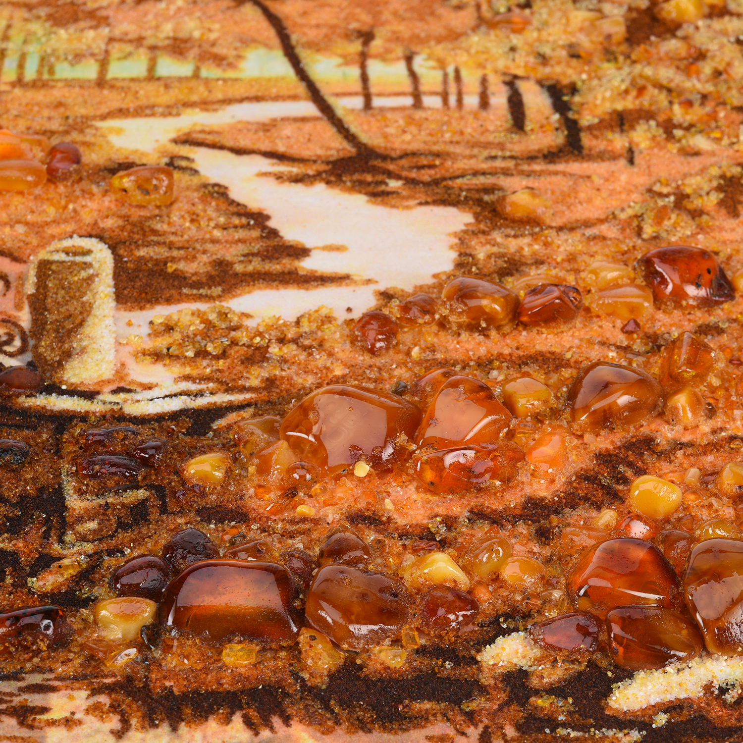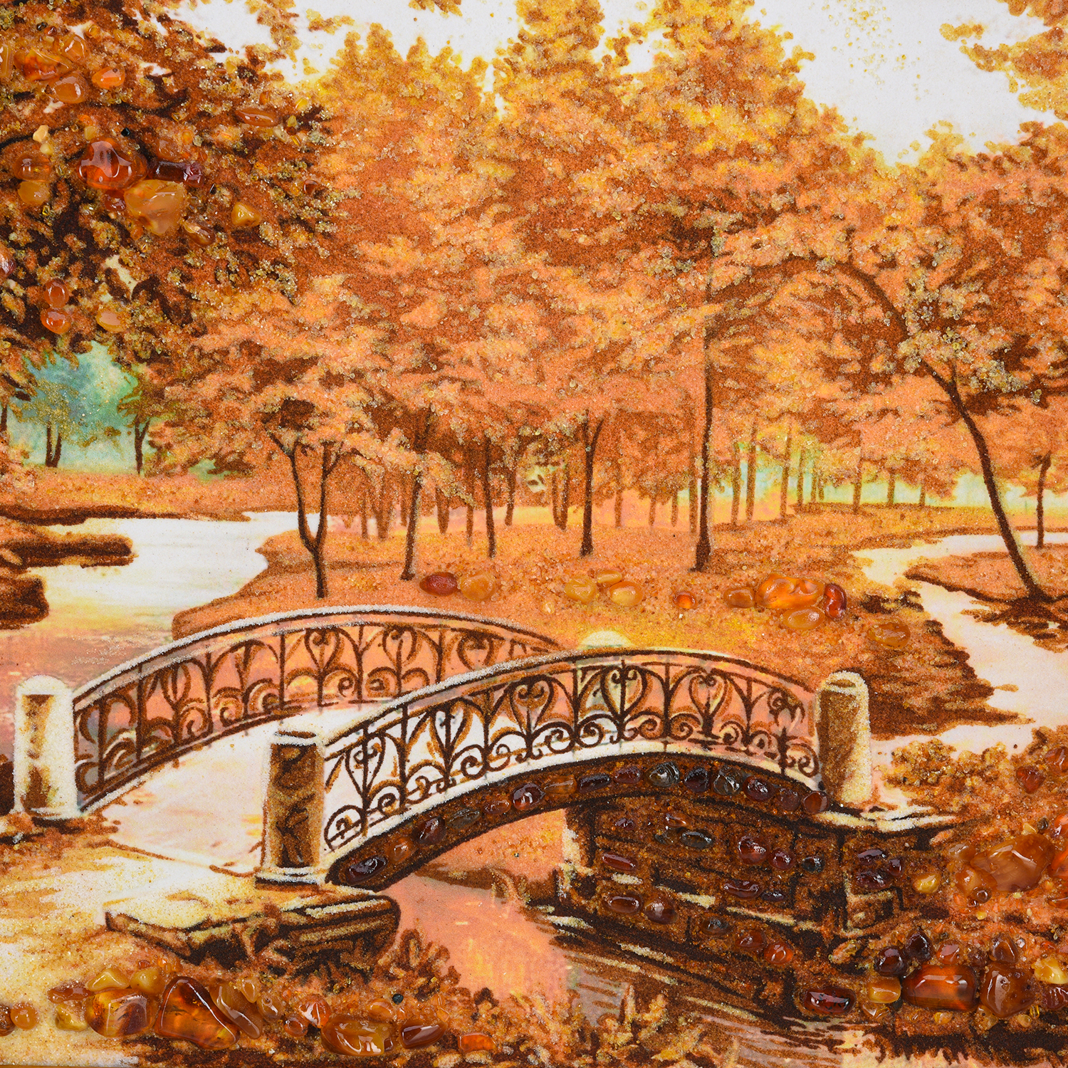 Картина янтарная "Осень в парке. Мостик".