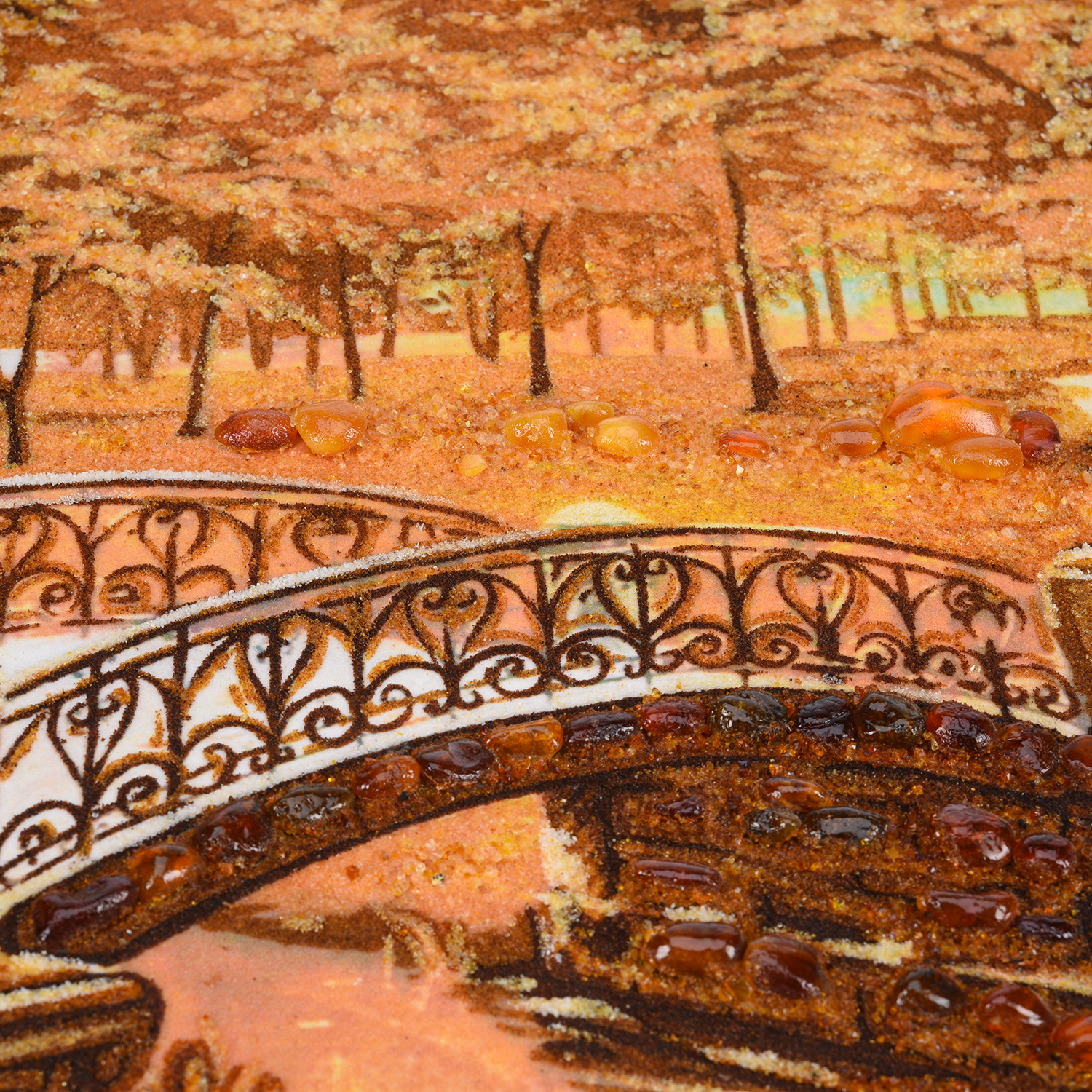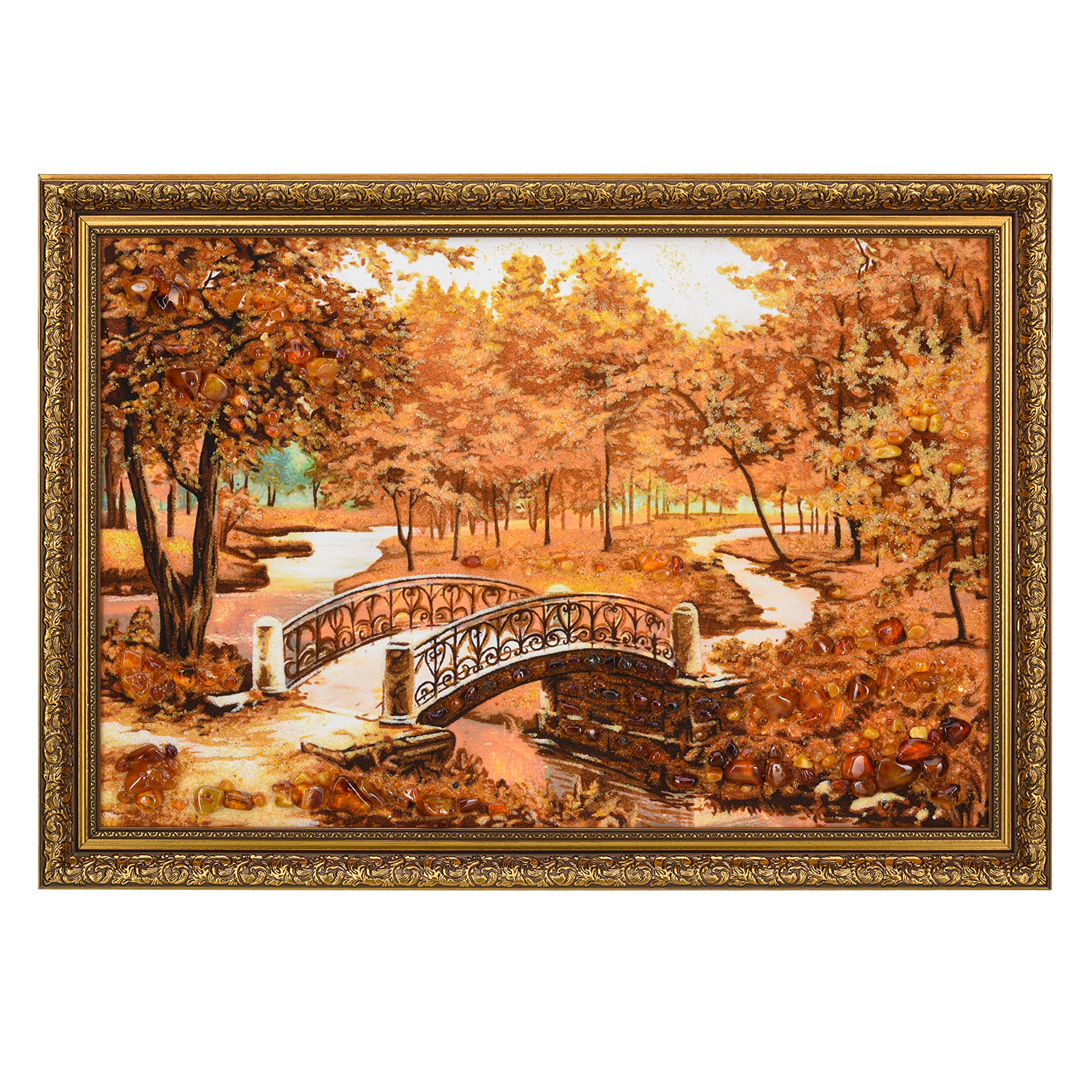 Картина янтарная "Осень в парке. Мостик" 60х40 см