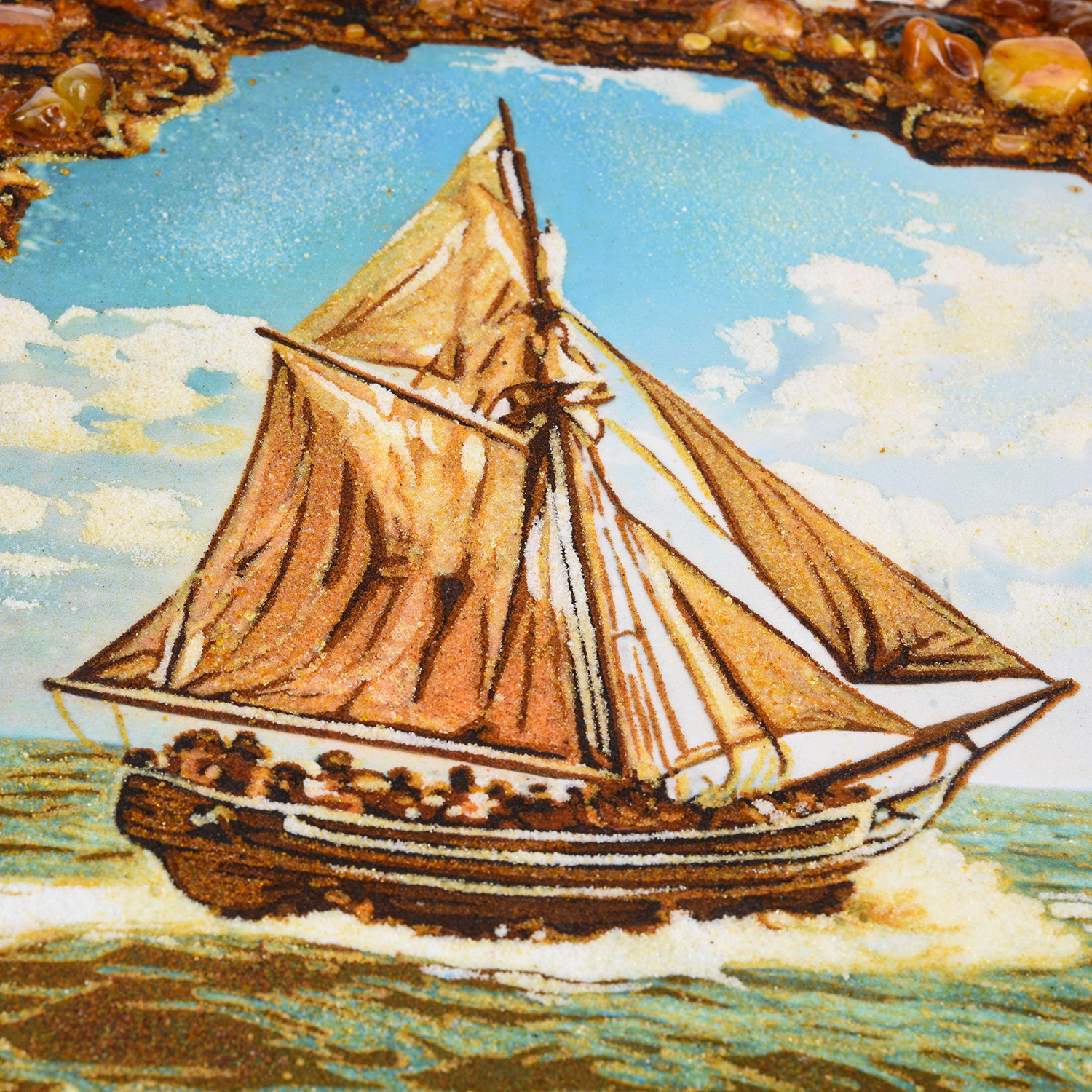 Картина янтарная "Корабль".Размер холста: 60х80 см