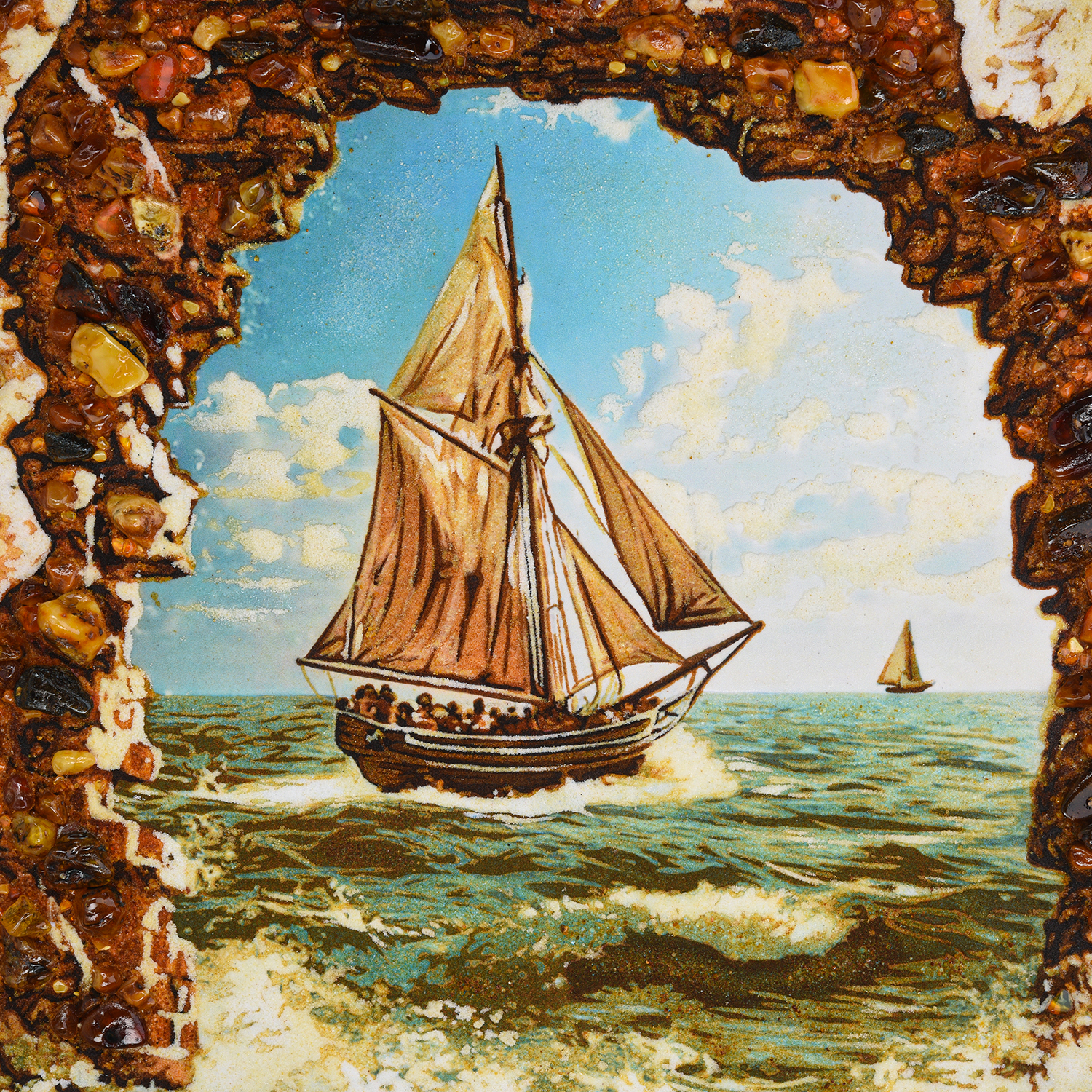 Картина янтарная "Корабль" 60х80 см