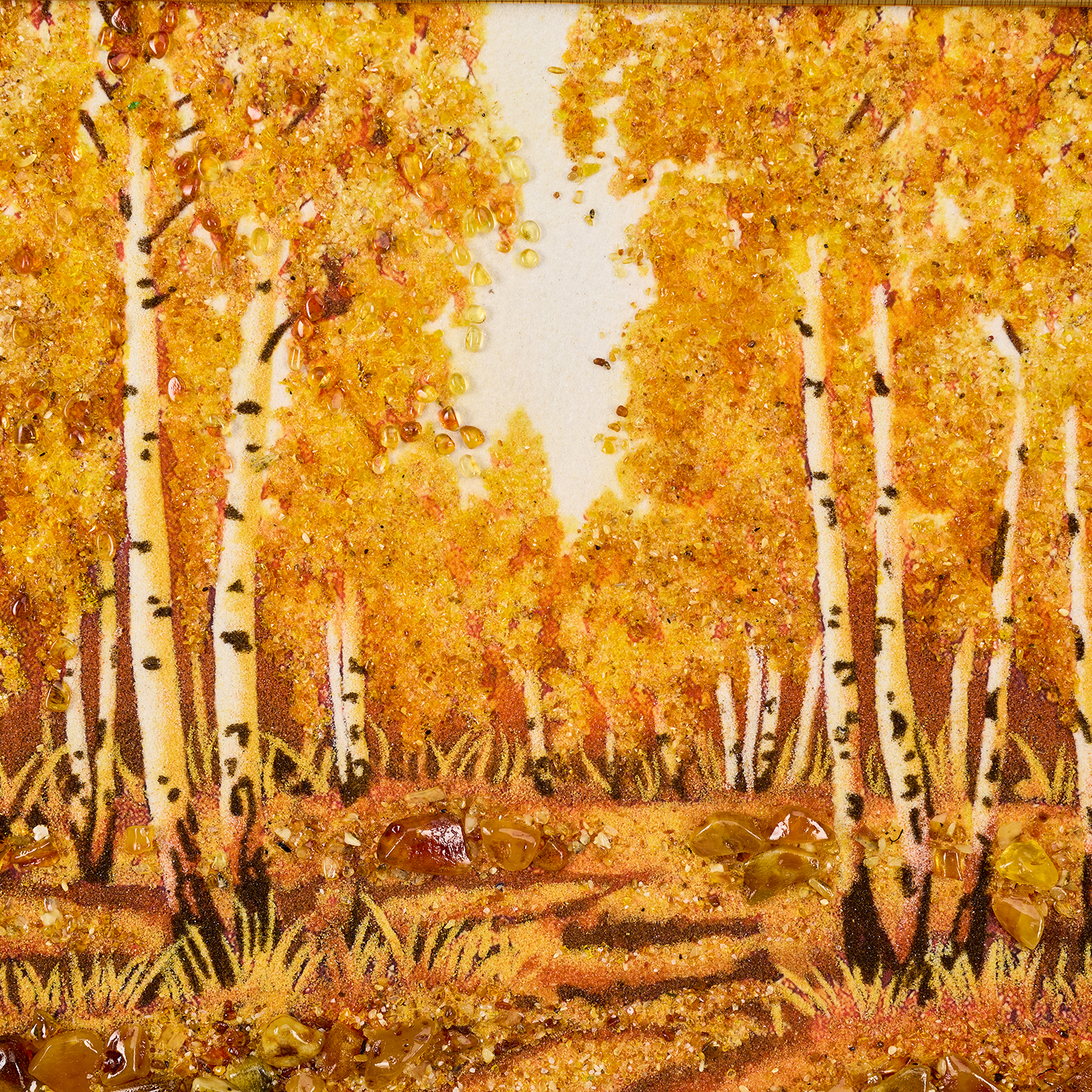 Картина янтарная "Солнечная роща".Размер холста: 60х40 см