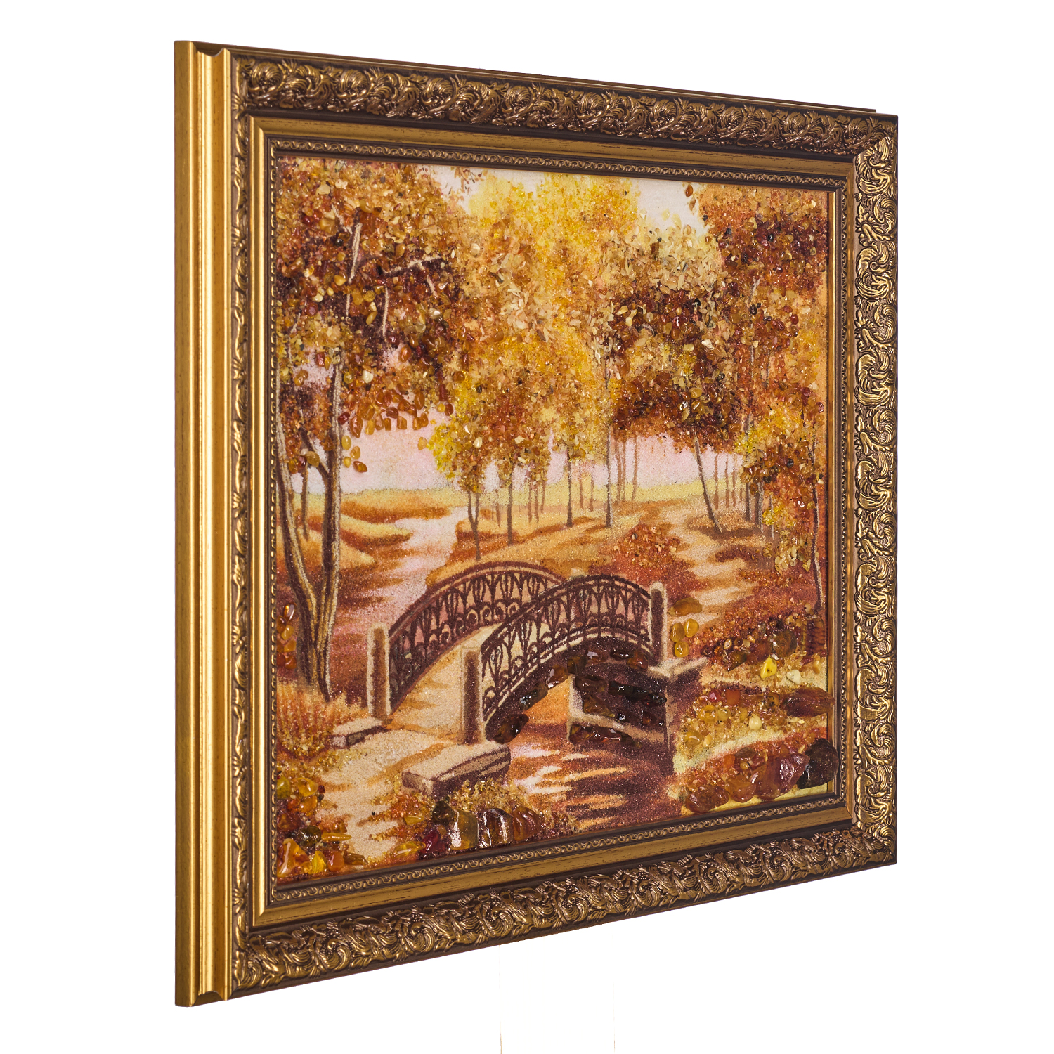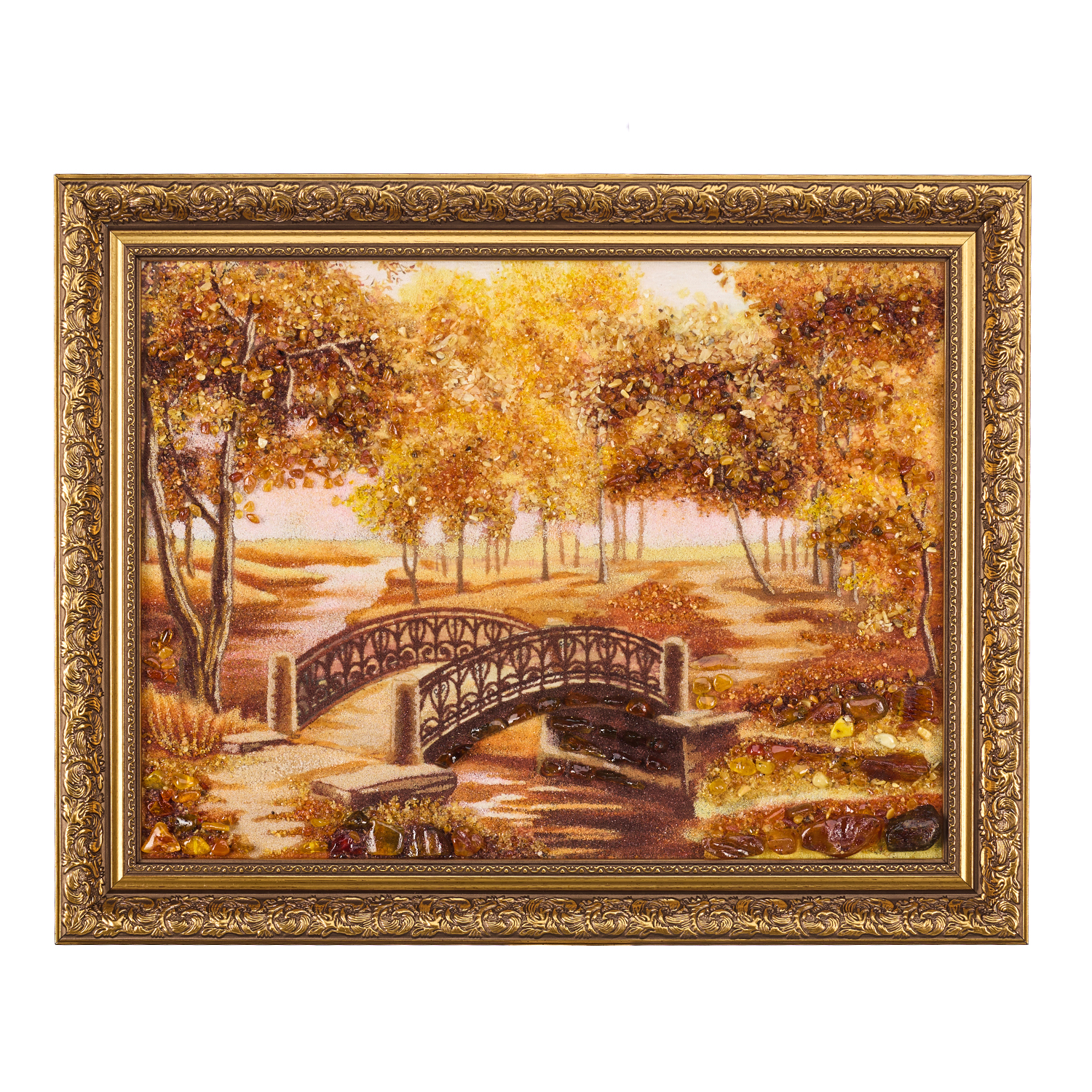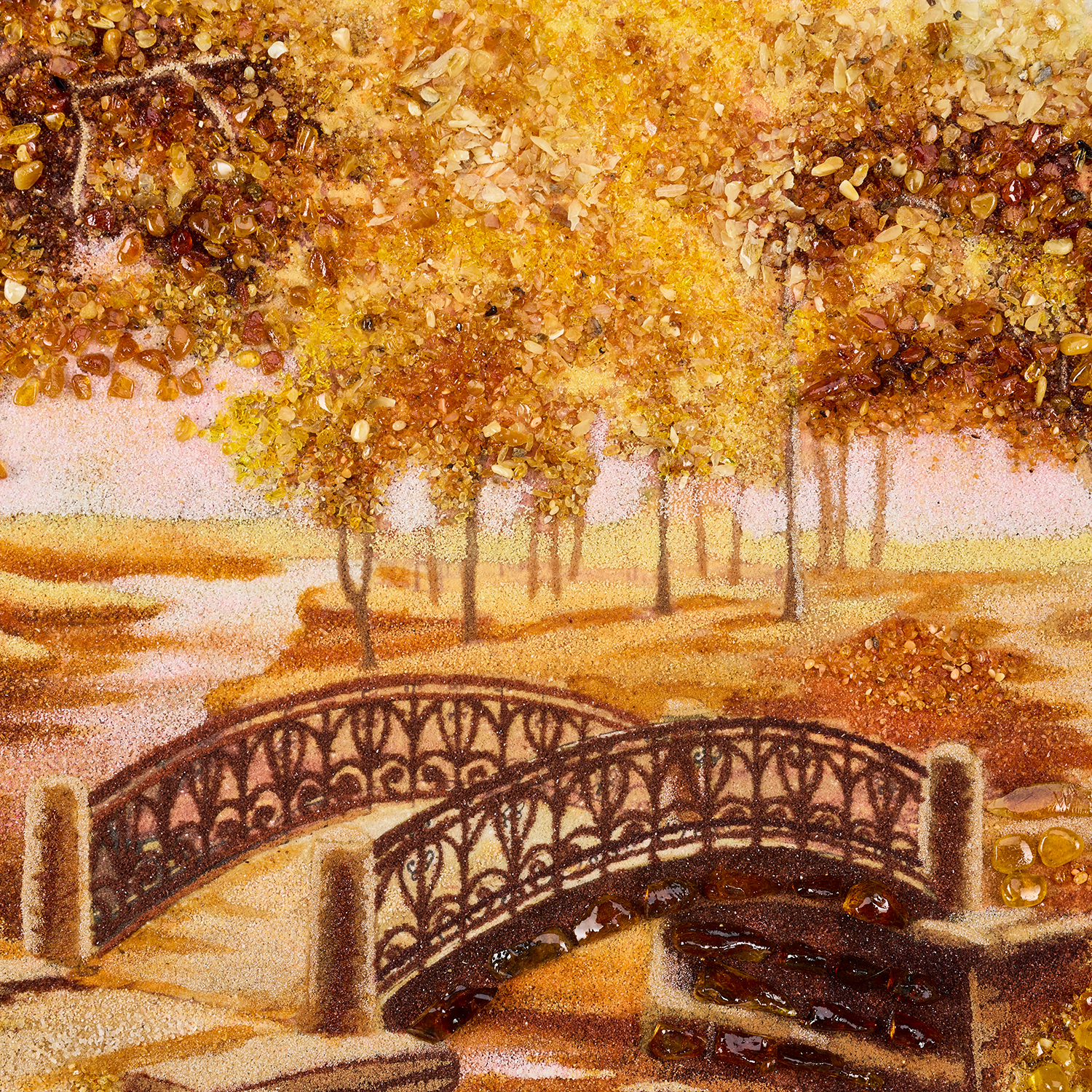 Русские подарки и сувениры → Интерьерные изделия → Картины → Картина янтарная "Осень в парке. Мостик" 30х40 см