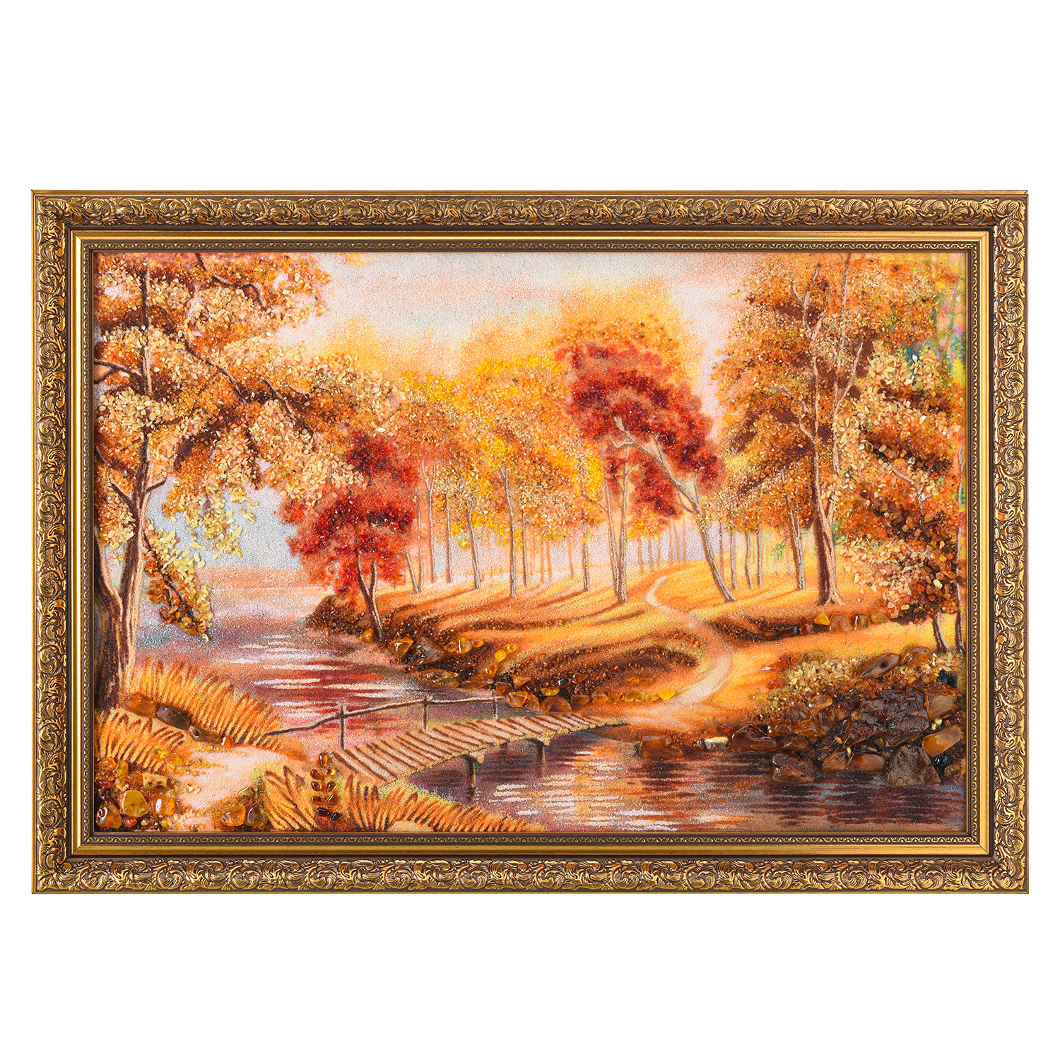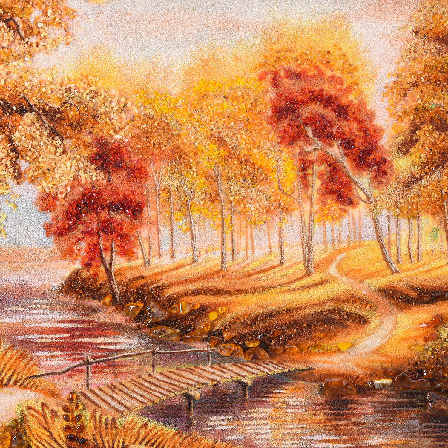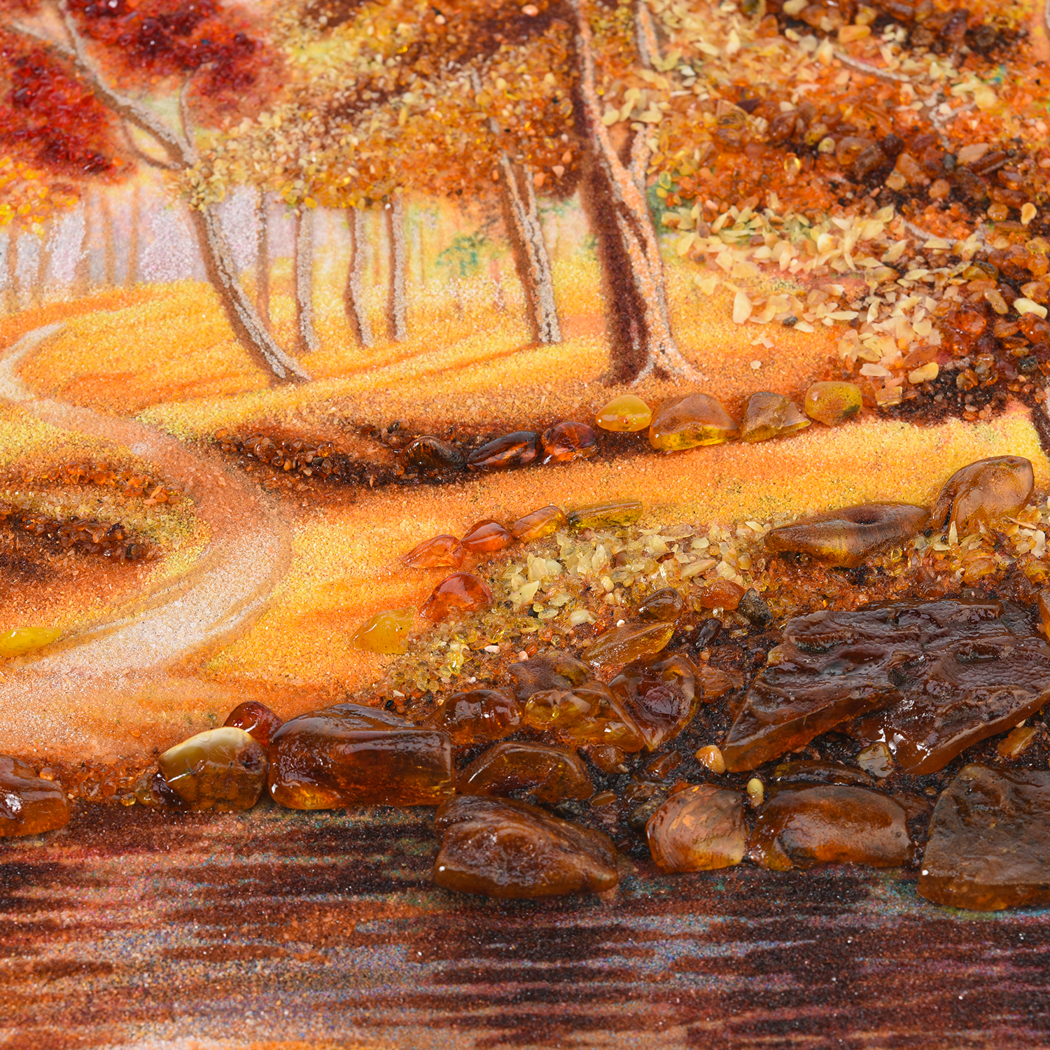 Русские подарки и сувениры → Интерьерные изделия → Картины → Картина янтарная "Пейзаж с рекой" 60х40 см
