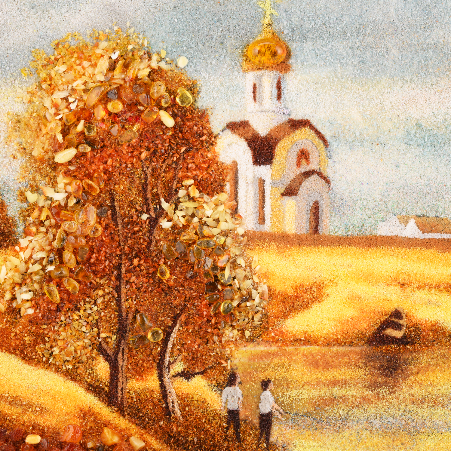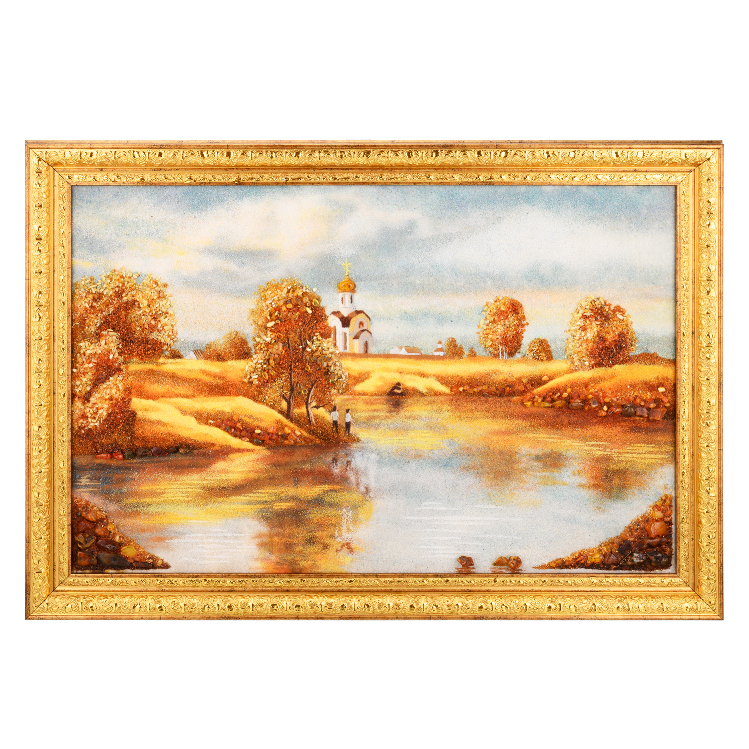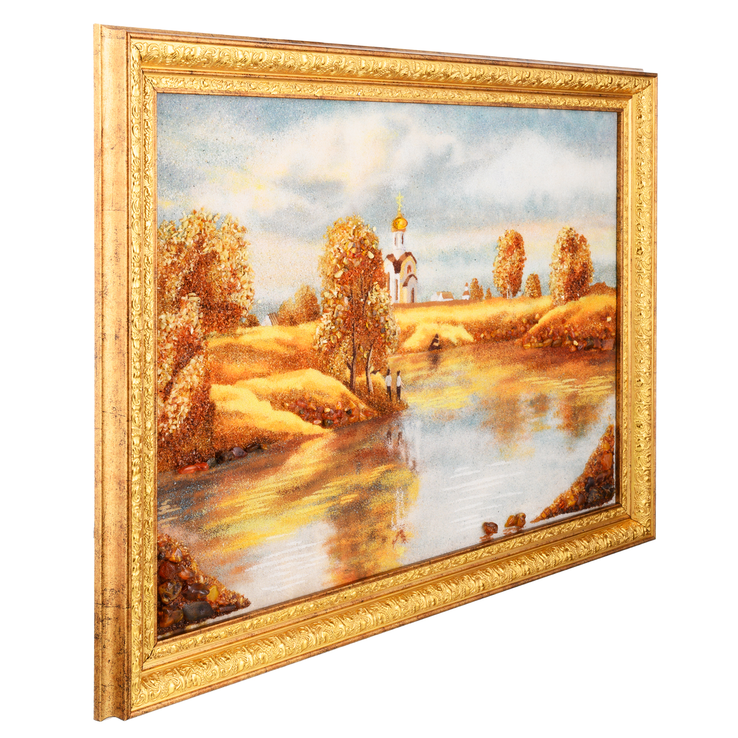 Русские подарки и сувениры → Интерьерные изделия → Картины → Картина янтарная "Осенний пейзаж. Храм" 60х40 см