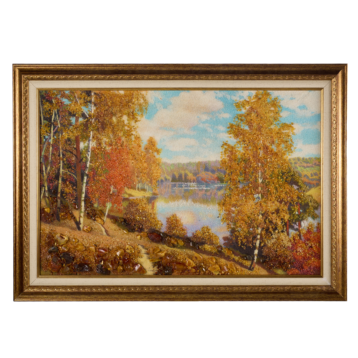 Русские подарки и сувениры → Интерьерные изделия → Картины → Картина янтарная "Озеро в лесу" 60х40 см