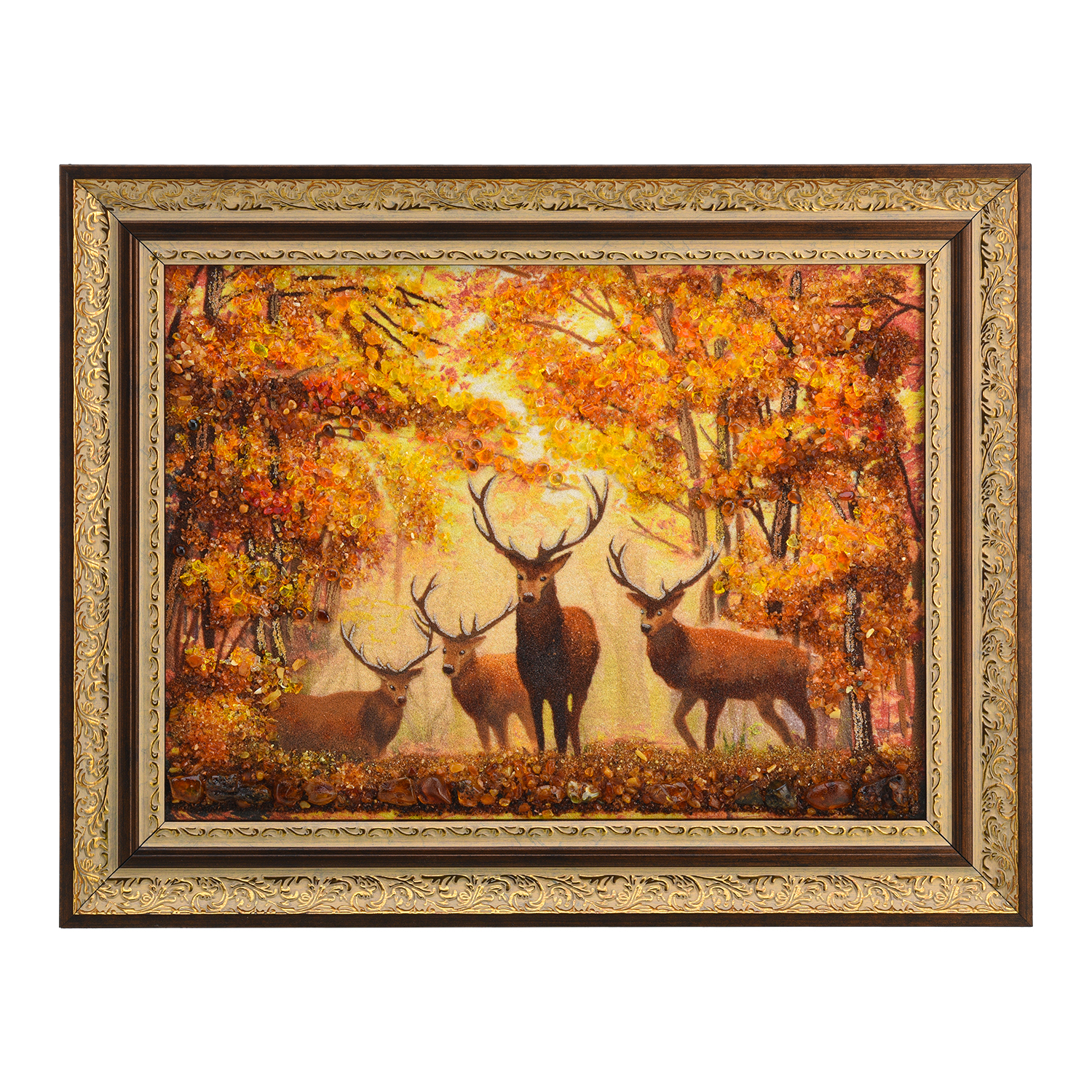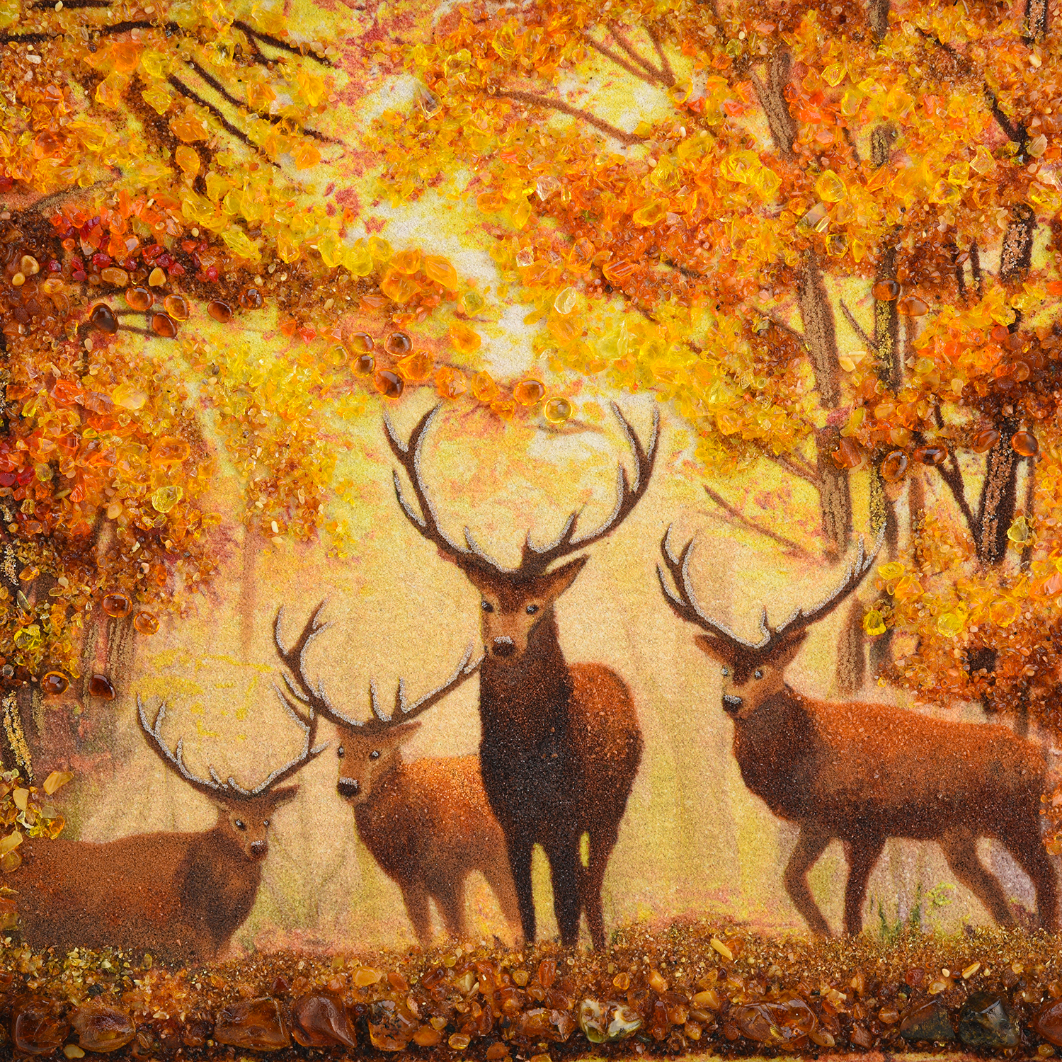 Картина янтарная "Олени".Размер холста: 300х400 мм