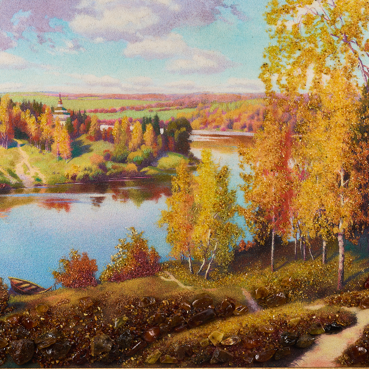 Картина янтарная "Ясный день".Размер холста: 600х800 мм