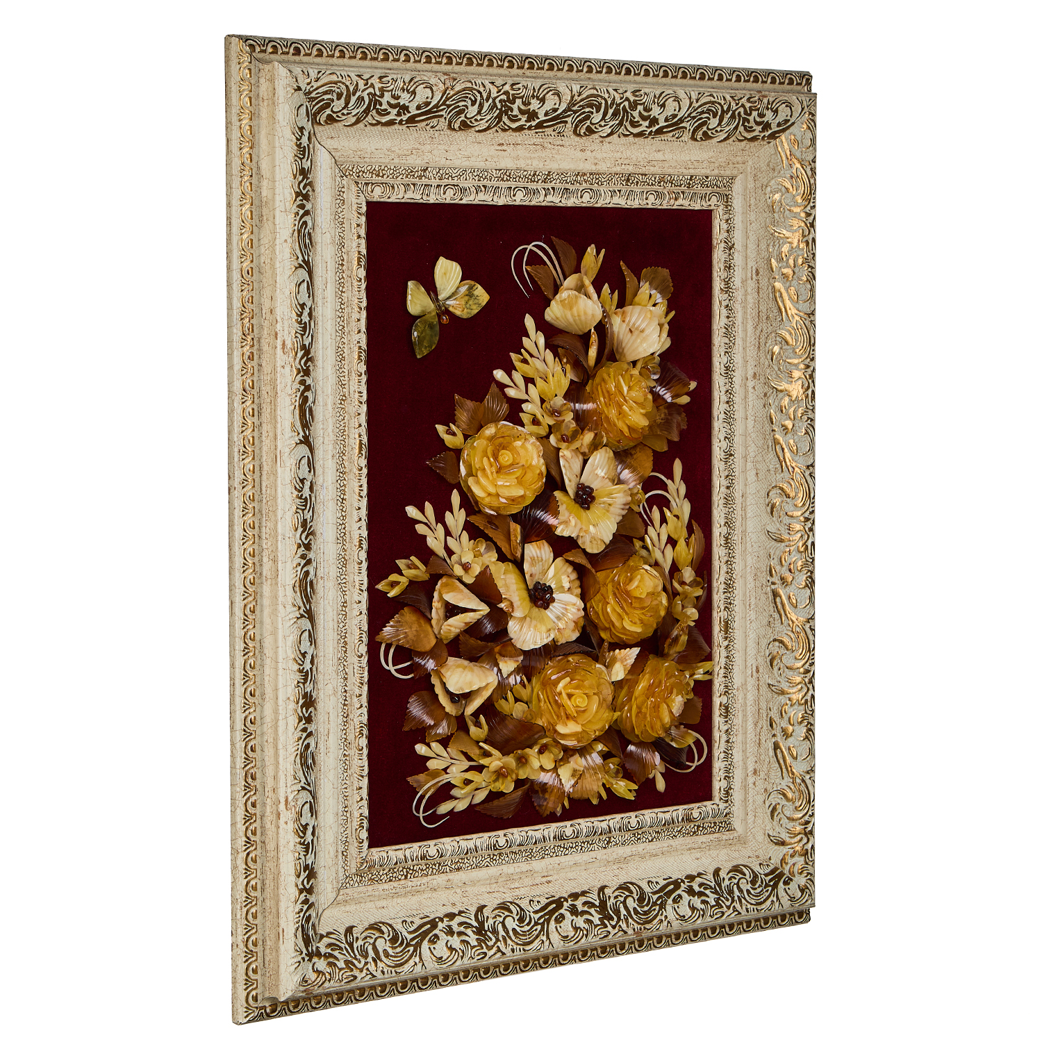 Картина янтарная "Цветы".Материалы: янтарь, барат, багетная рама.