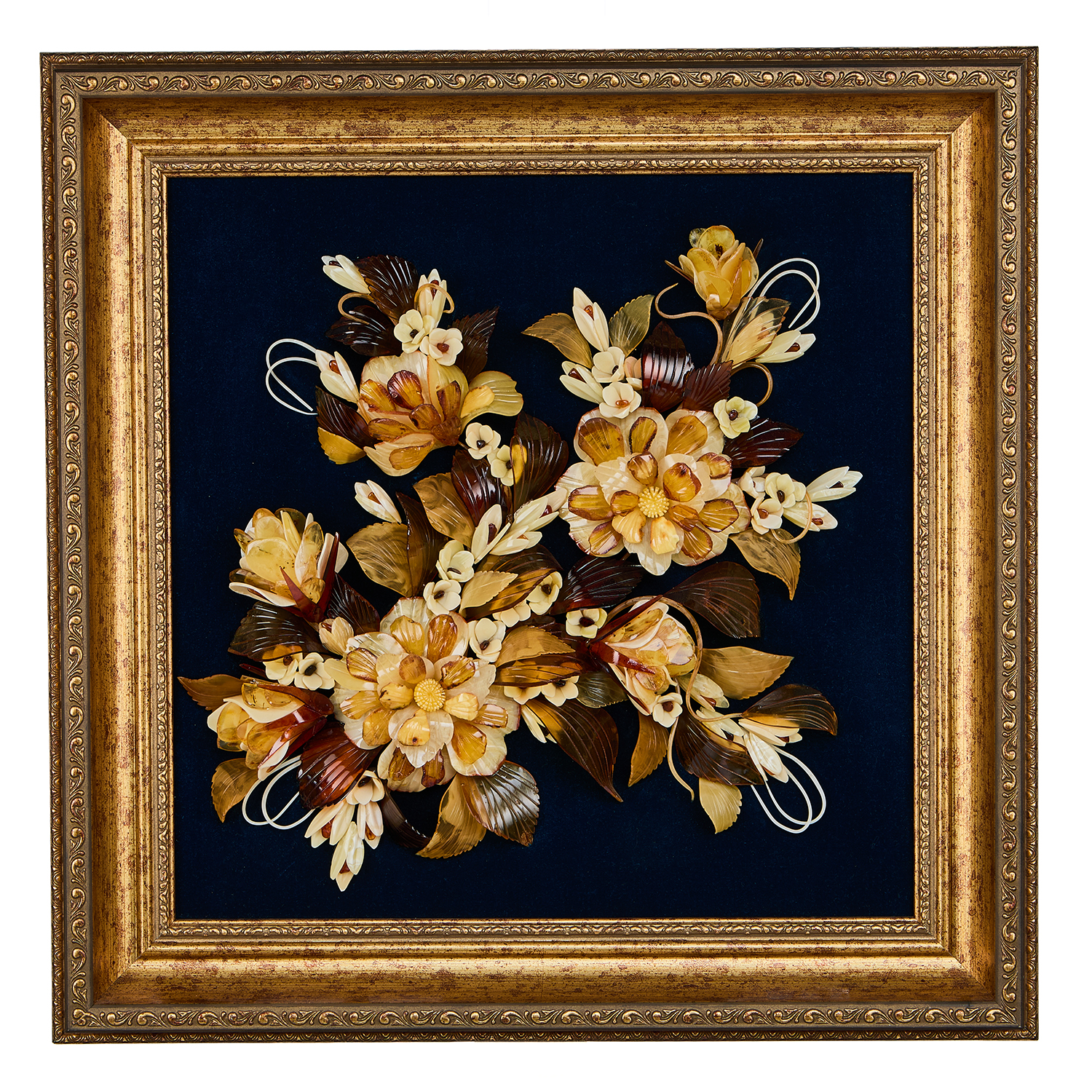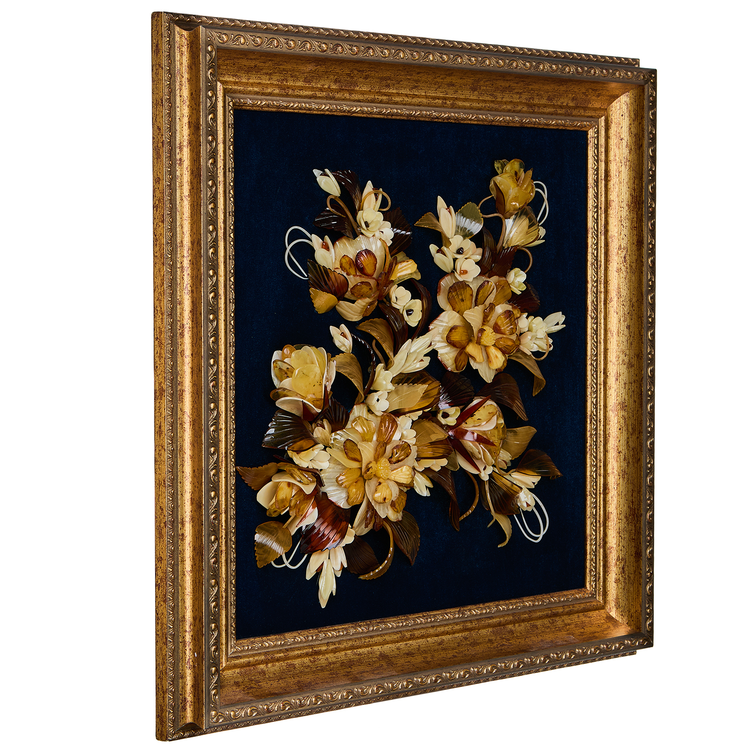 Картина янтарная "Цветы".Материалы: янтарь, барат, багетная рама.