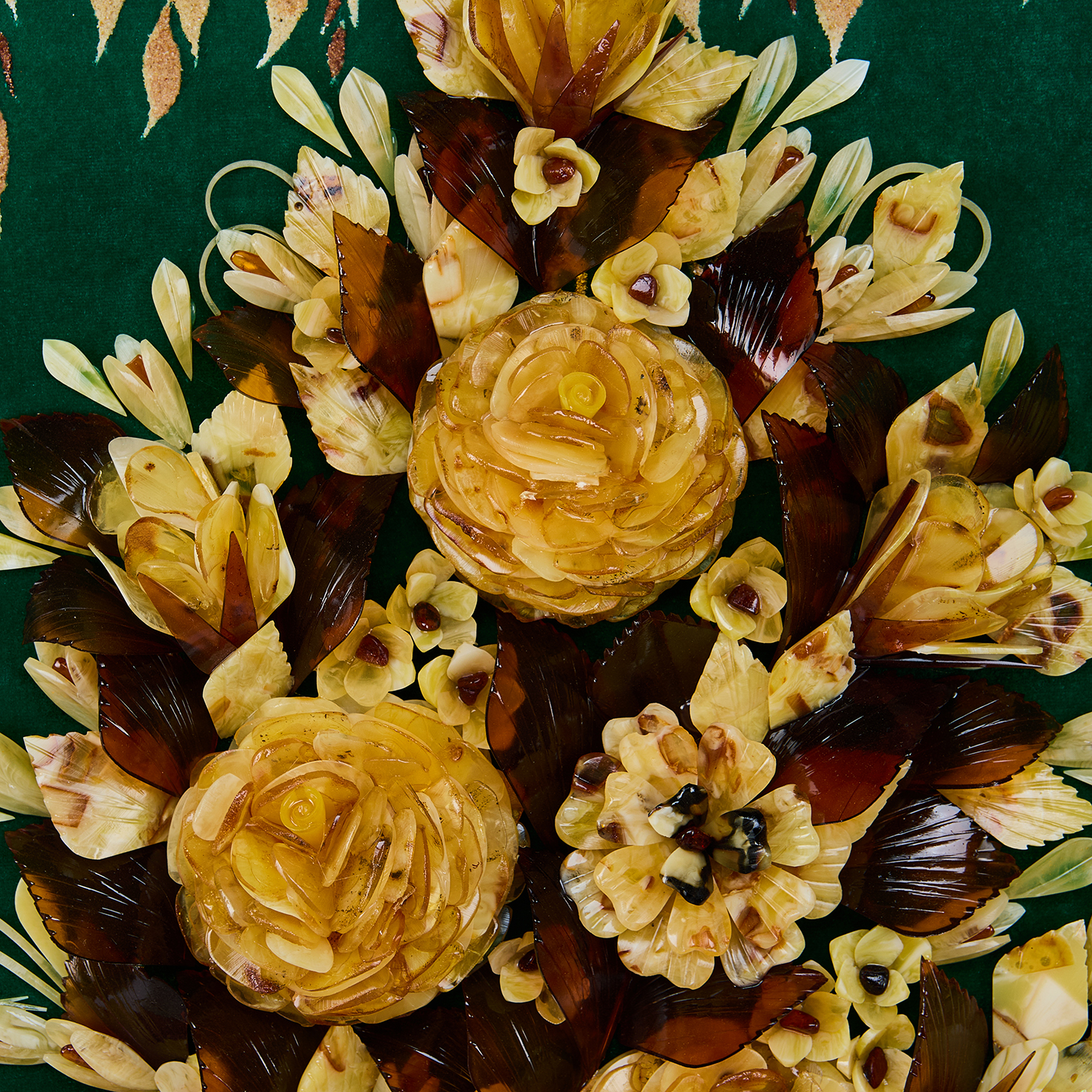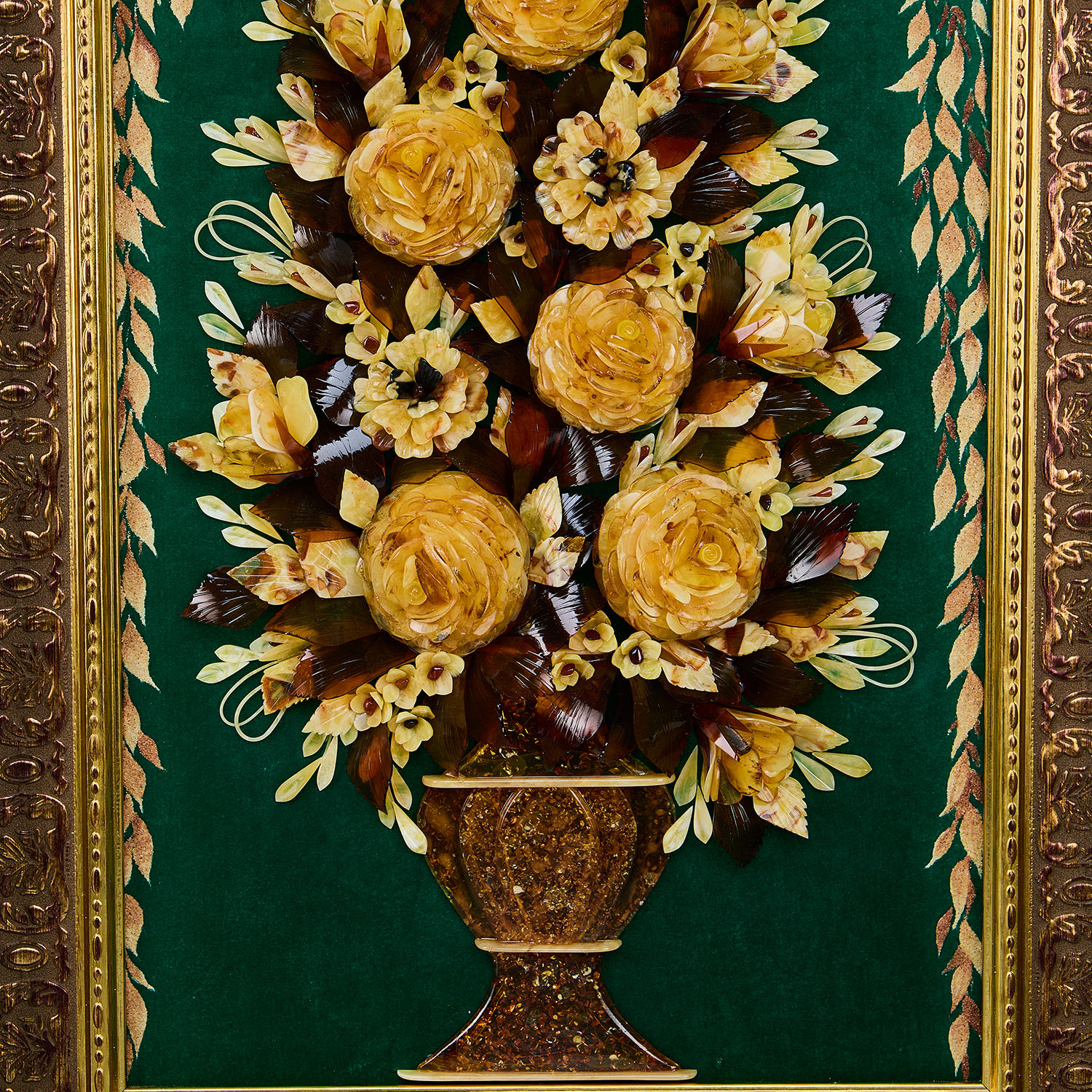 Картина янтарная "Цветы в вазе".Материалы: янтарь, барат, багетная рама.