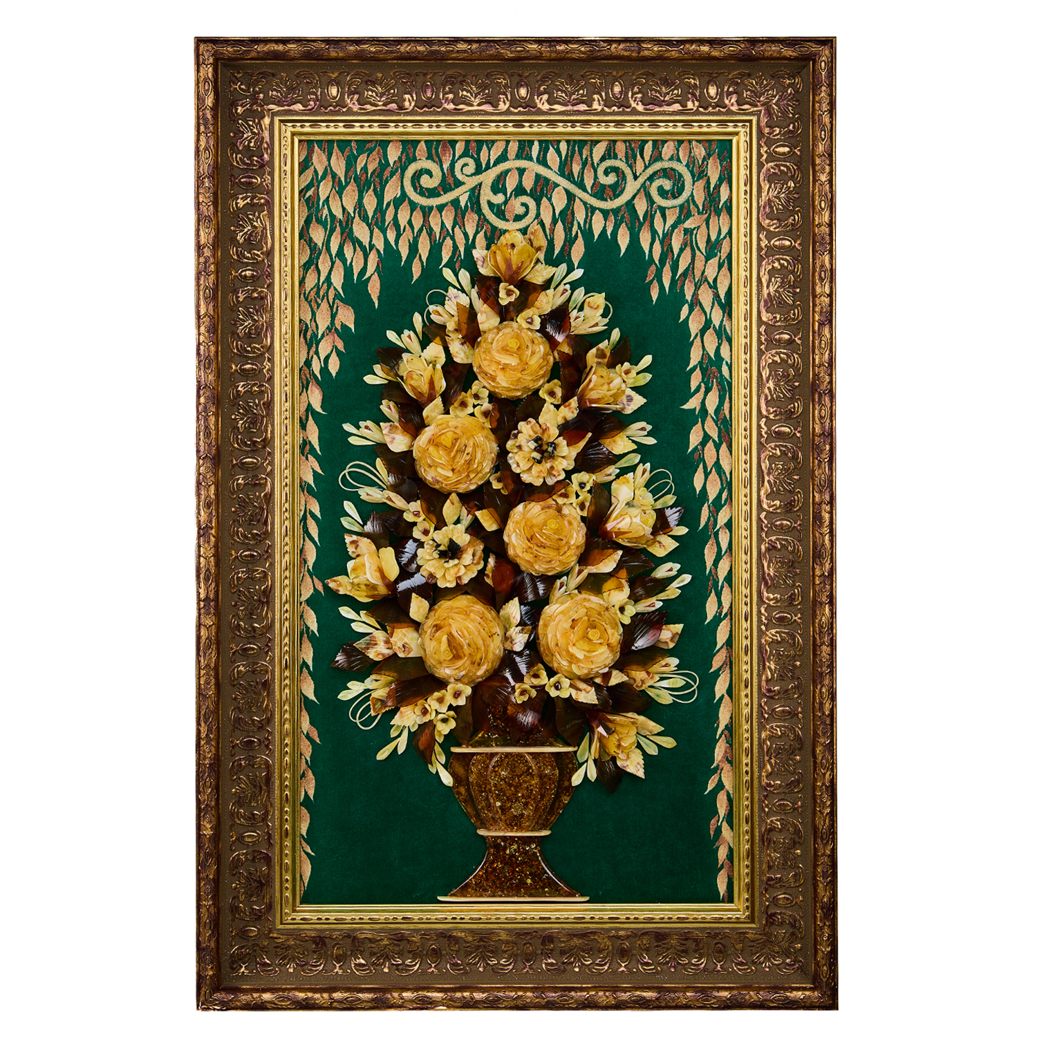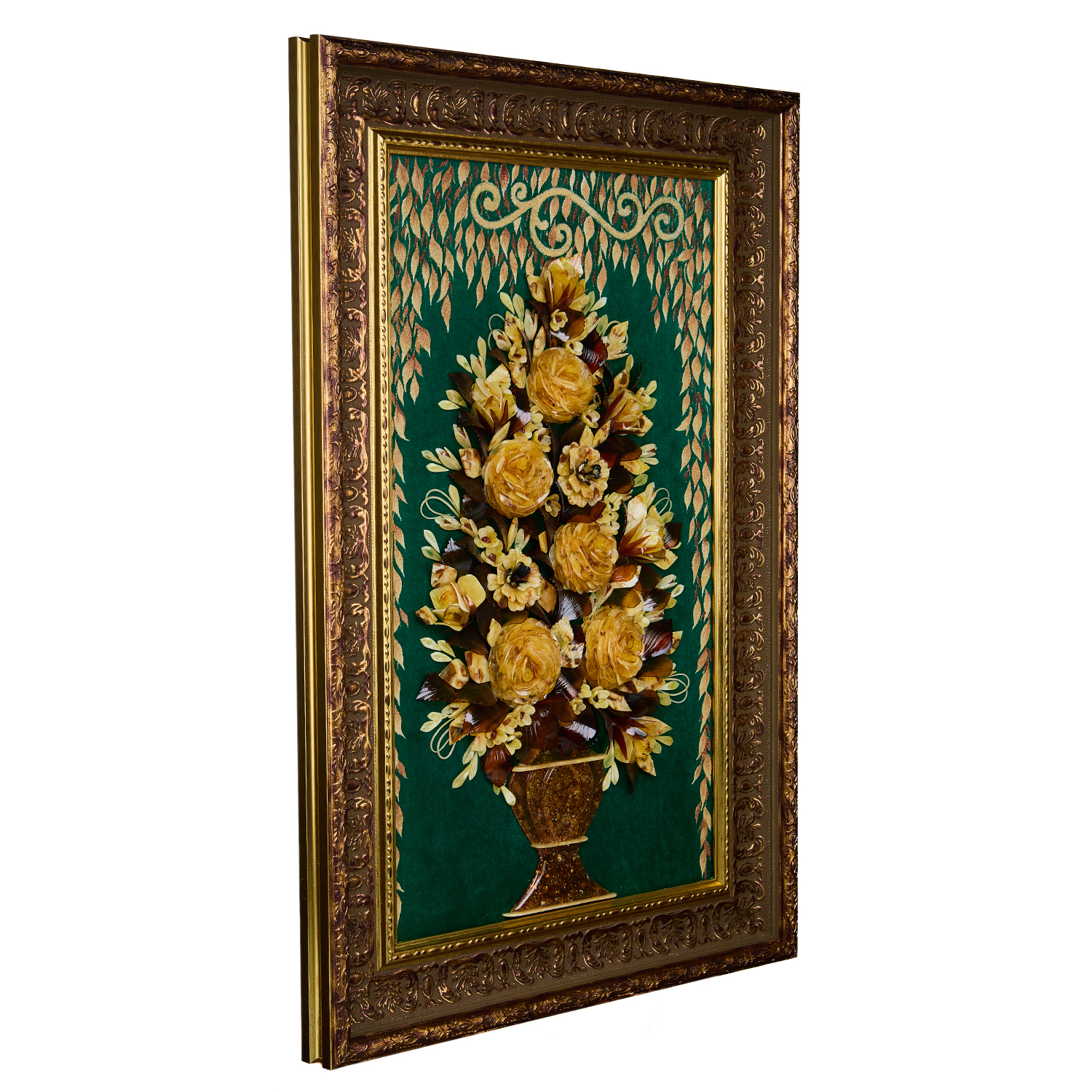 Русские подарки и сувениры → Интерьерные изделия → Картины → Картина янтарная "Цветы в вазе" 40х70 см