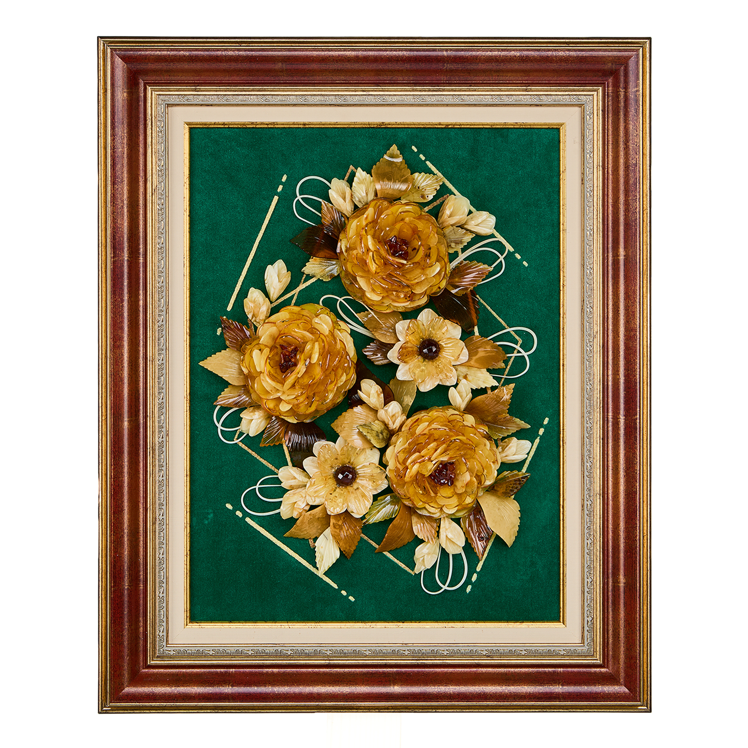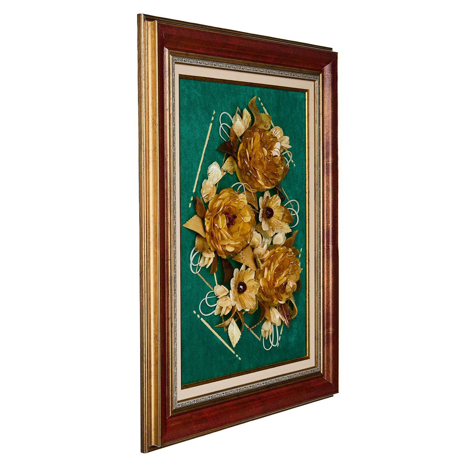 Картина янтарная "Цветы".Материалы: янтарь, барат, багетная рама.