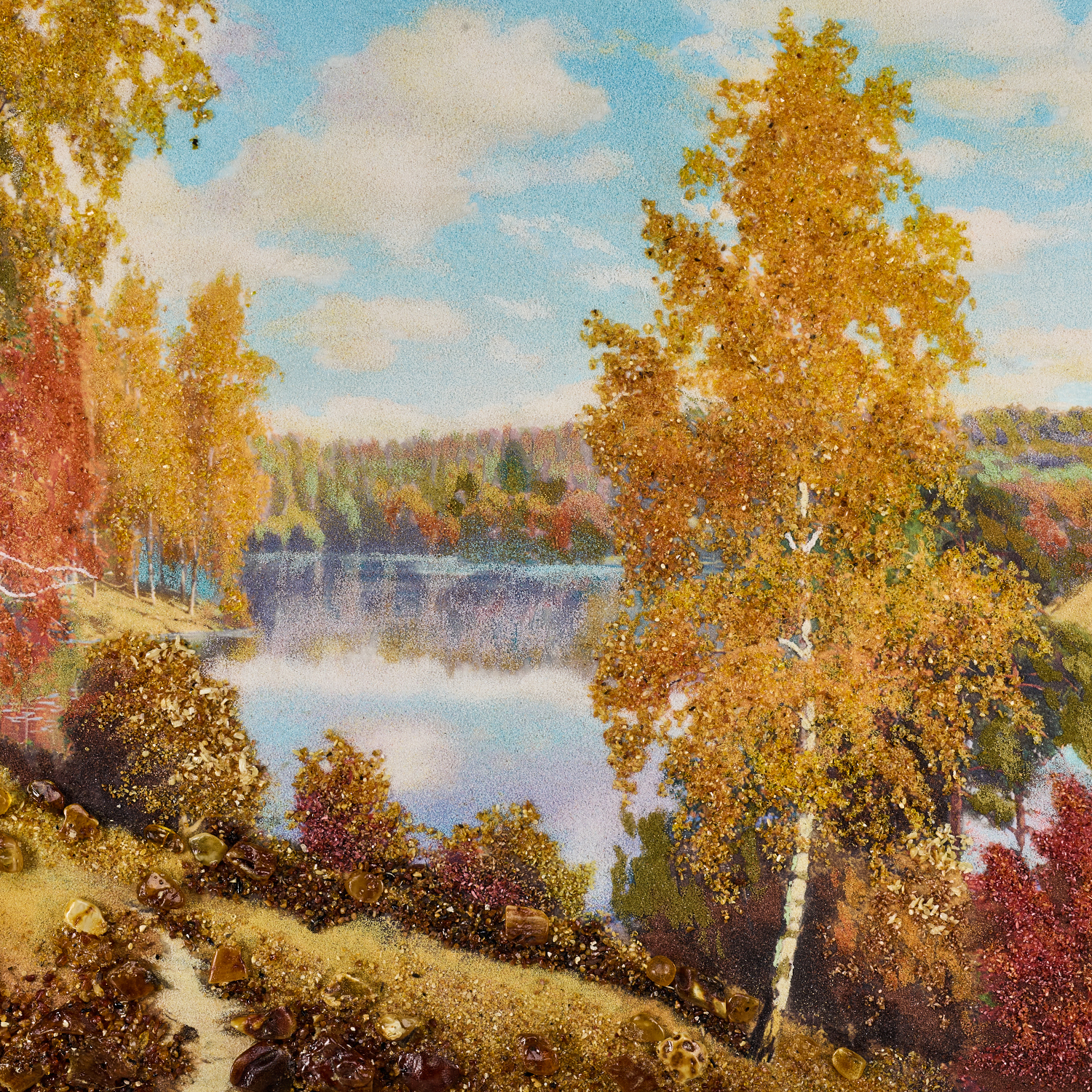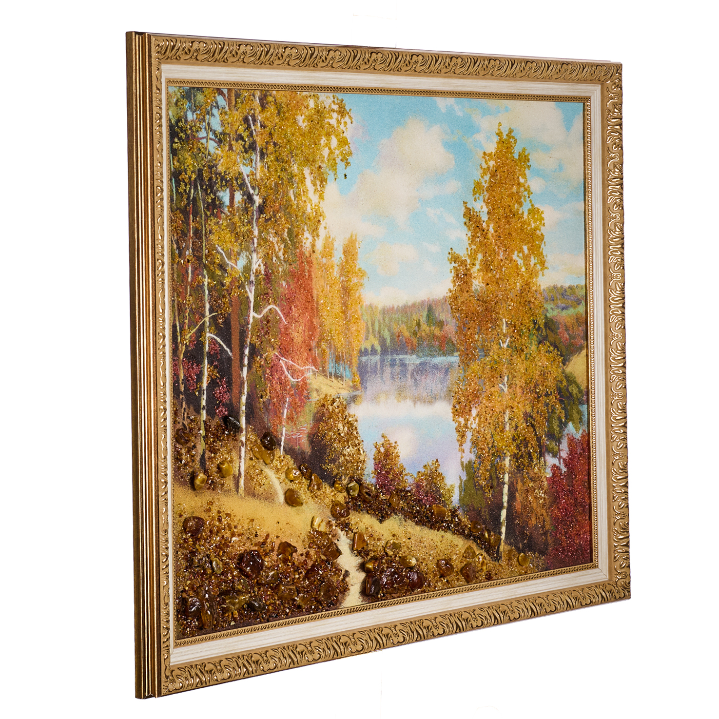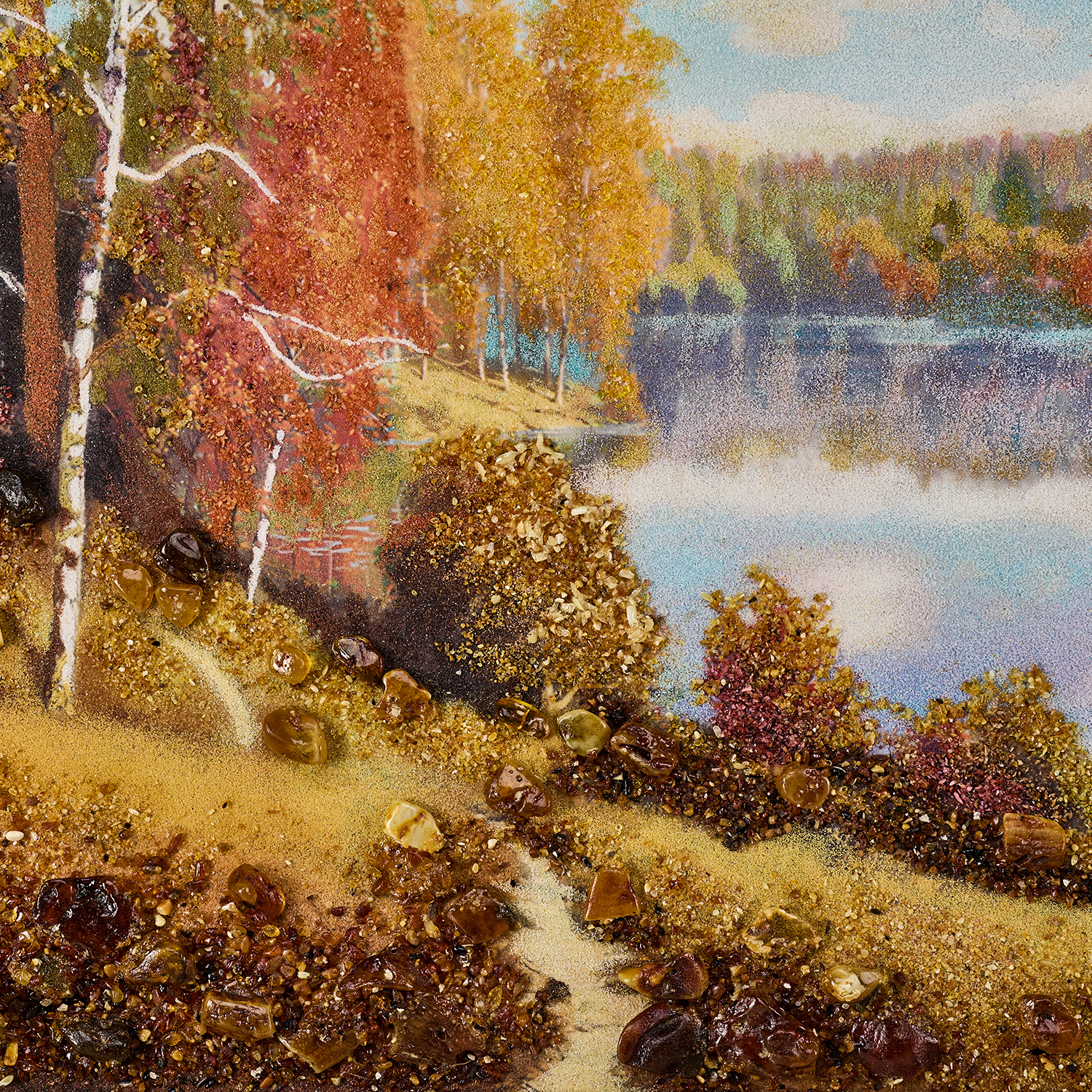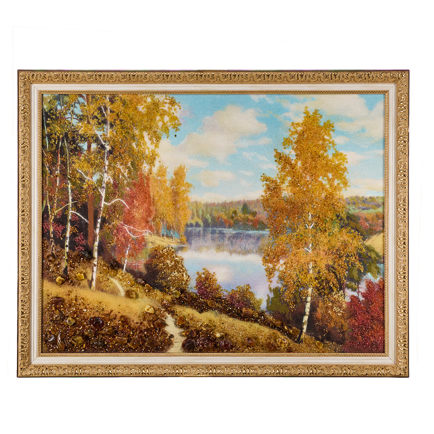 Русские подарки и сувениры → Интерьерные изделия → Картины → Картина янтарная "Озеро в лесу" 60х80 см