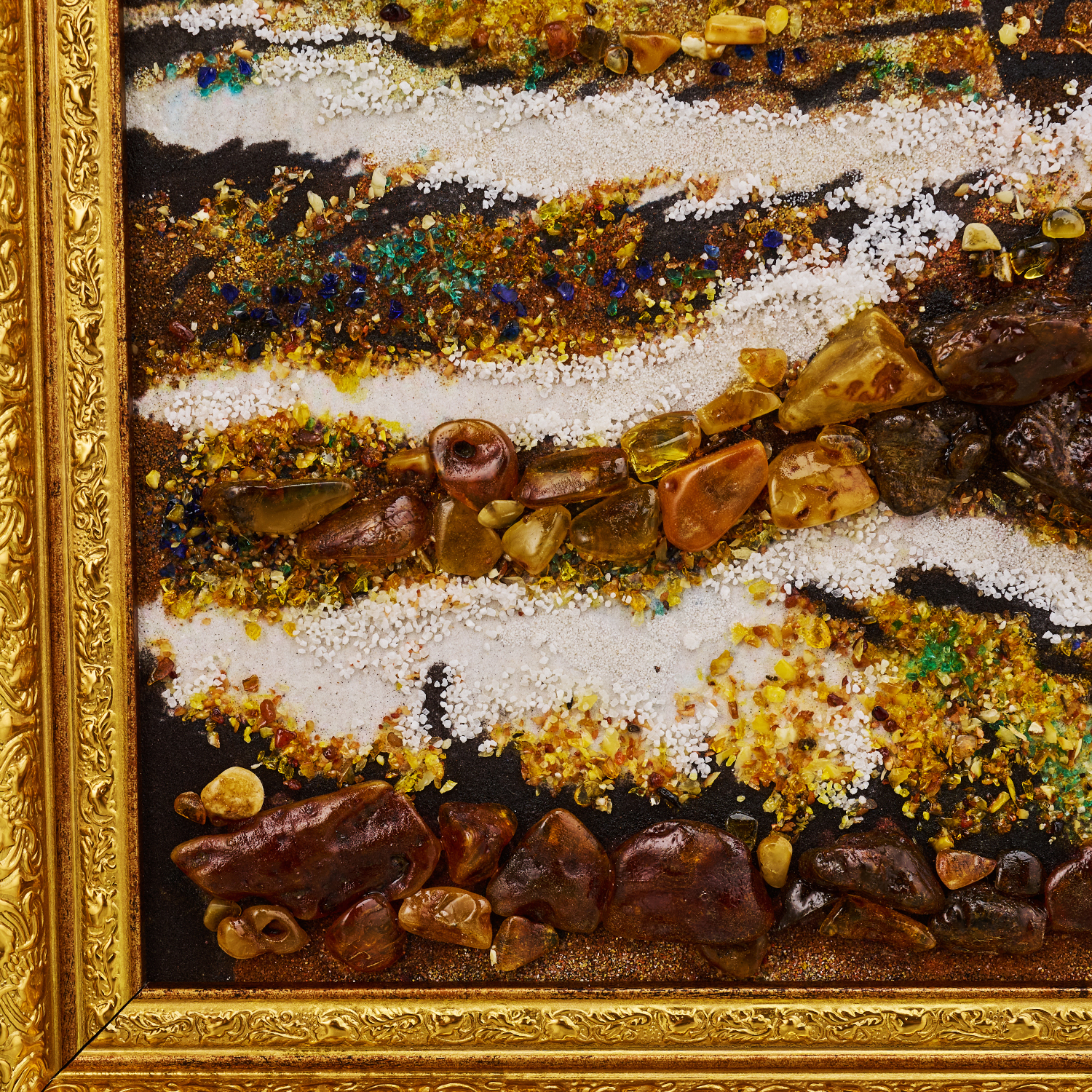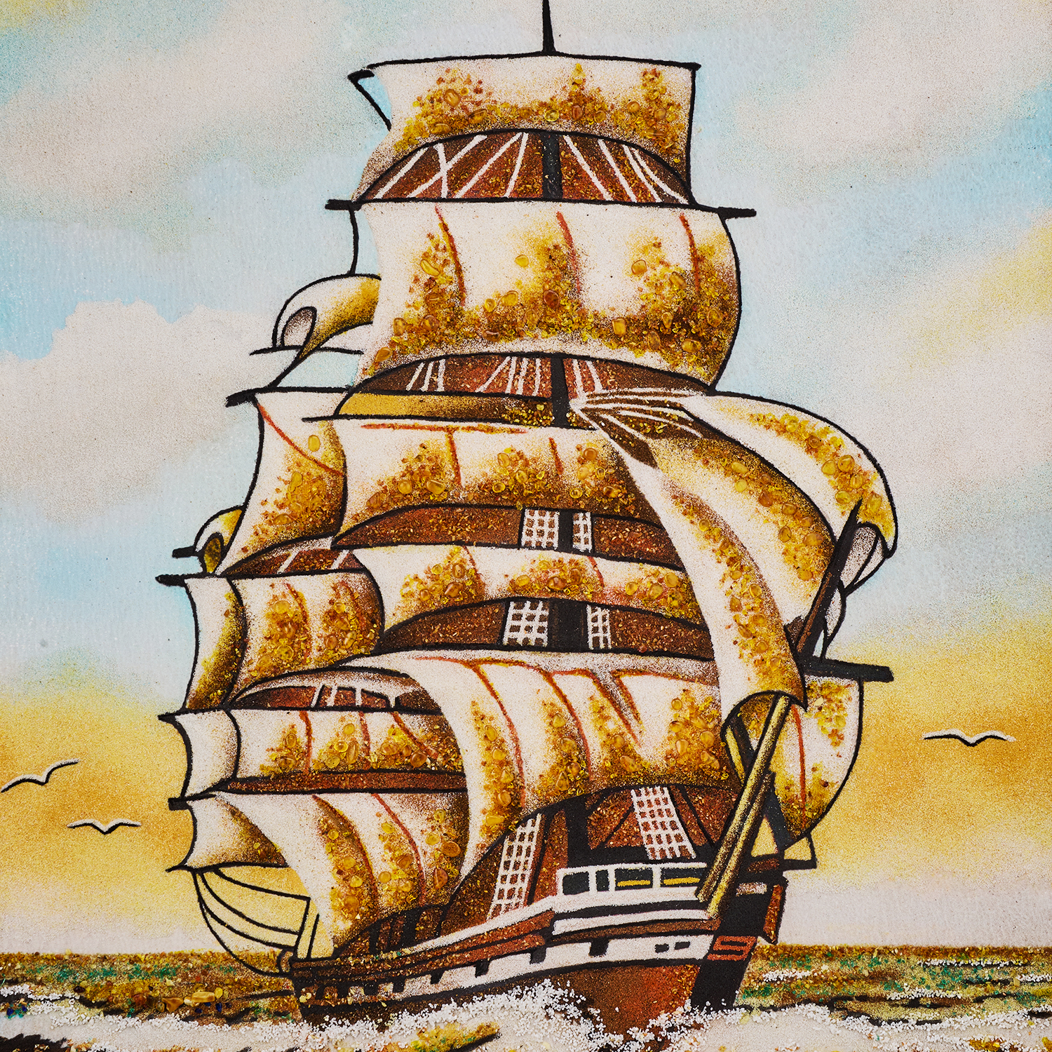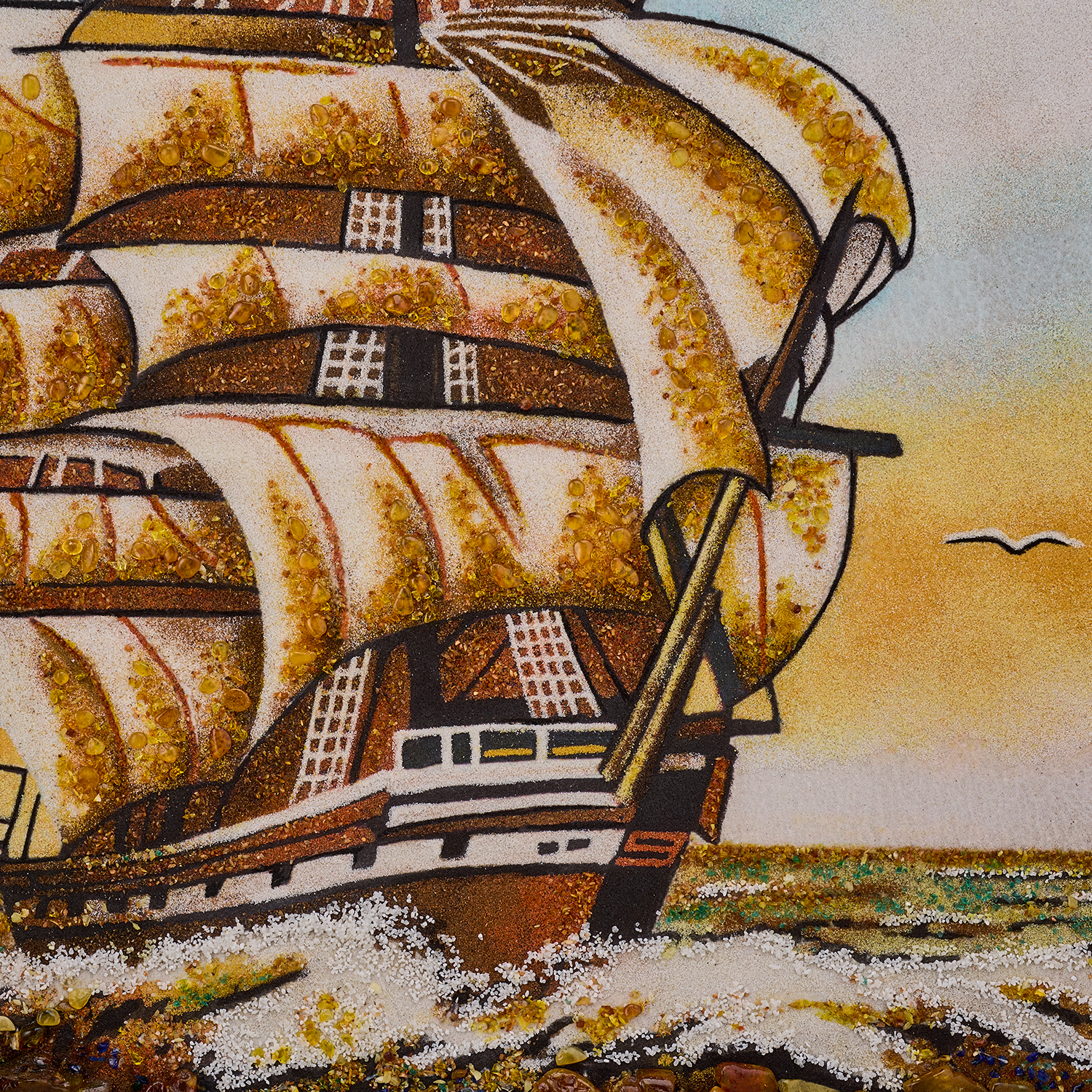 Картина янтарная "Корабль в море. Парусник".Размер холста: 600х800 мм