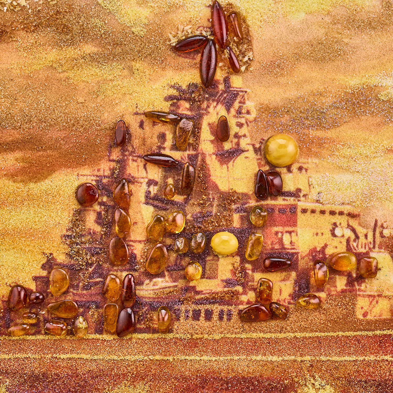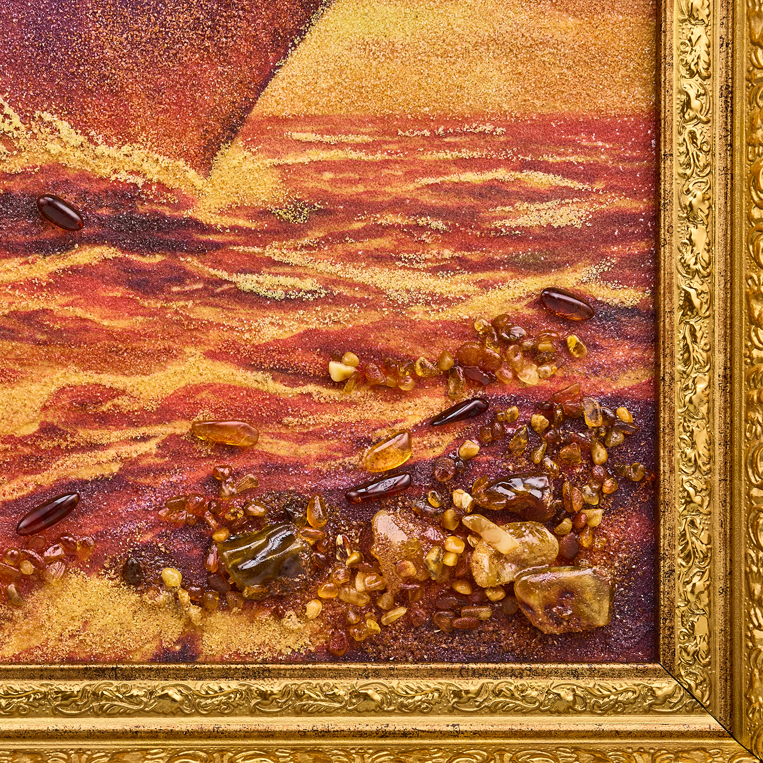 Русские подарки и сувениры → Интерьерные изделия → Картины → Картина янтарная "Крейсер Адмирал Нахимов" 40х60 см