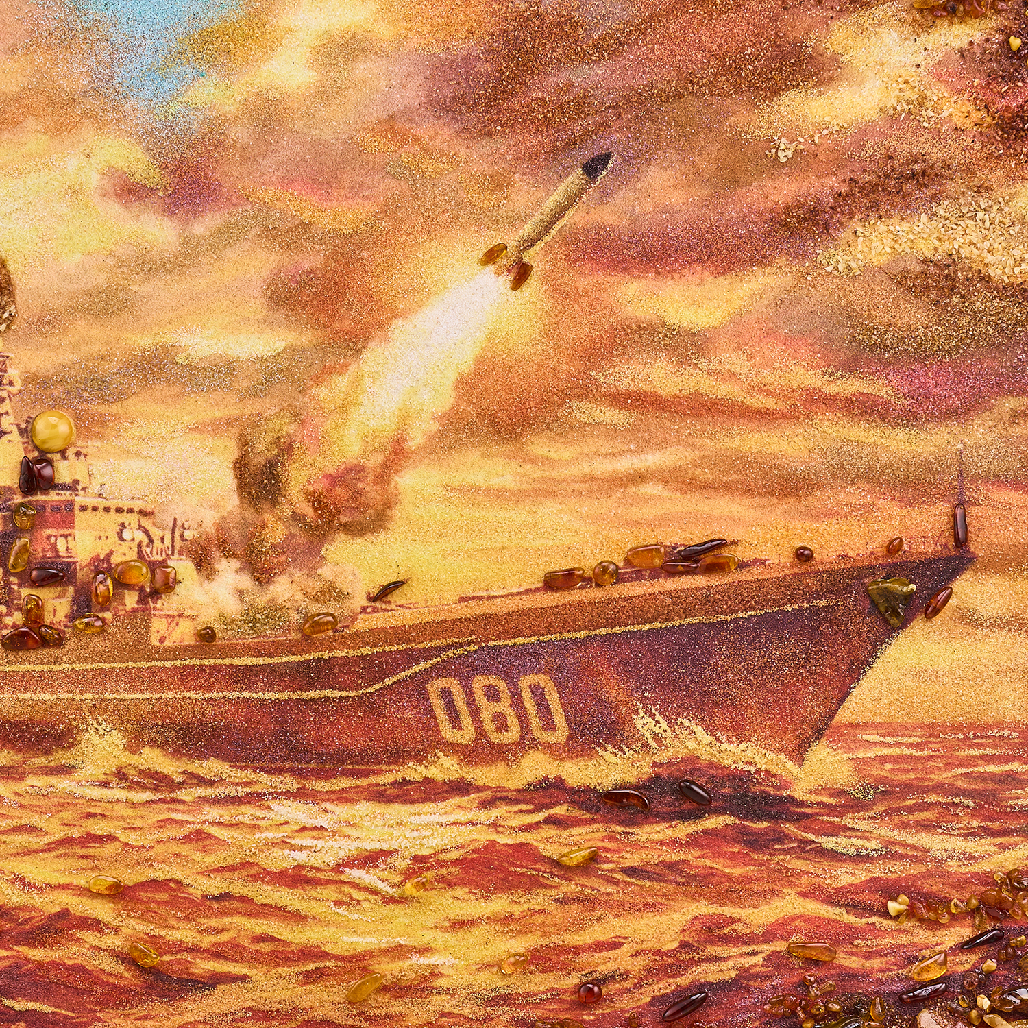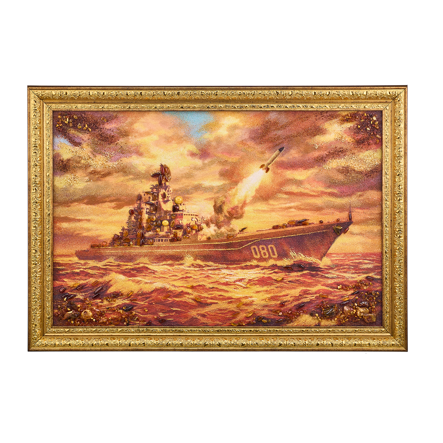 Картина янтарная "Крейсер Адмирал Нахимов" 40х60 см