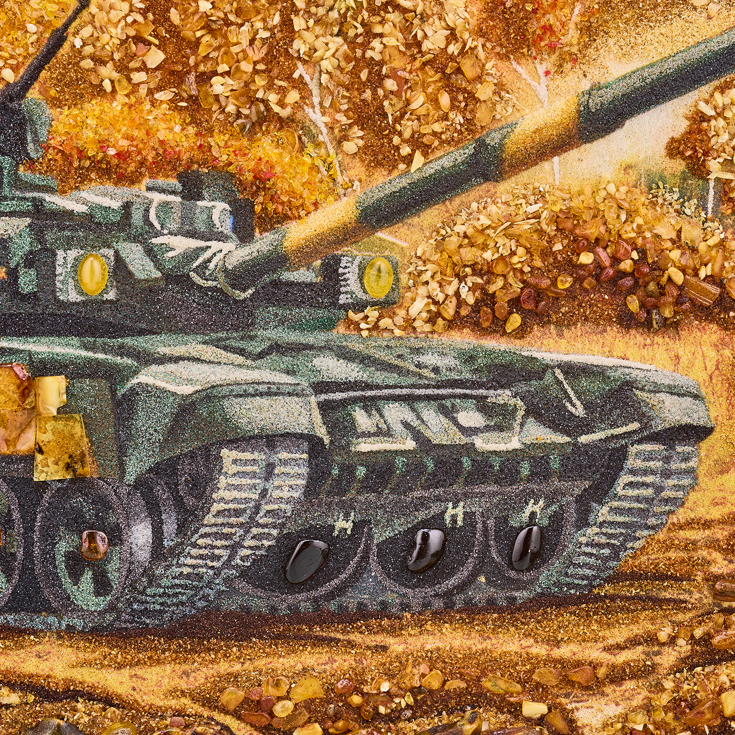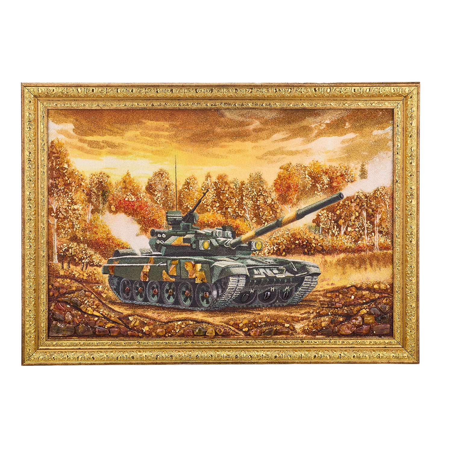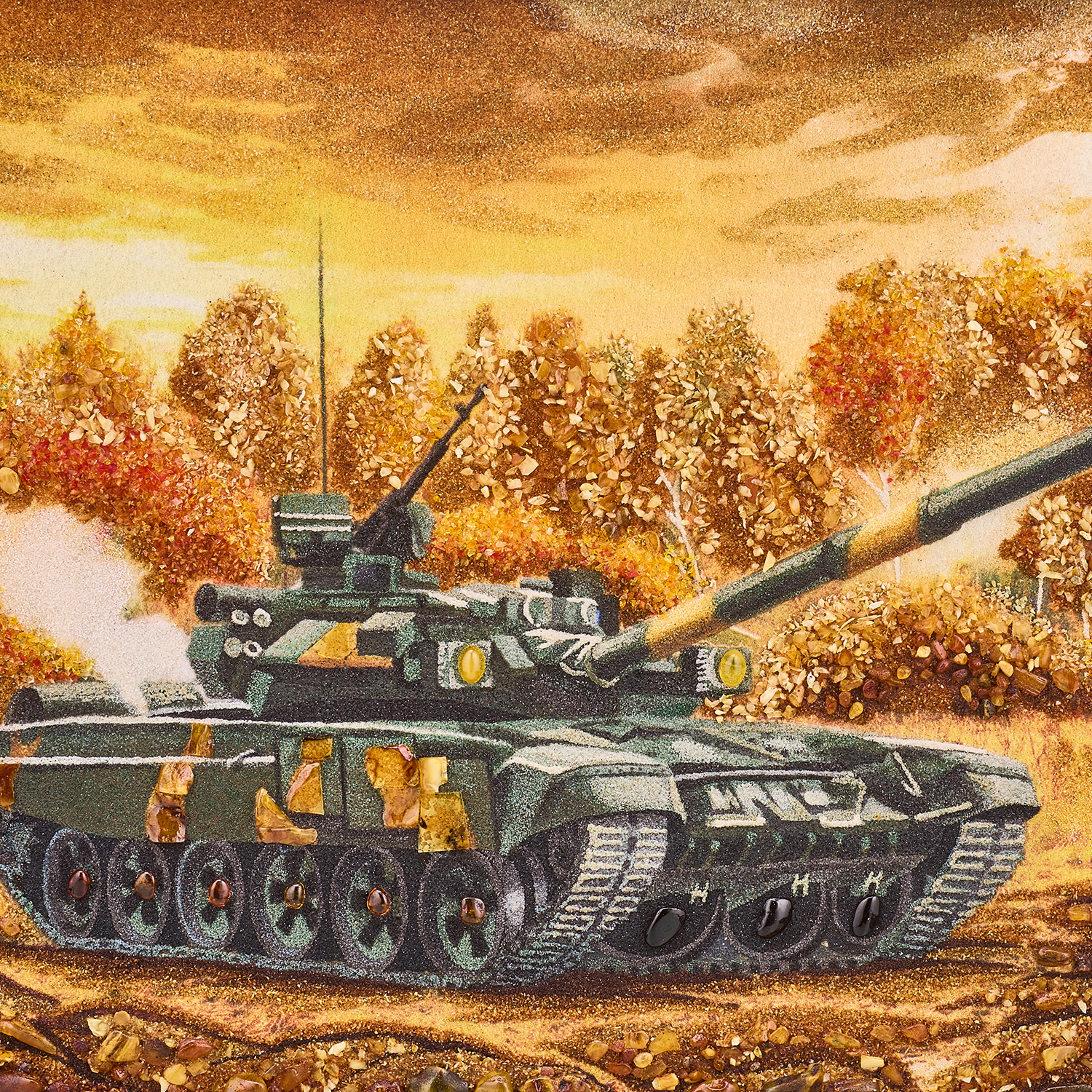 Картина янтарная "Танк Т-90 А".Размер холста: 40х60 см ....
