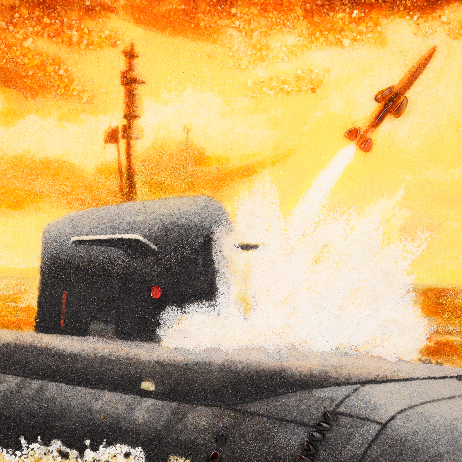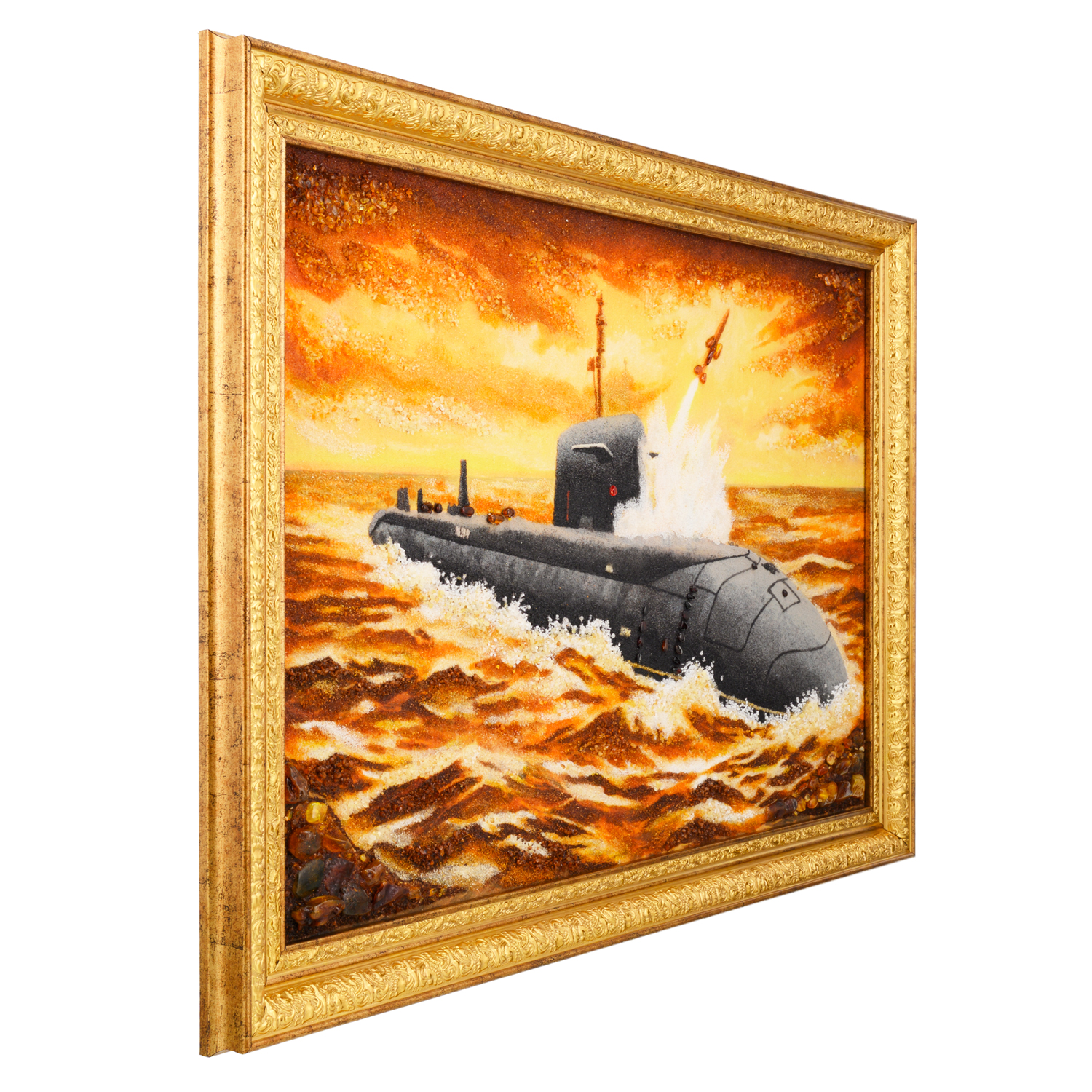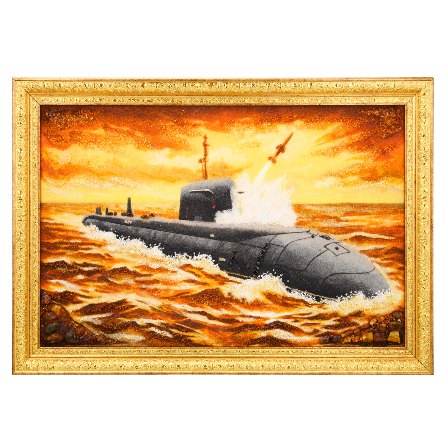 Русские подарки и сувениры → Интерьерные изделия → Картины → Картина янтарная "Подводная лодка" 40х60 см