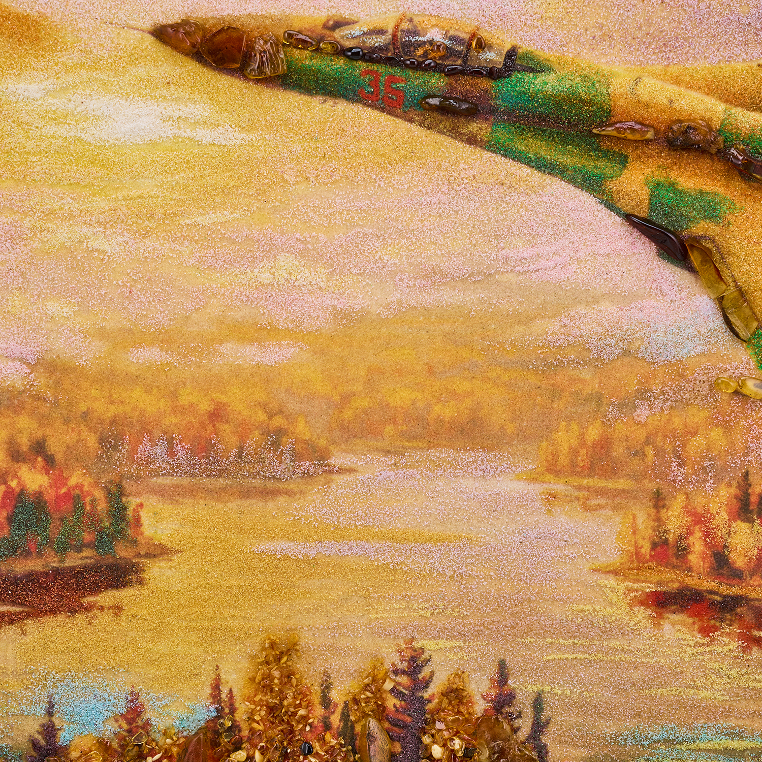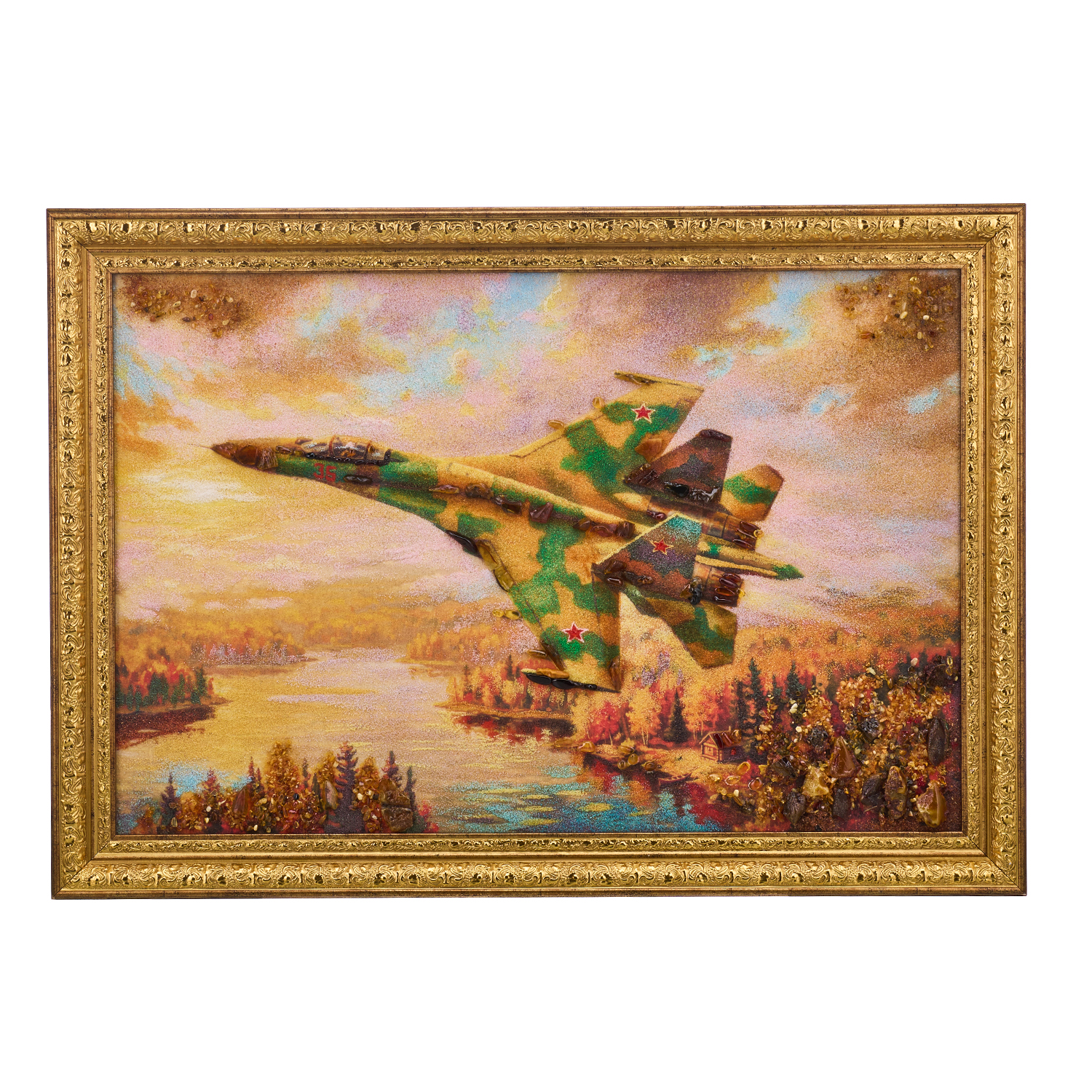 Картина янтарная "Самолет".Размер холста: 40х60 см