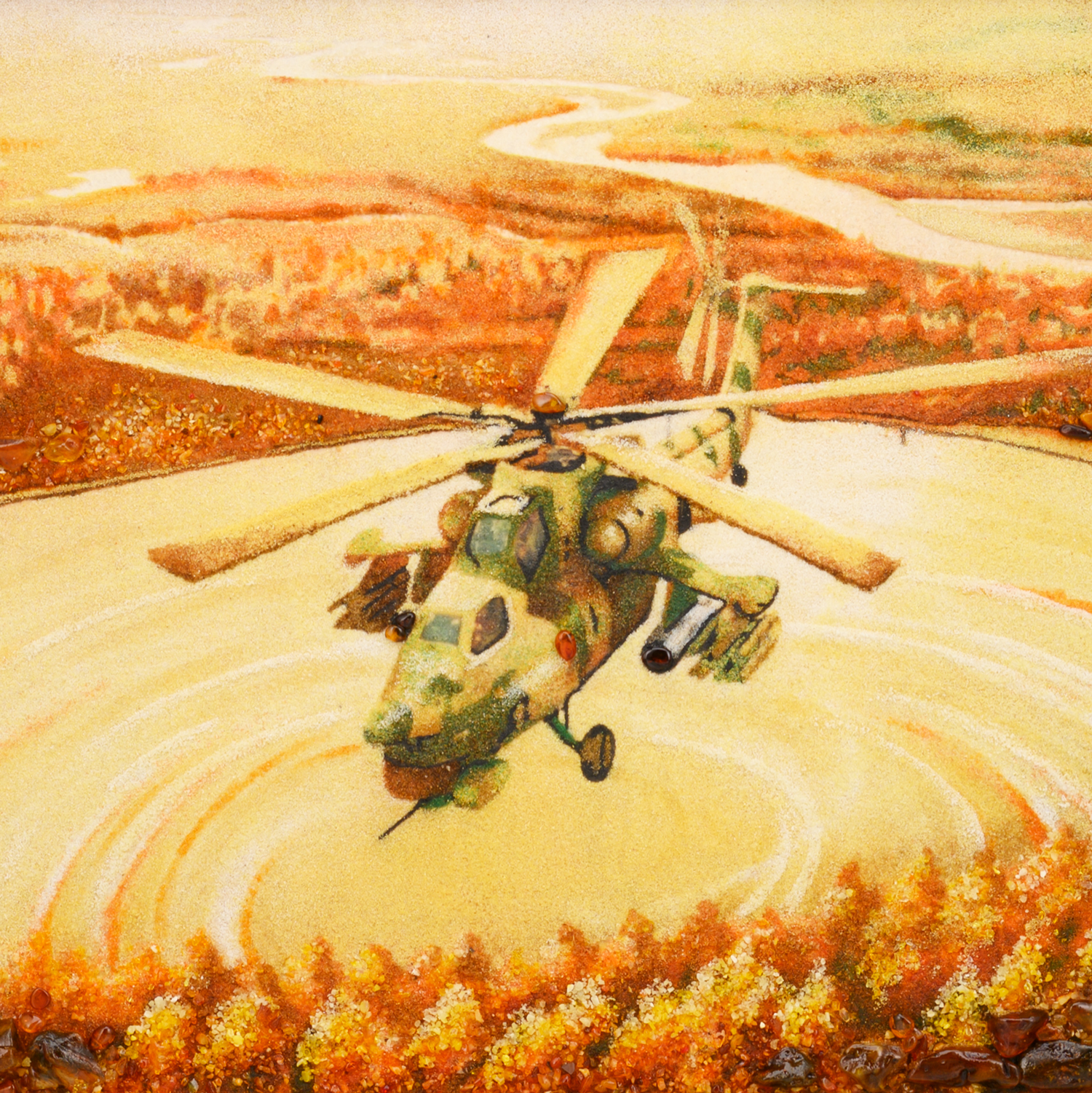 Картина янтарная "Панорама с вертолетом".Размер холста: 400х600 мм