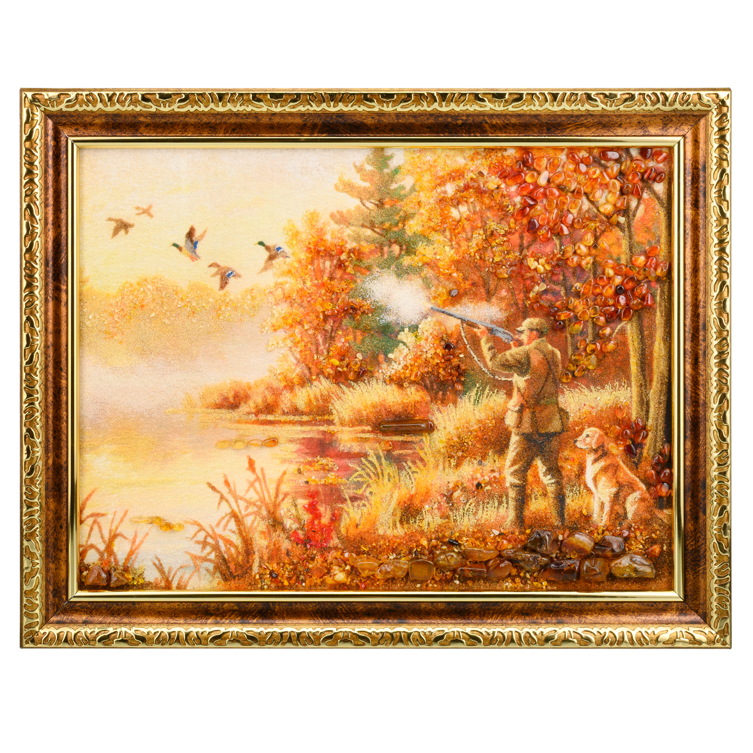 Картина янтарная "Охотник".Размер холста: 30х40 см