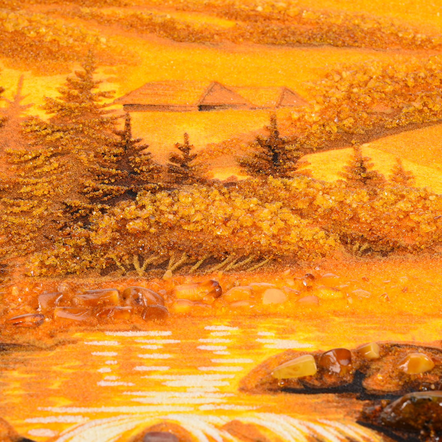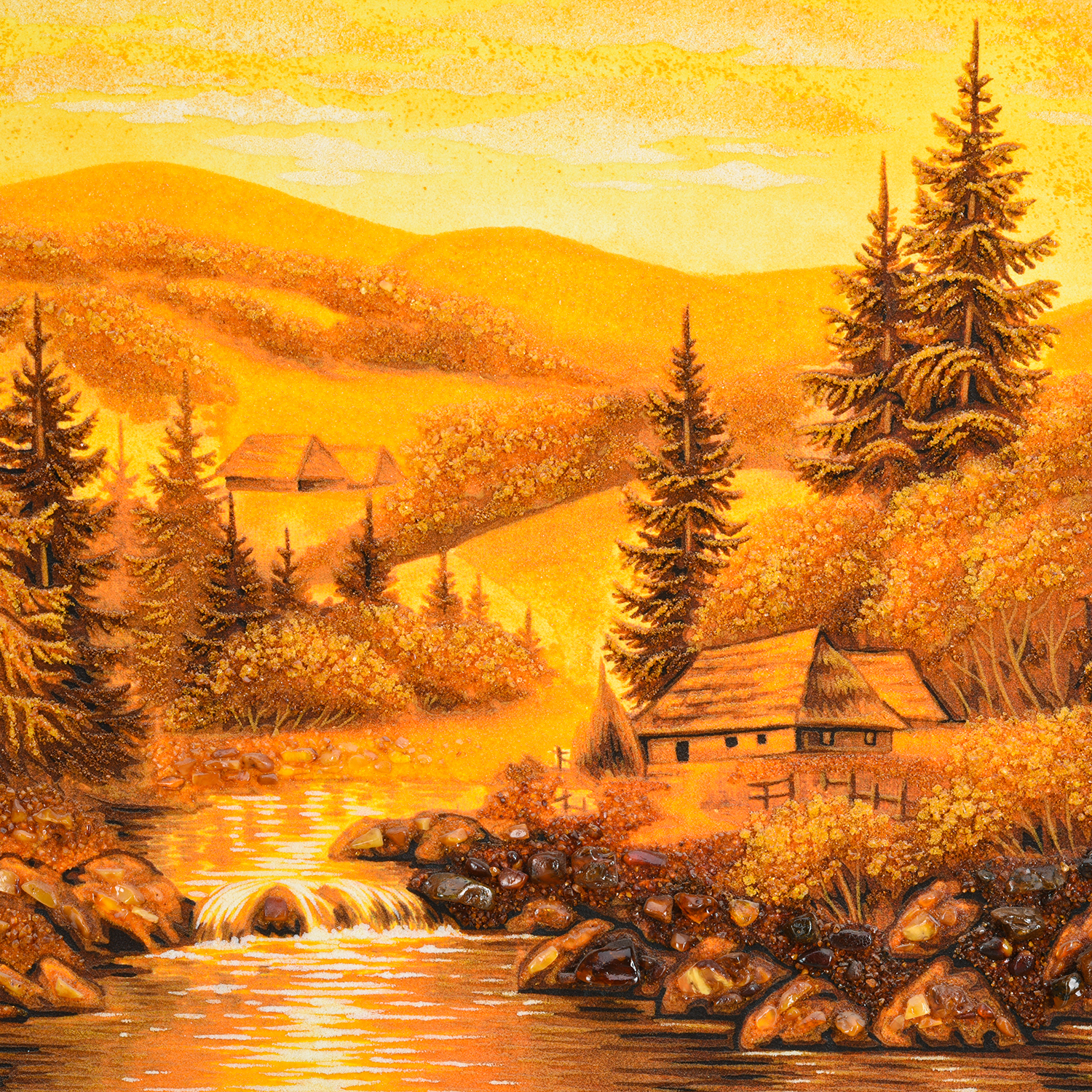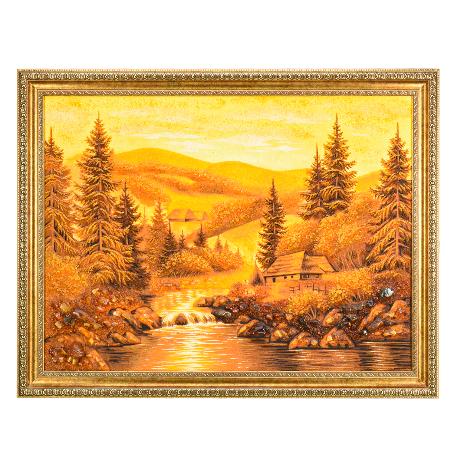 Русские подарки и сувениры → Интерьерные изделия → Картины → Картина янтарная "Домик у ручья" 60х80 см